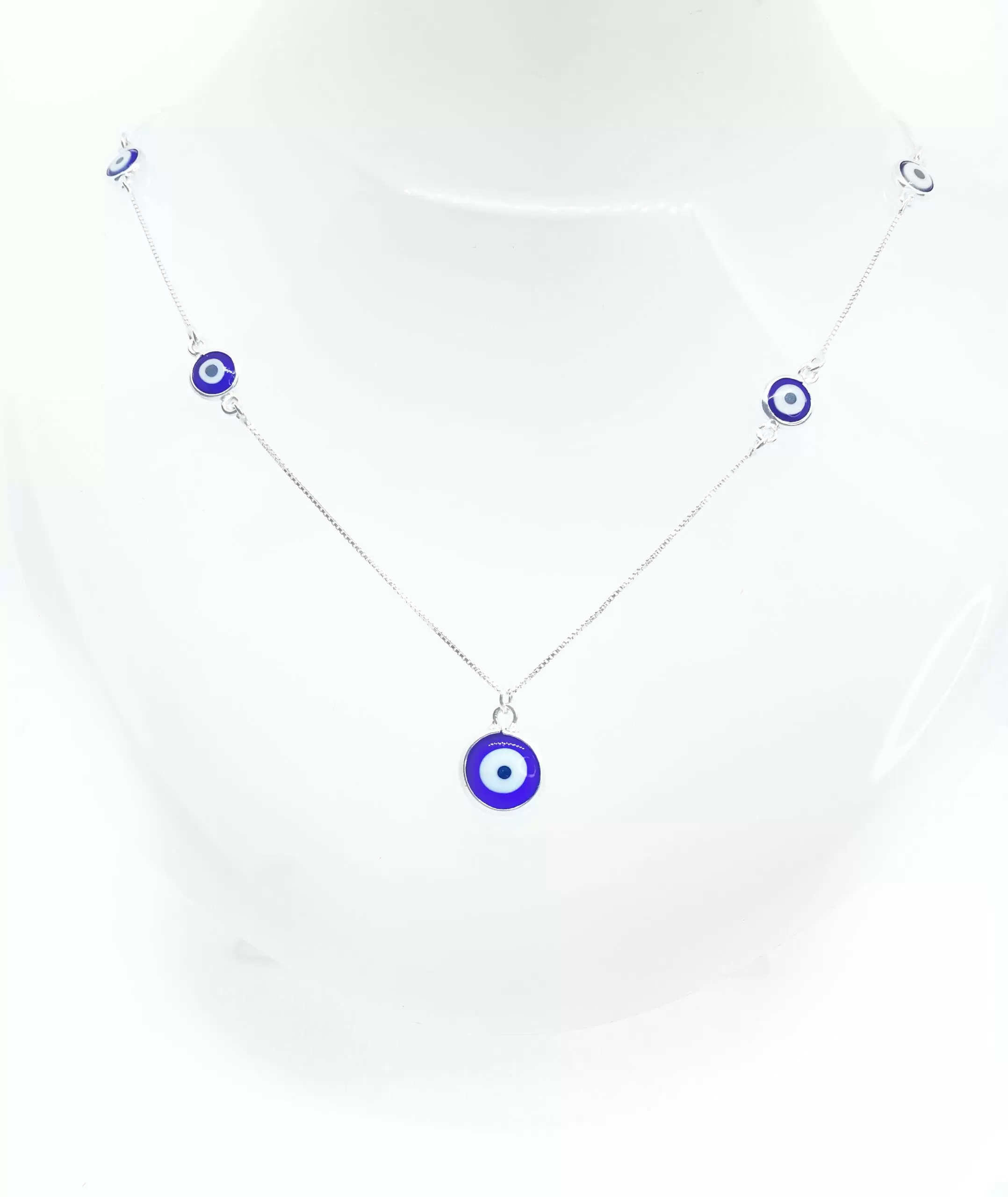 Colar 4 Olhos Grego Pequenos , 1 Médio, Azuis Claros em Prata