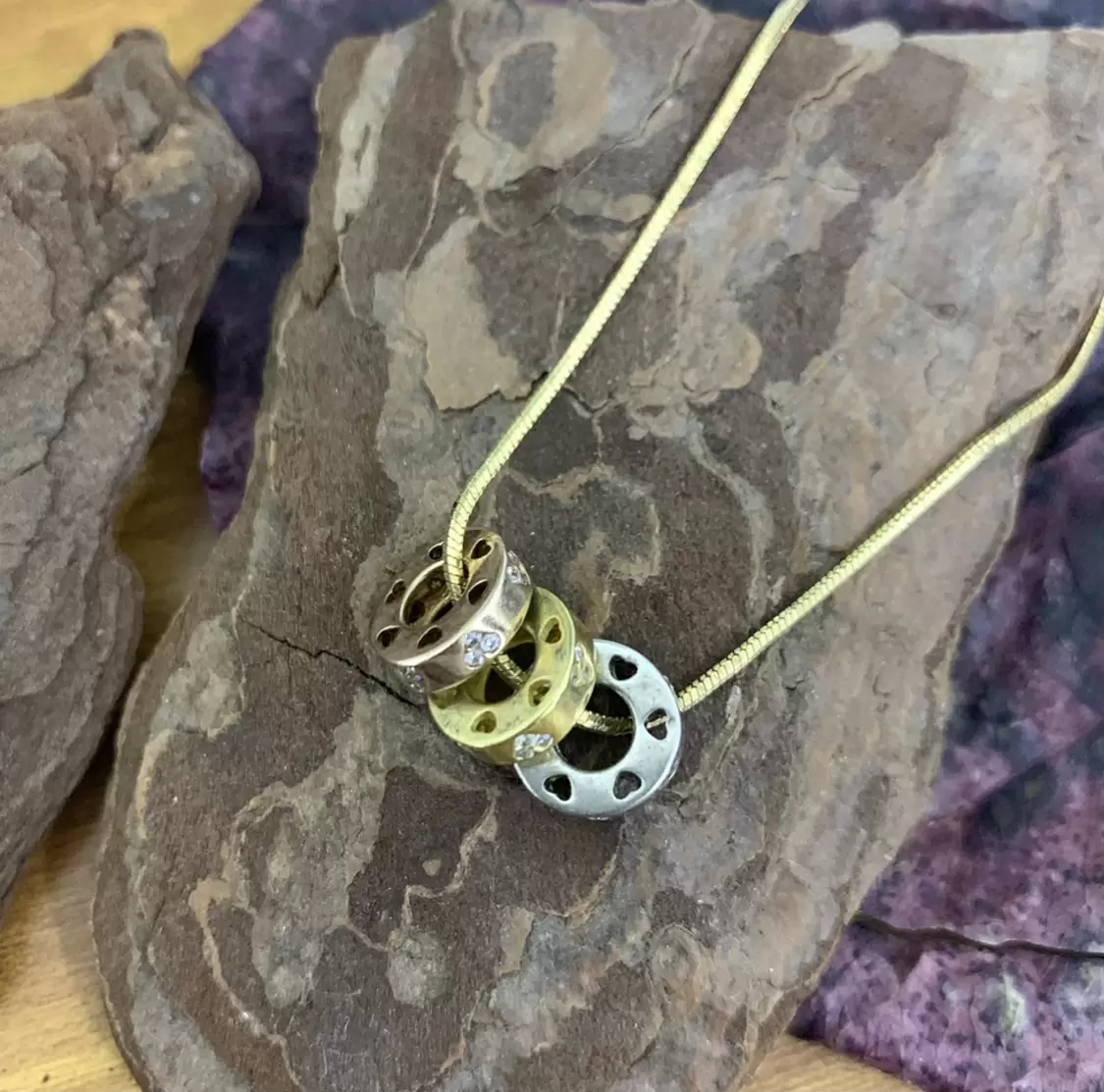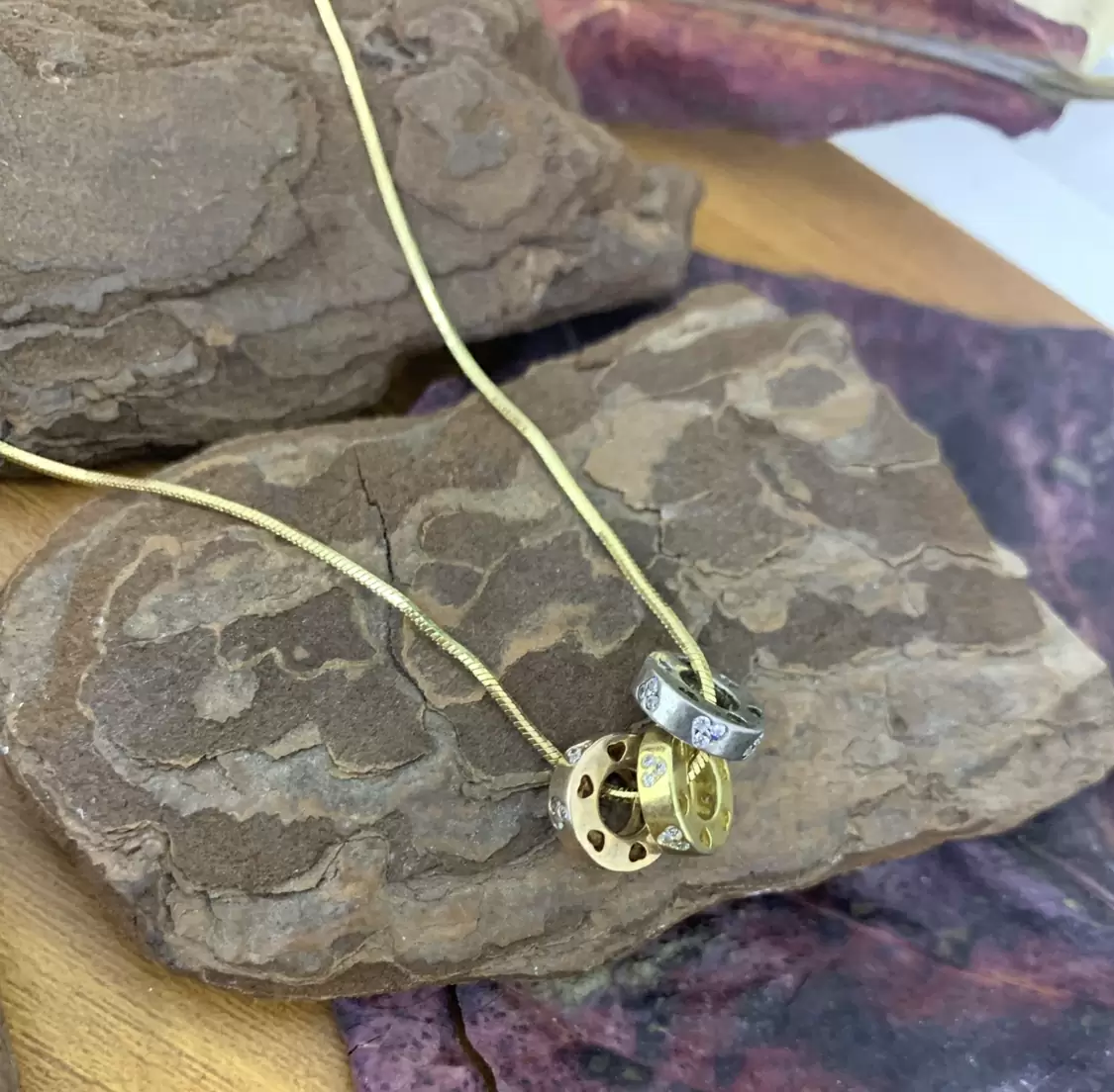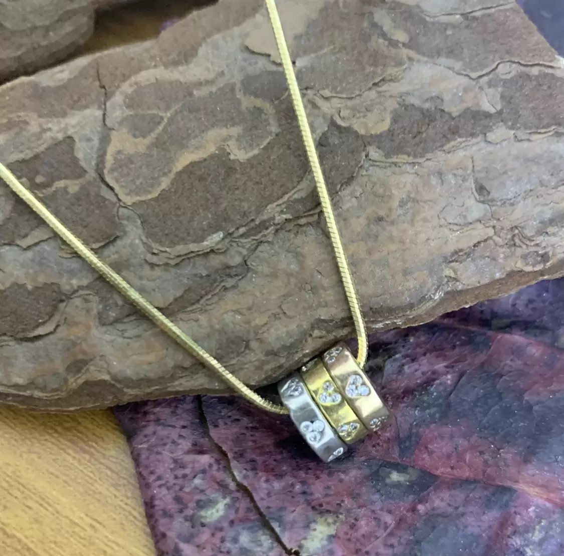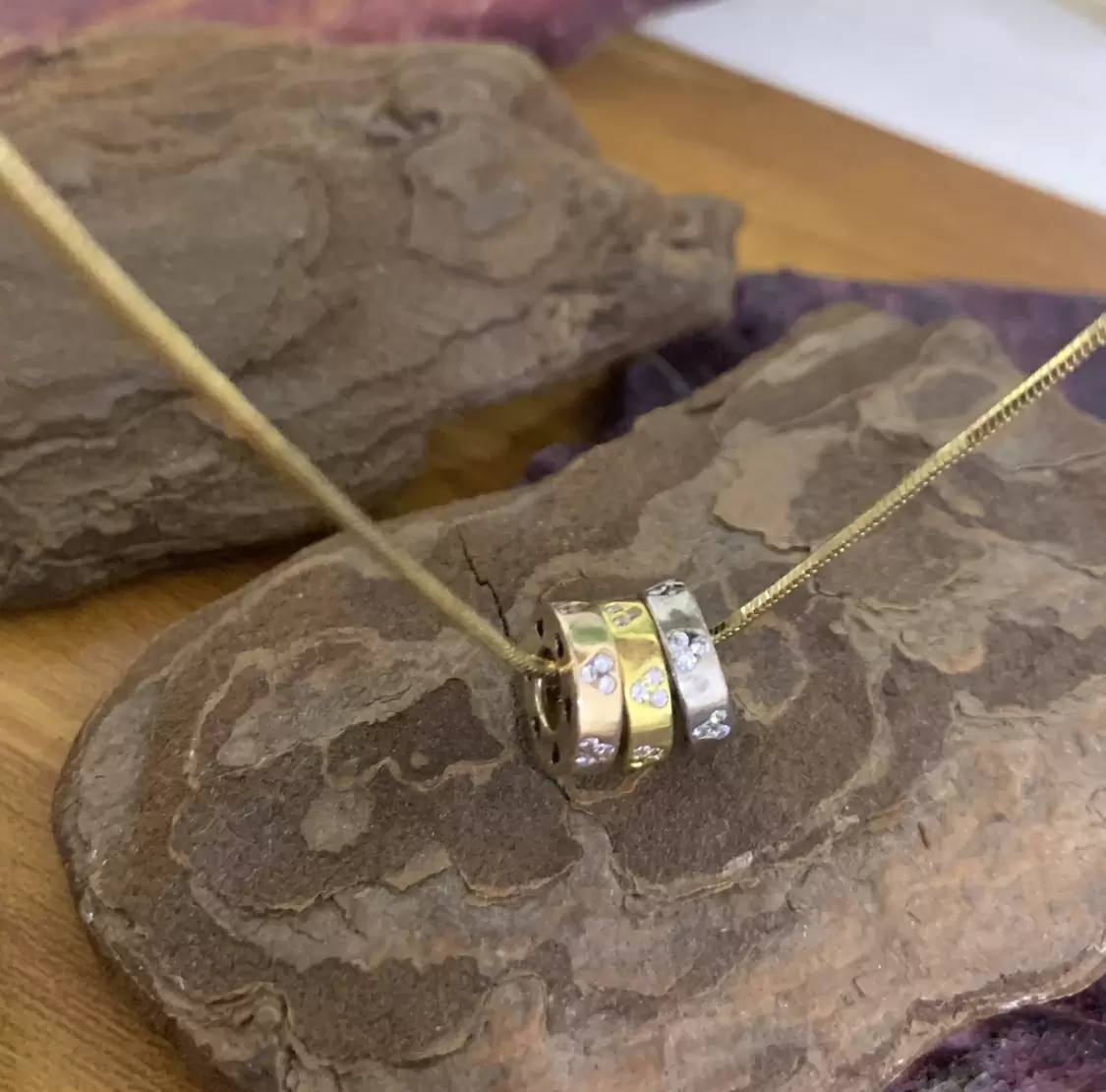 Colar Circle com trio de pingentes folheado a ouro amarelo, rosé e ródio.