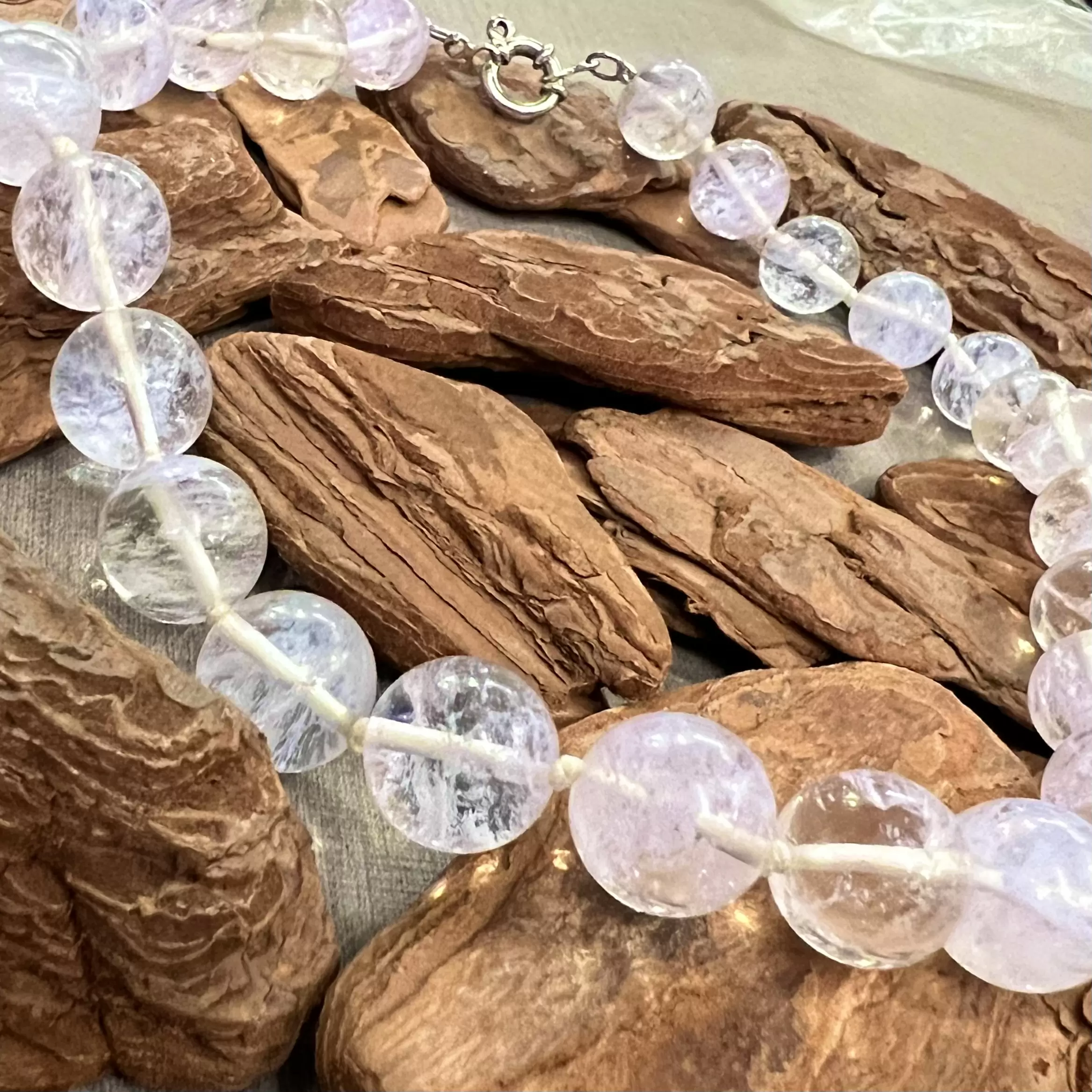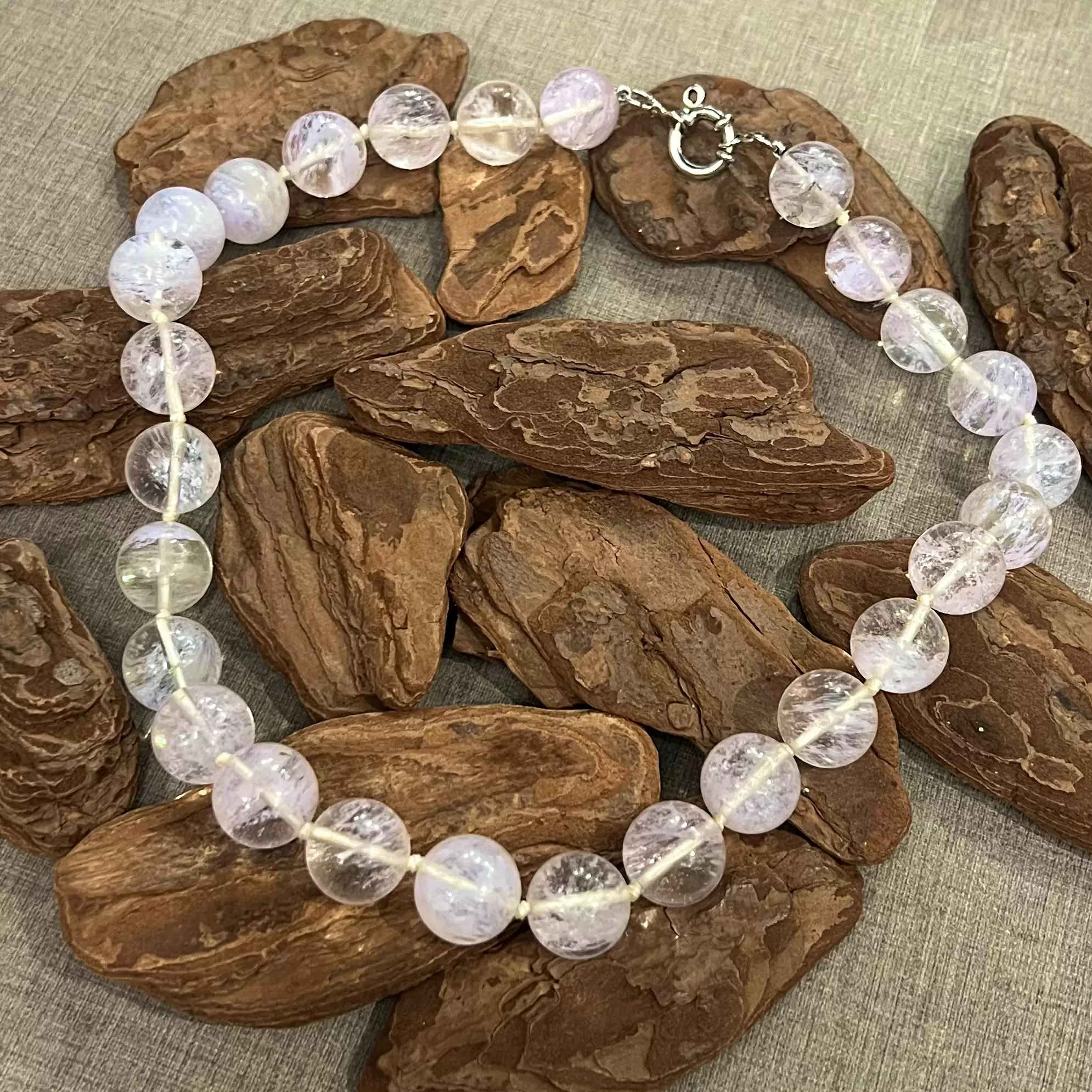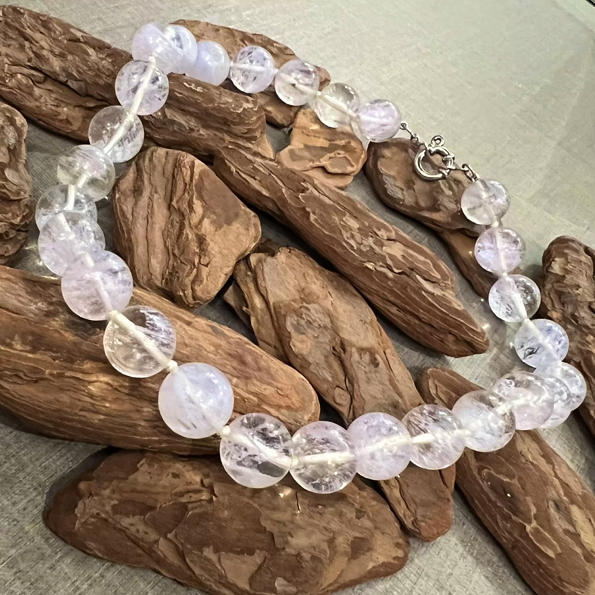 Colar de bolas 1,5 cm em Pedra da Lua com fecho boia em Prata 925.