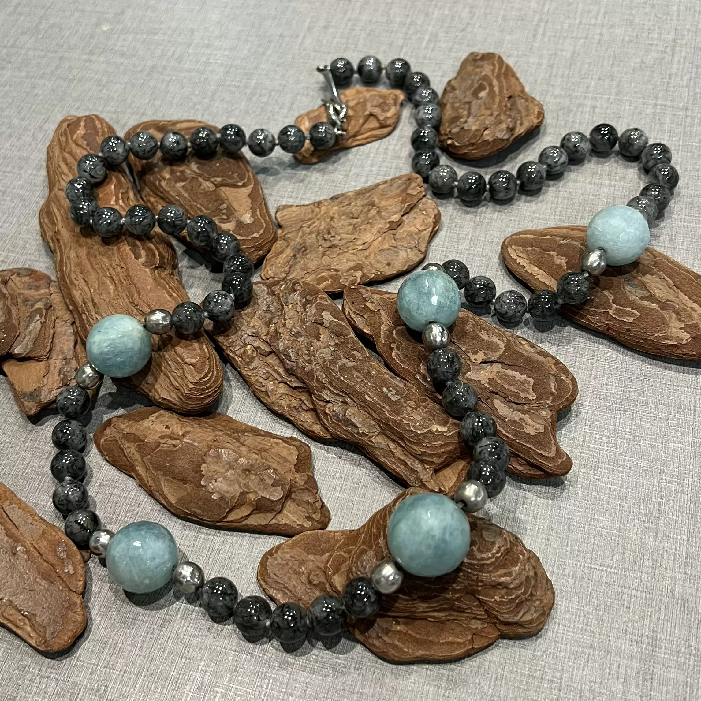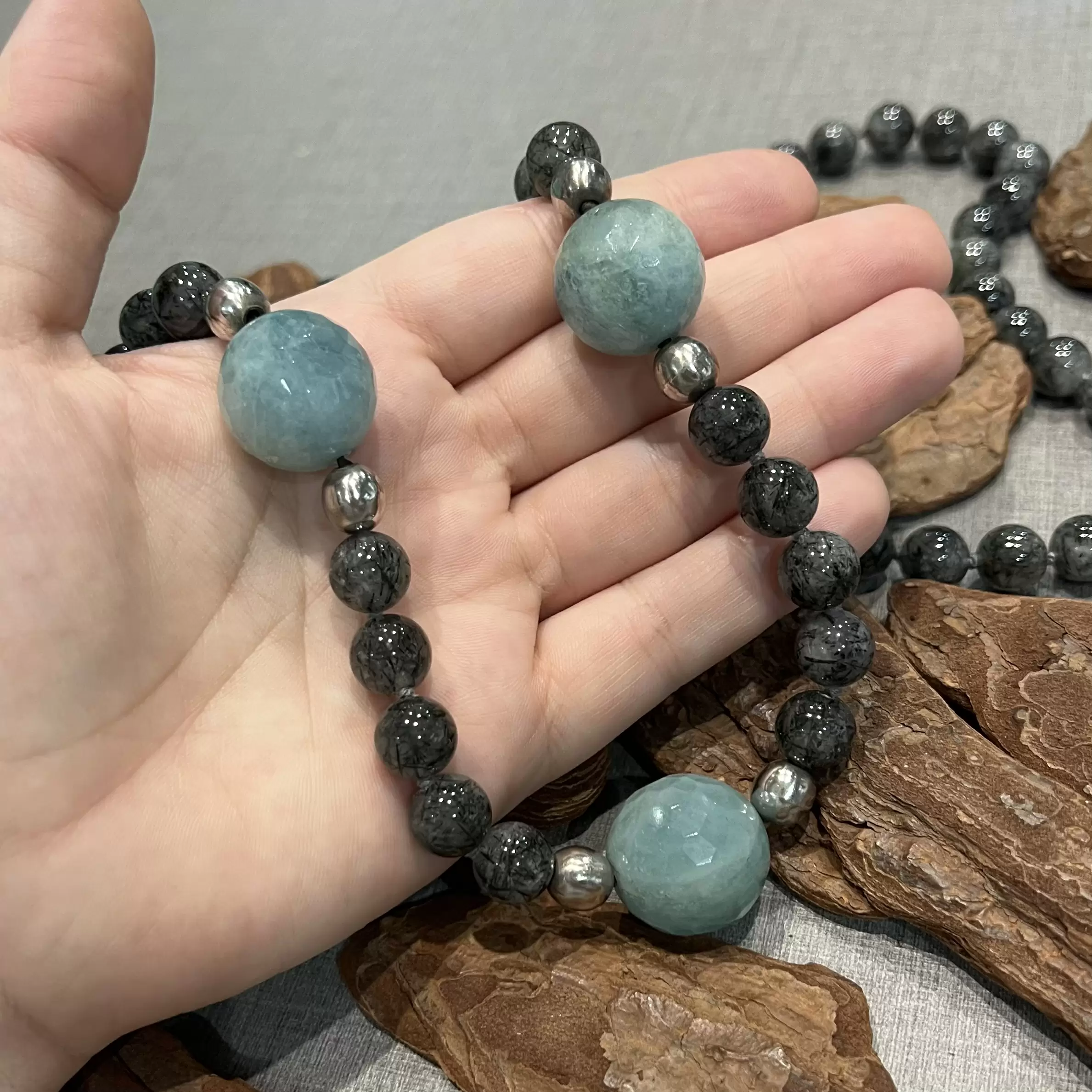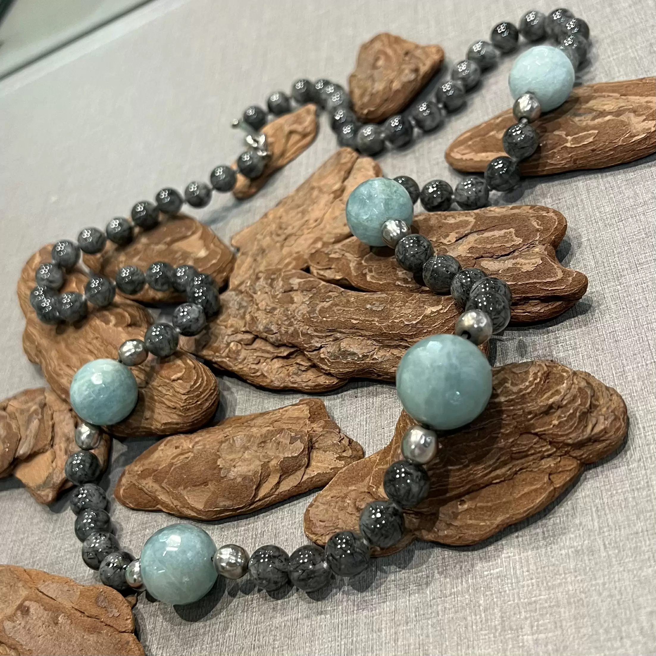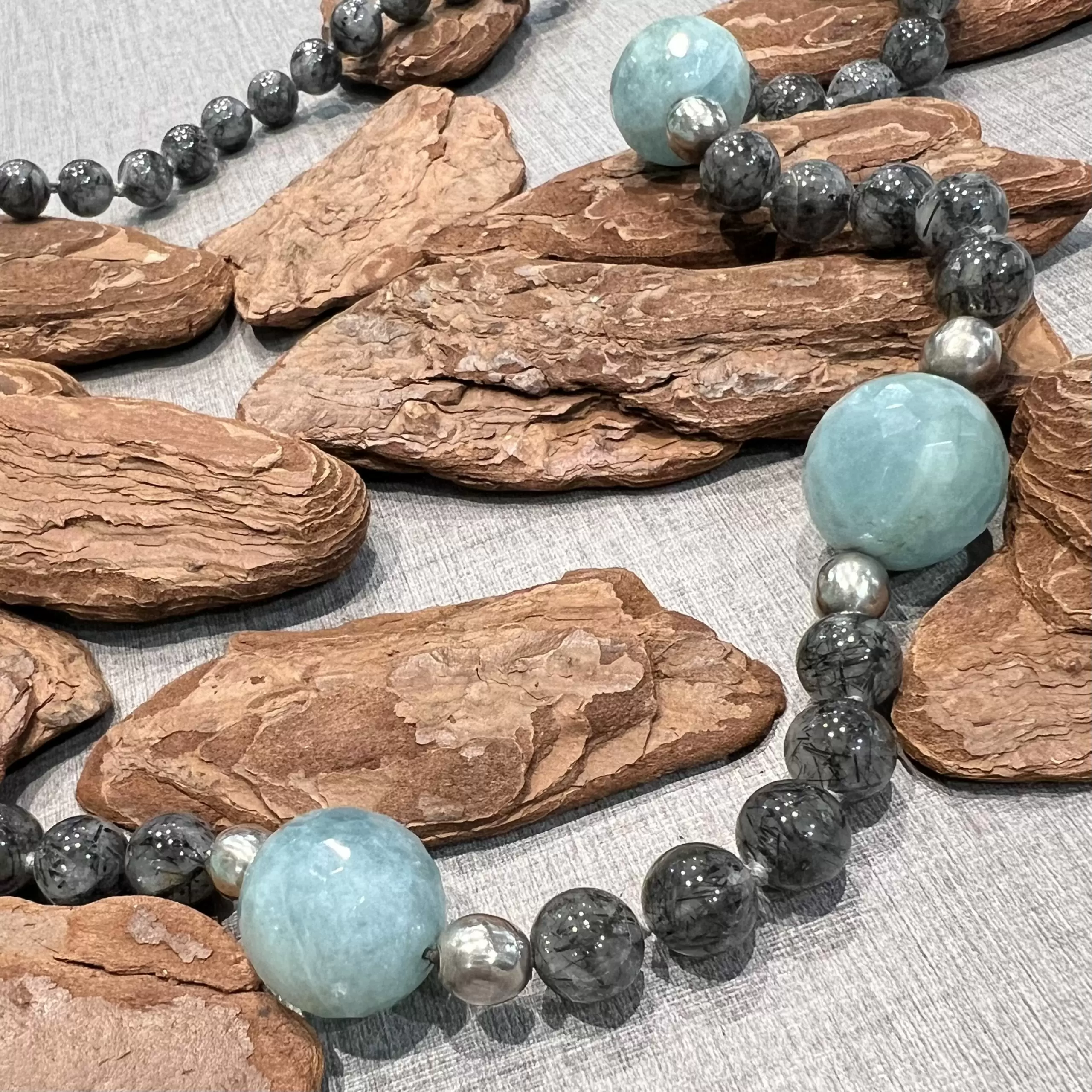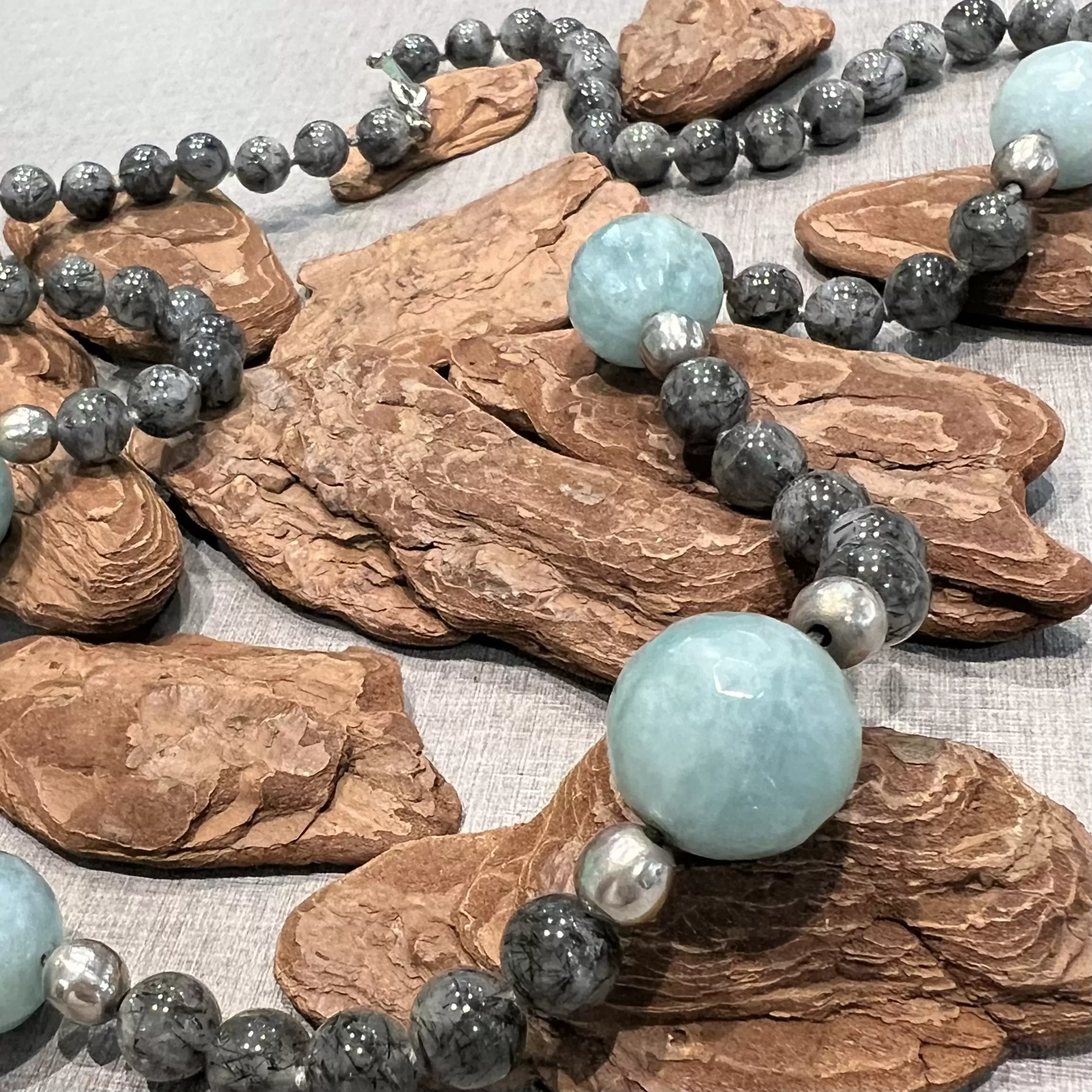 Colar de Quartzo Rutilado com Amazonita em Prata 925.