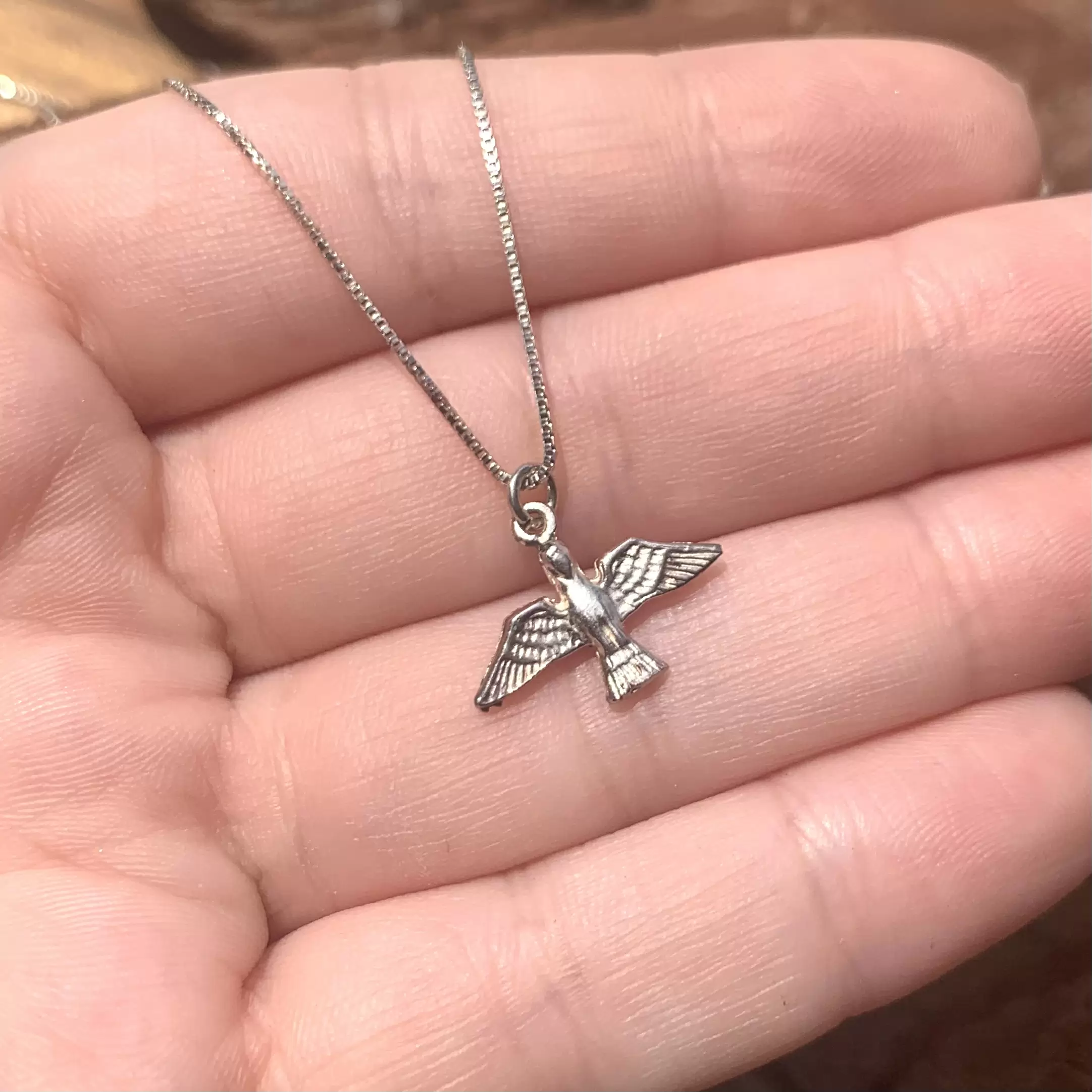SKU: COAGMN00236 Categorias: Colar, Feminino, Prata Lisa (Colar Feminino), Religioso Tags: Espírito santo, pomba da paz, proteção