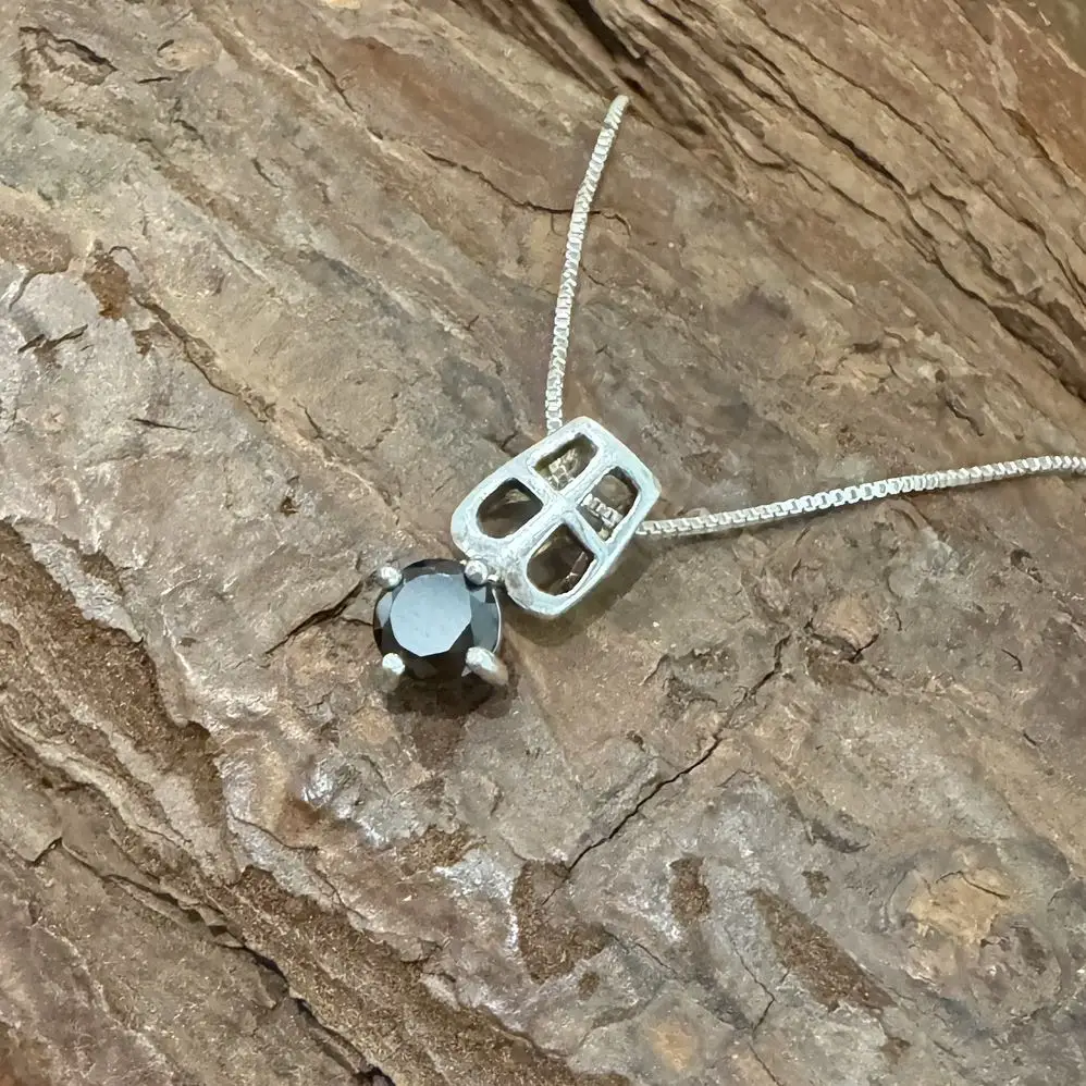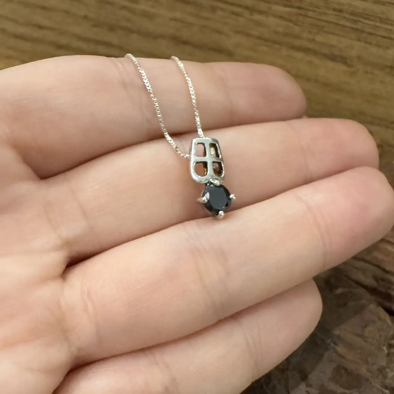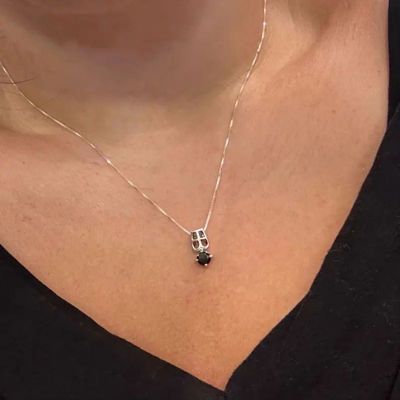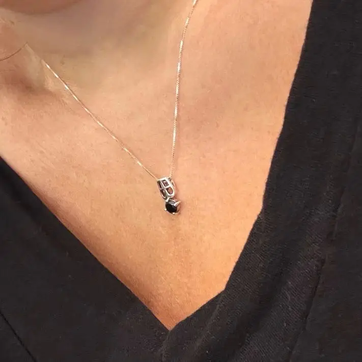 Colar estilo Ponto de Luz de Zircônia negra em Prata 925.