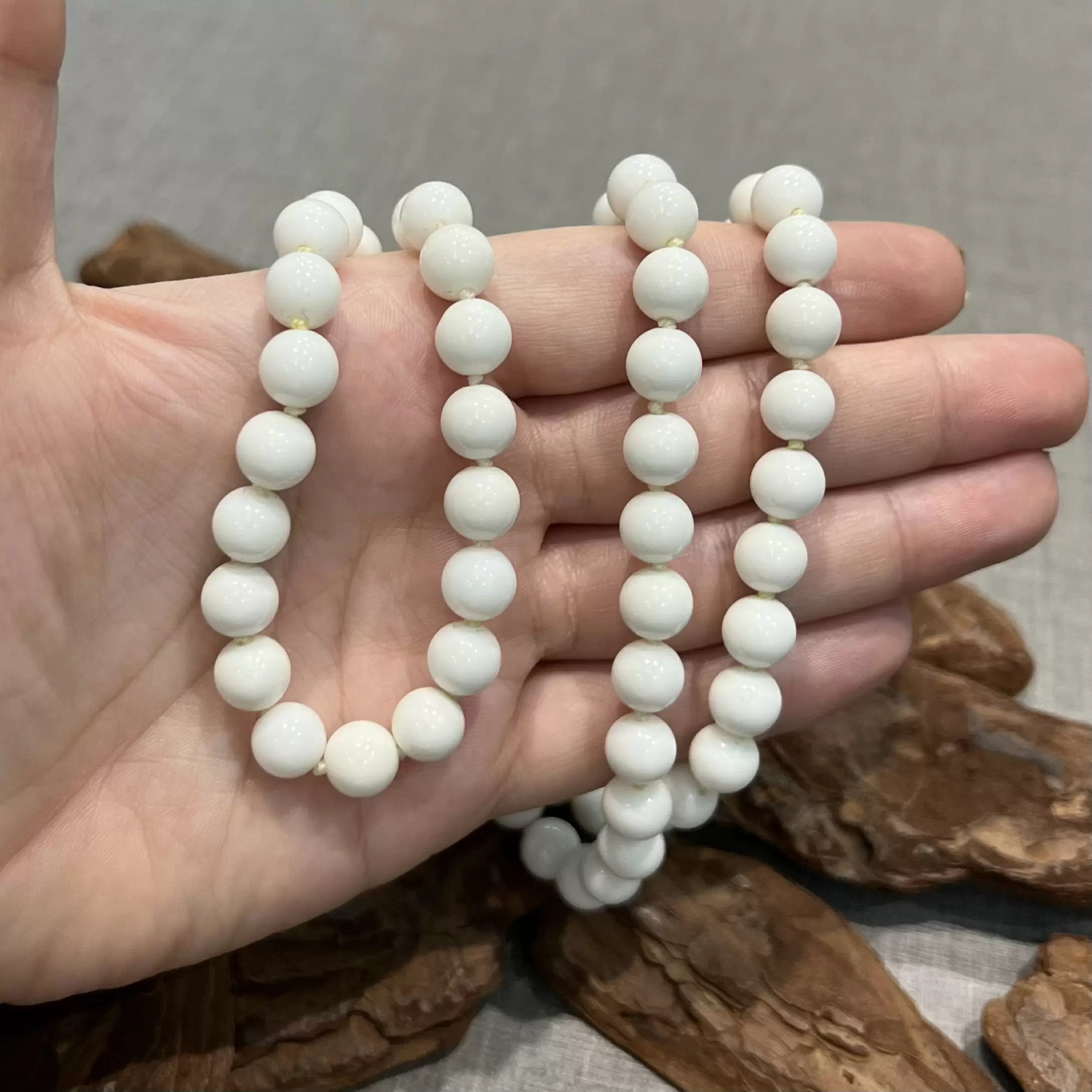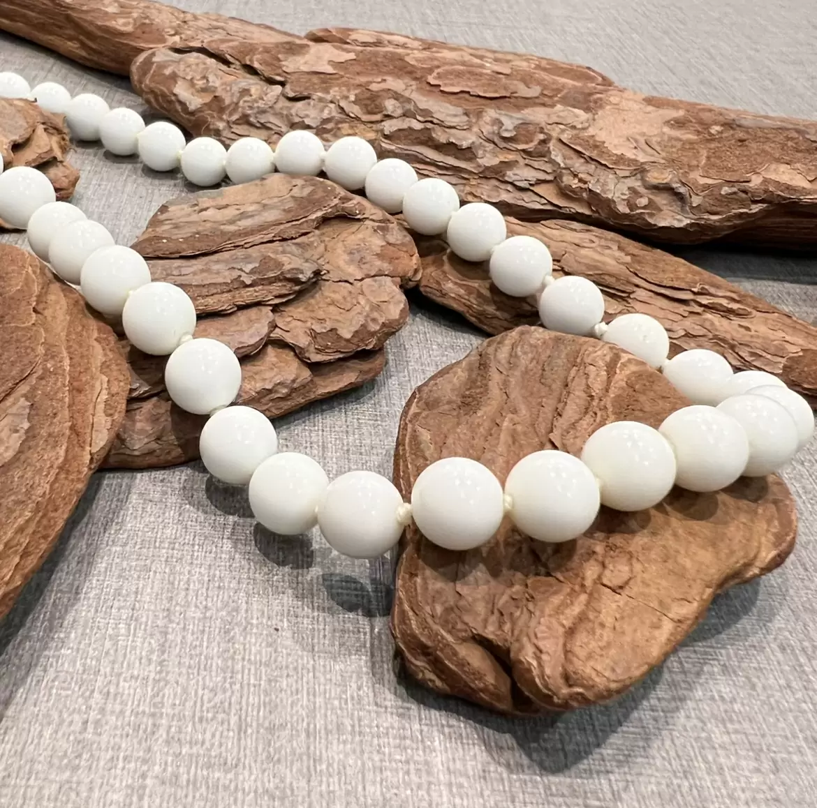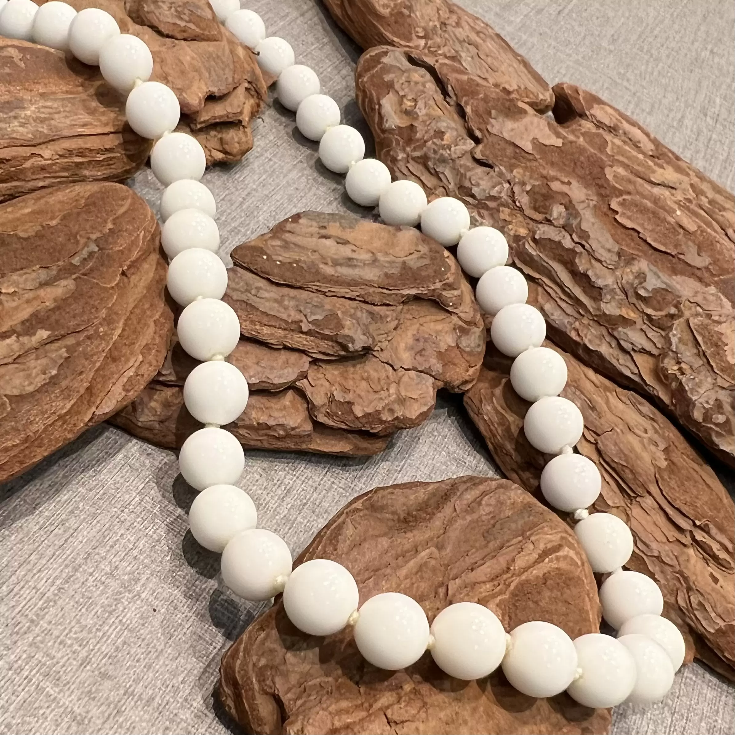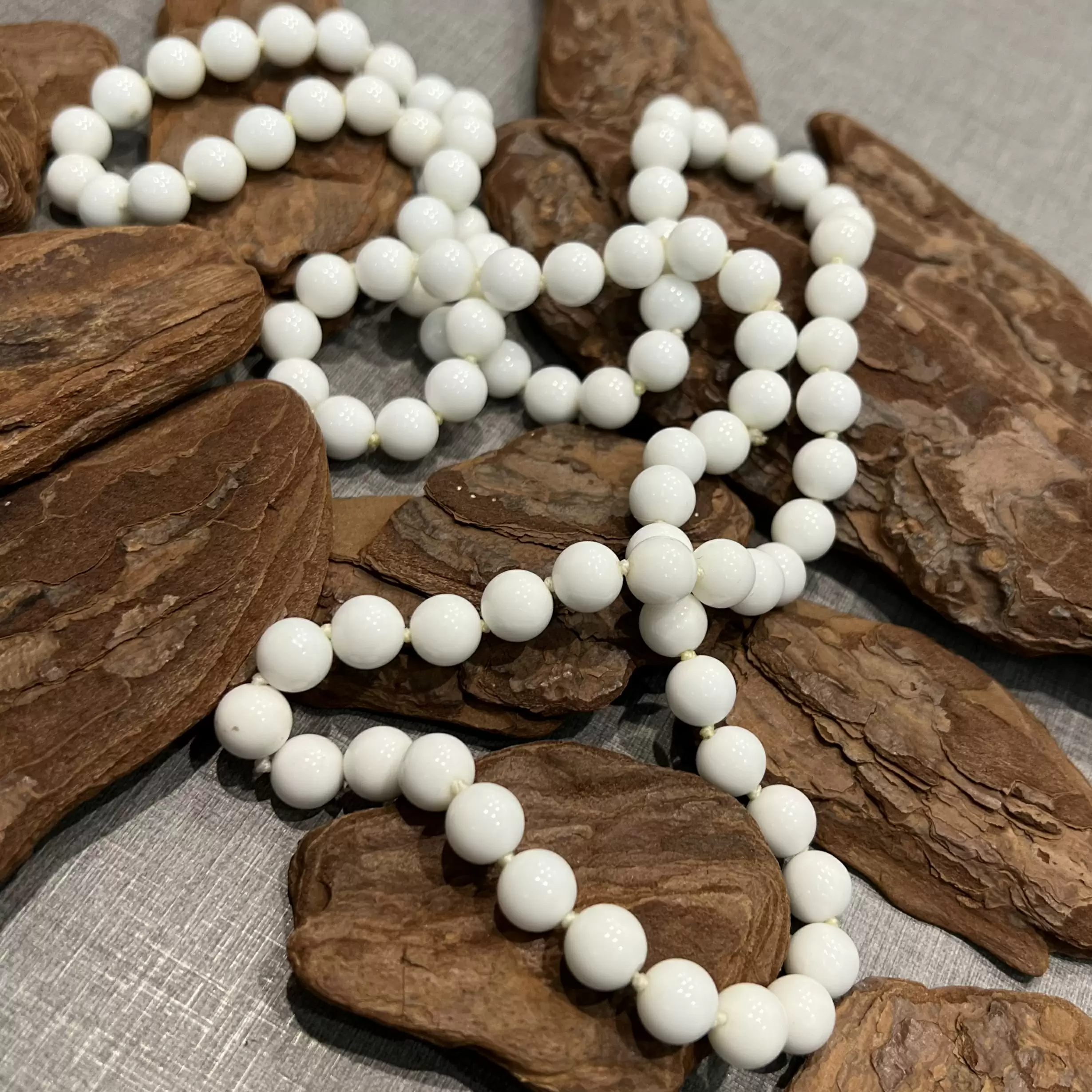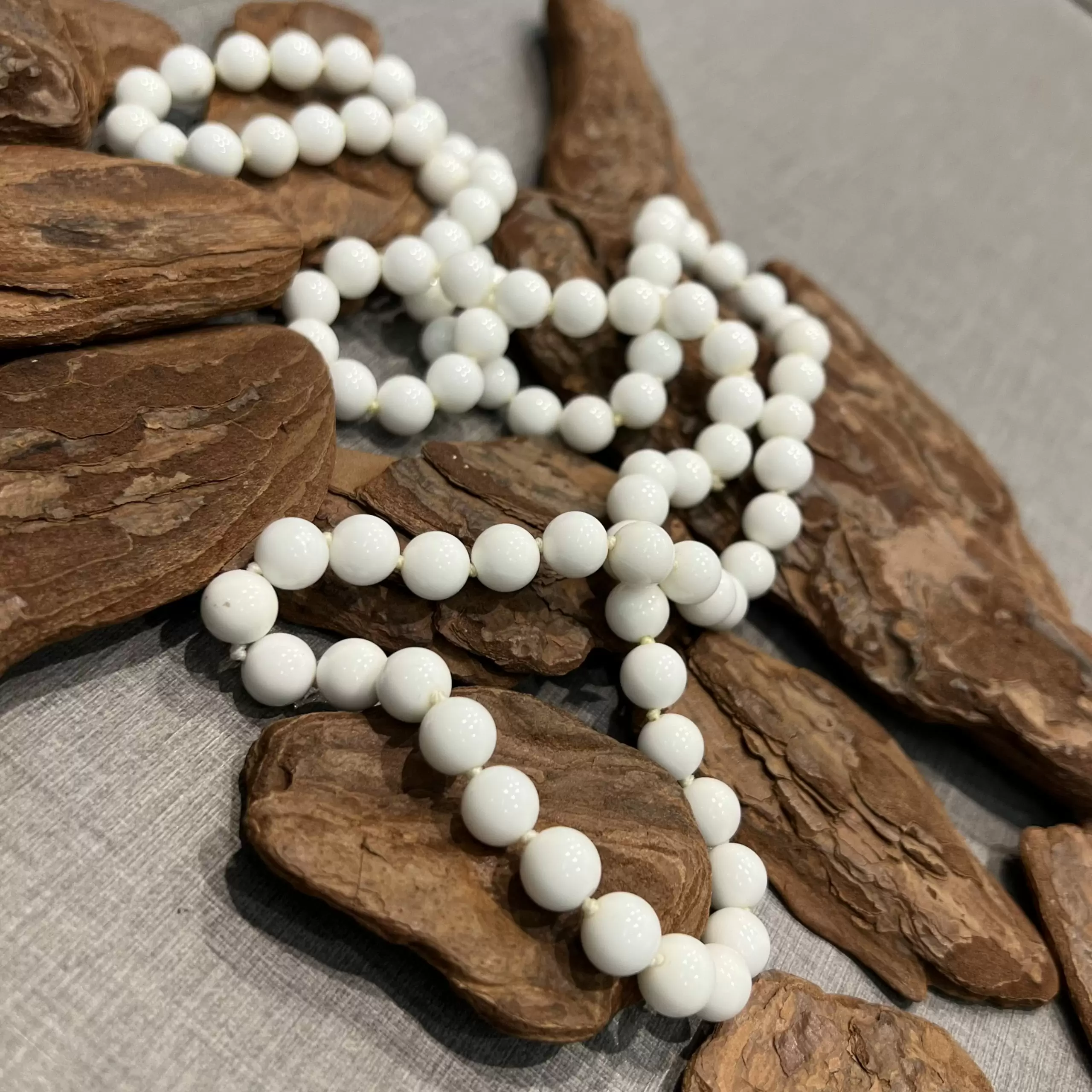 Colar longo bola 6mm com 80 cm de comprimento, sem fecho em Ágata Branca.