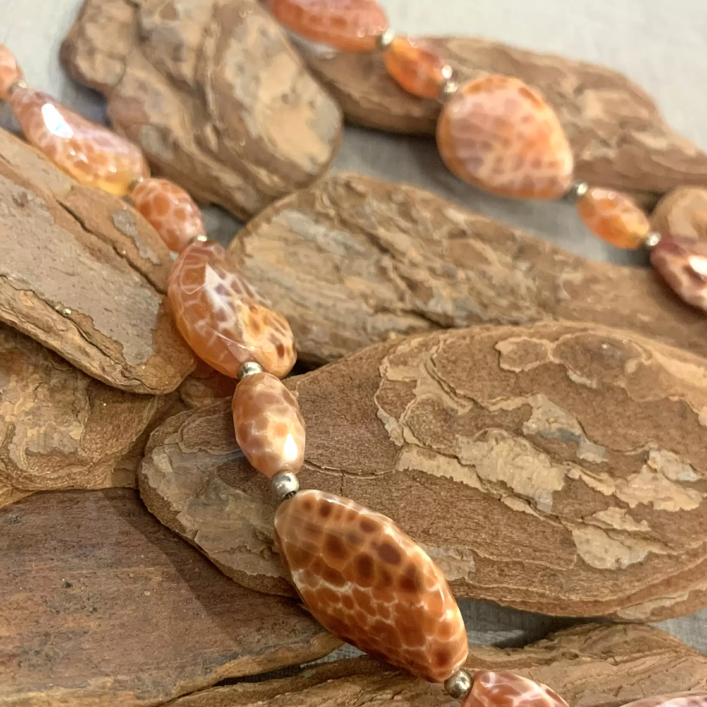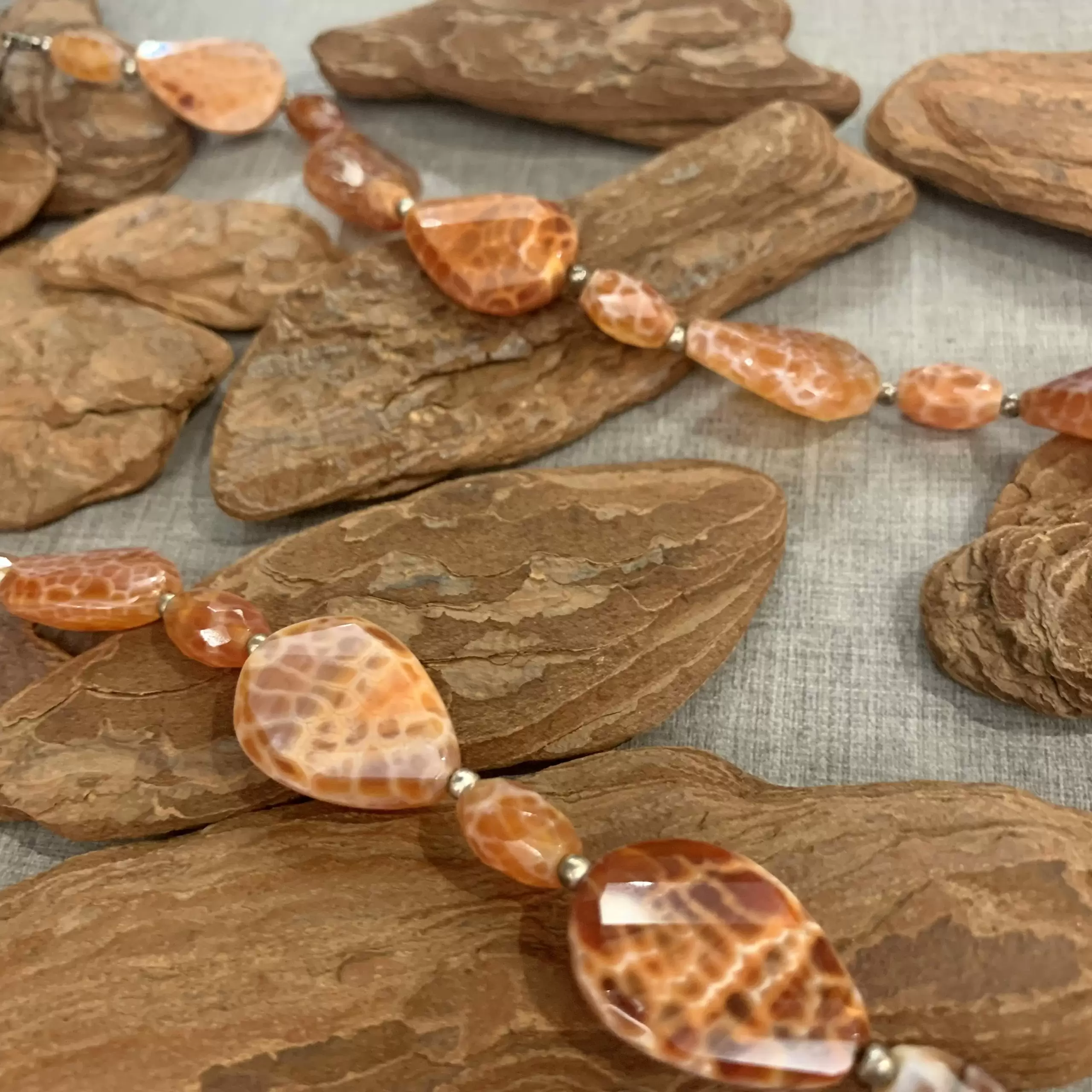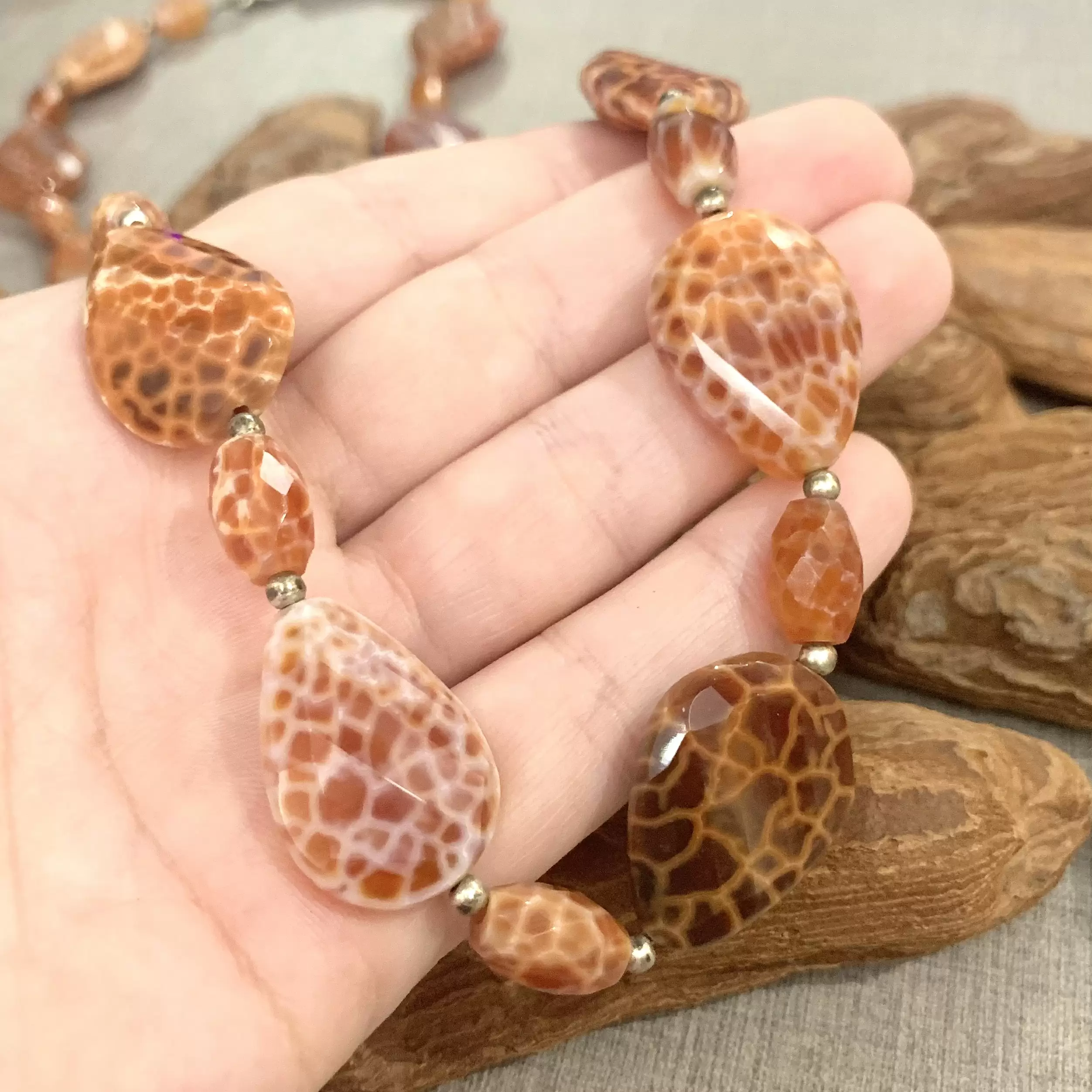 Colar longo com 70 cm de Ágata de fogo com fecho anzol em Prata 925.