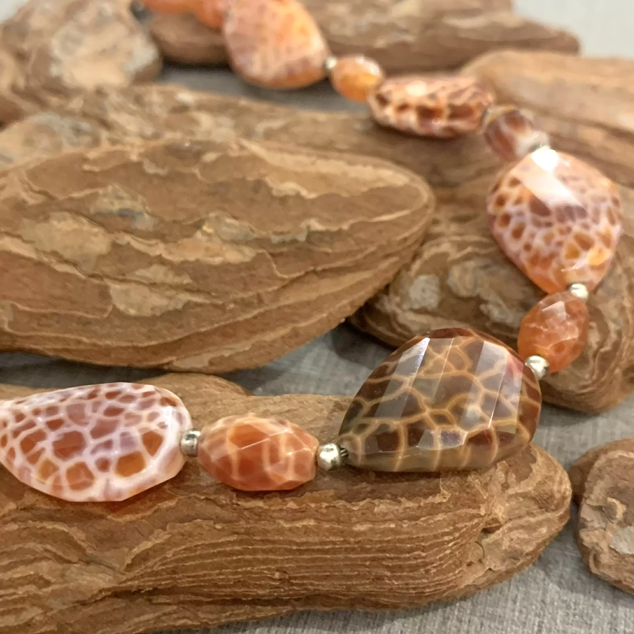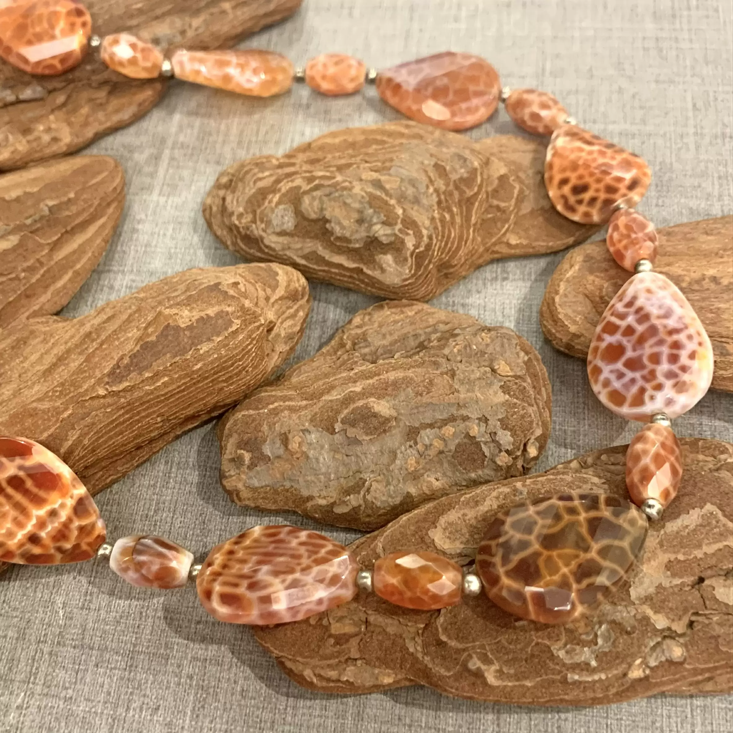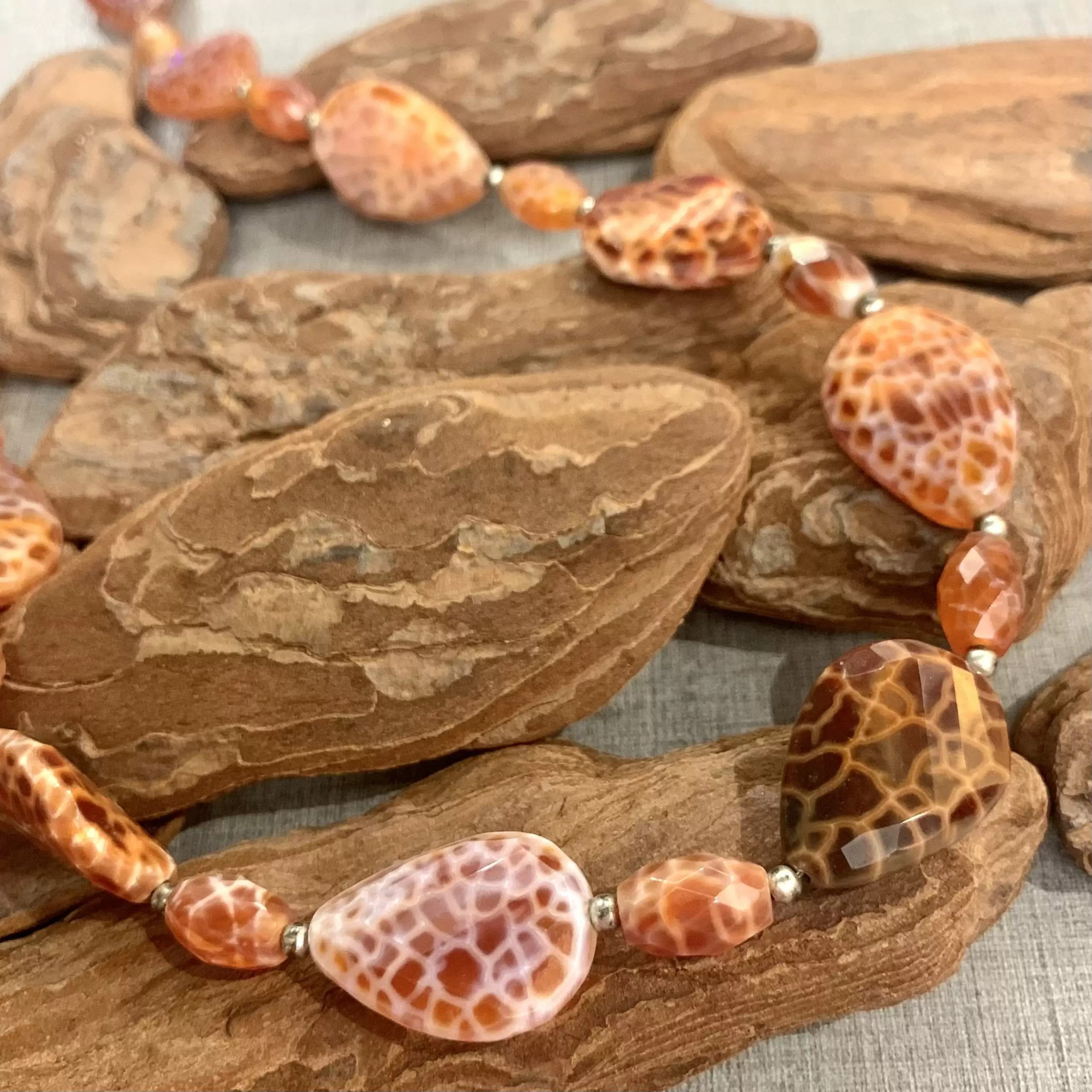 Colar longo com 70 cm de Ágata de fogo com fecho anzol em Prata 925.