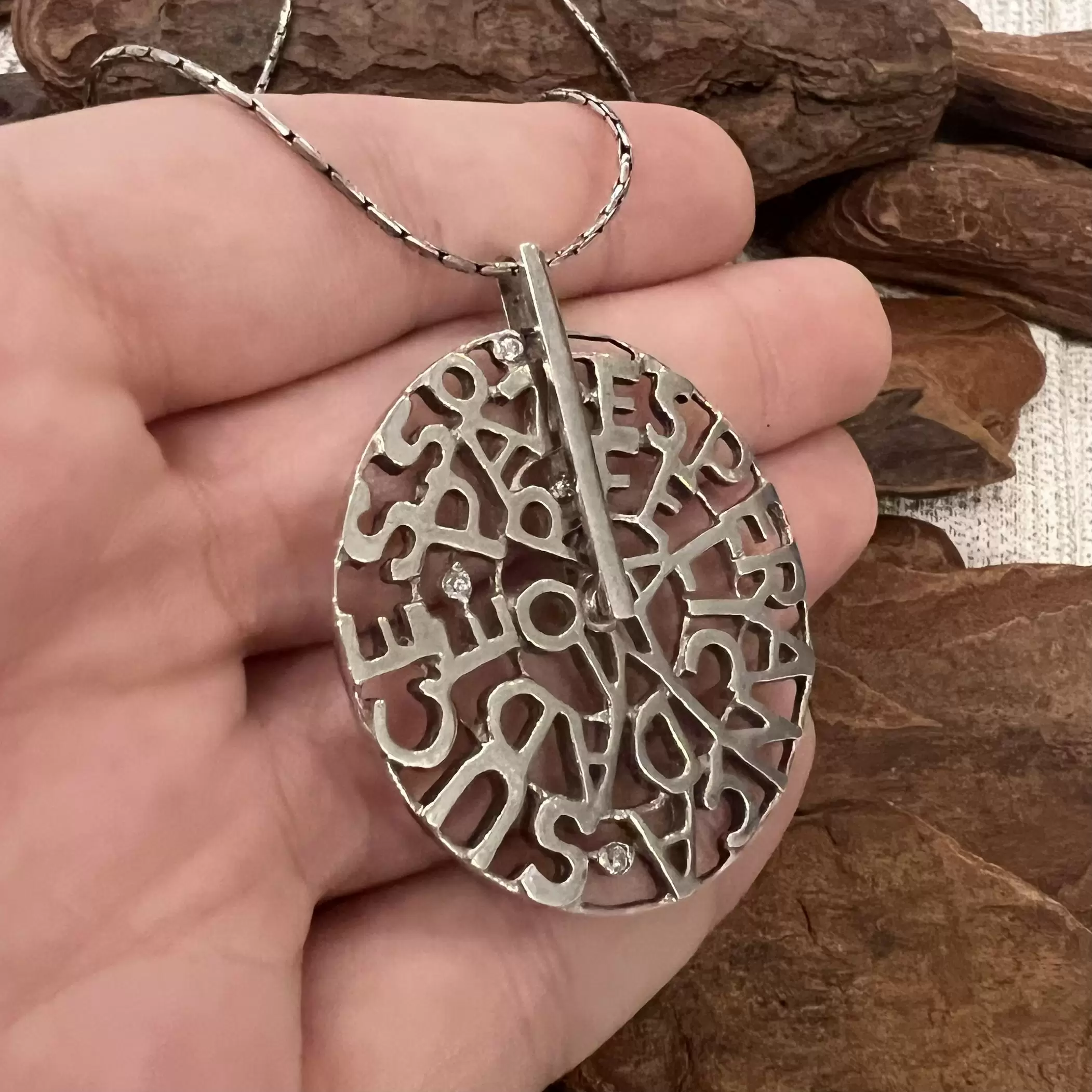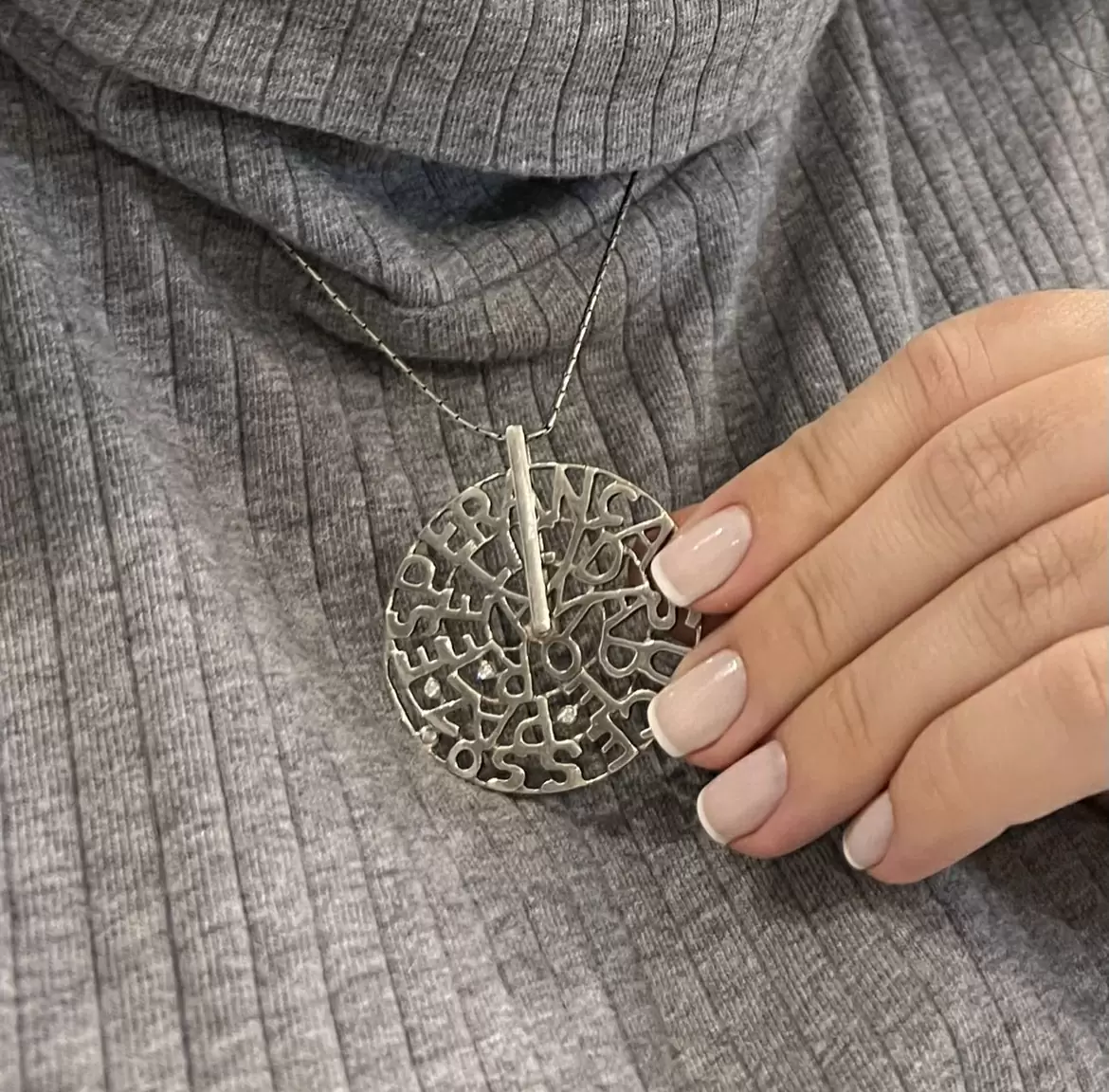 Colar Mandala giratória dos desejos em Prata 925 com zircônias brancas.