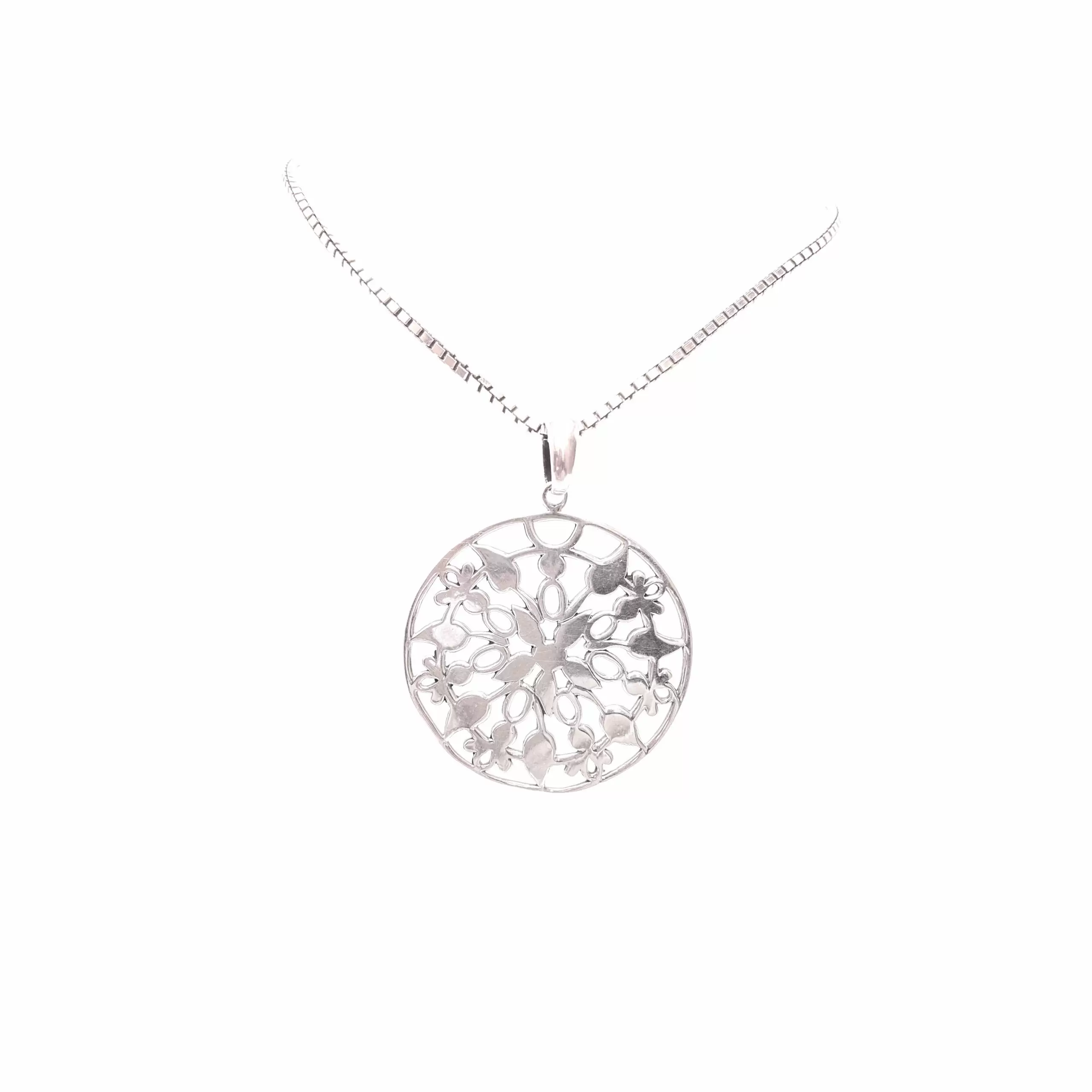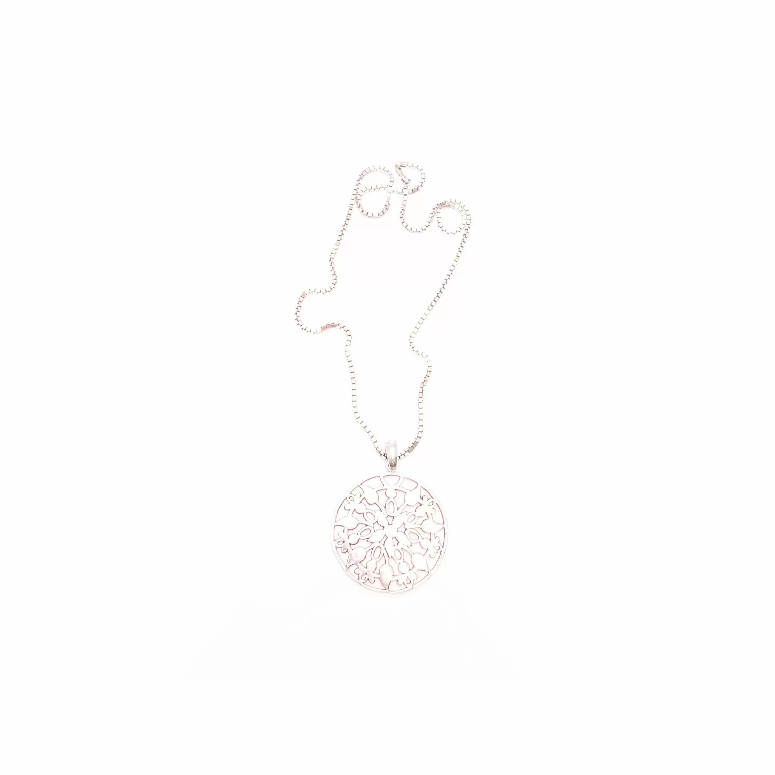 Colar Mandala Floral com Corrente Veneziana Grossa em Prata 925
