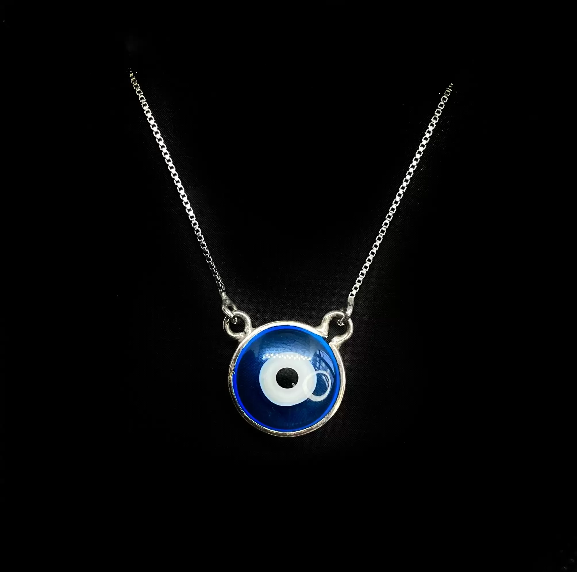 Colar 4 Olhos Grego Pequenos , 1 Médio, Azuis Escuros em Prata