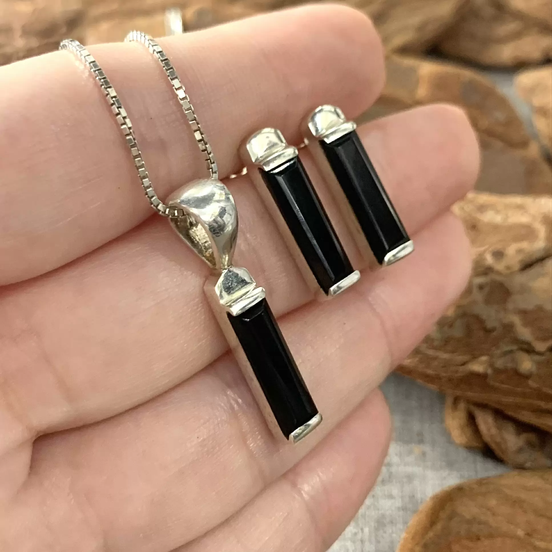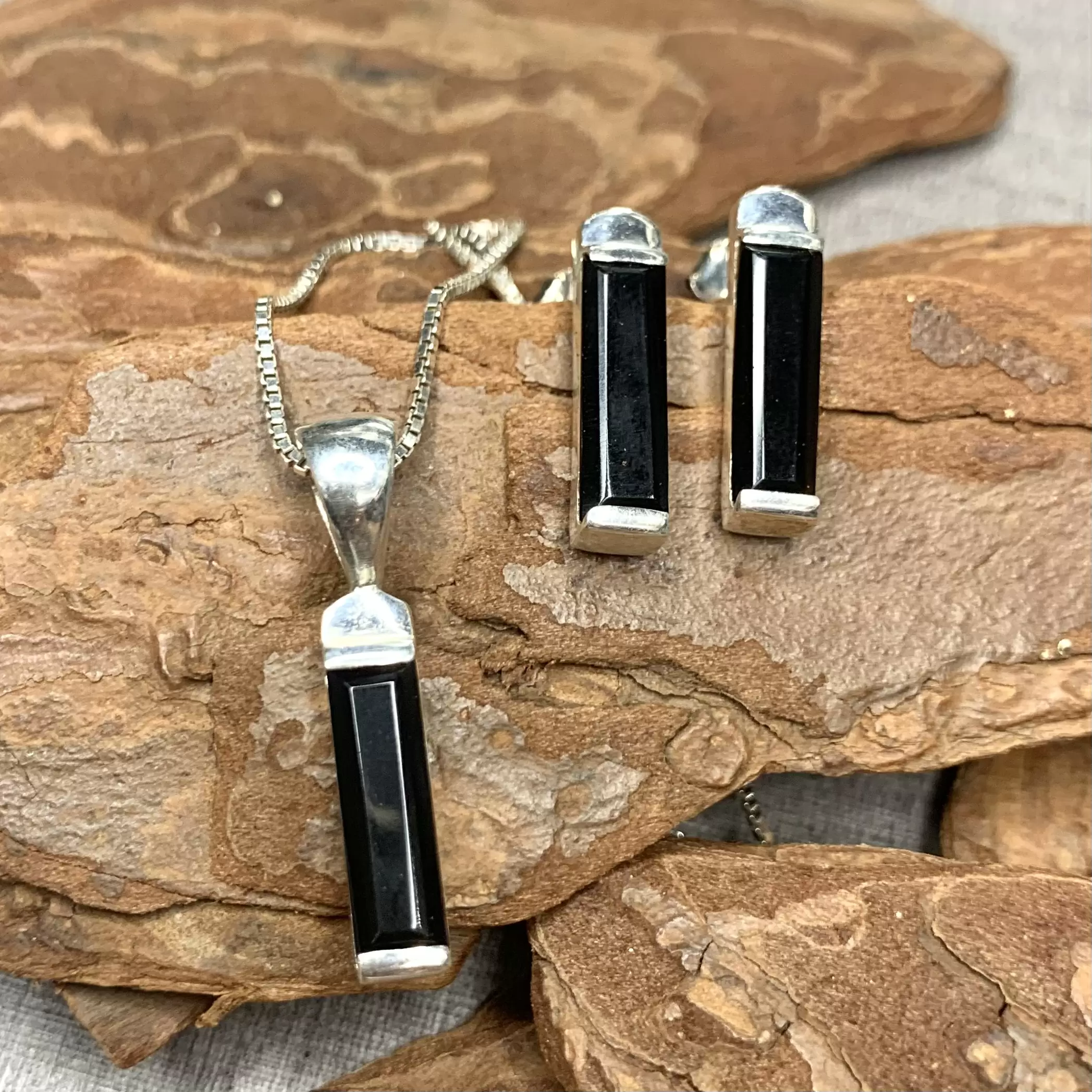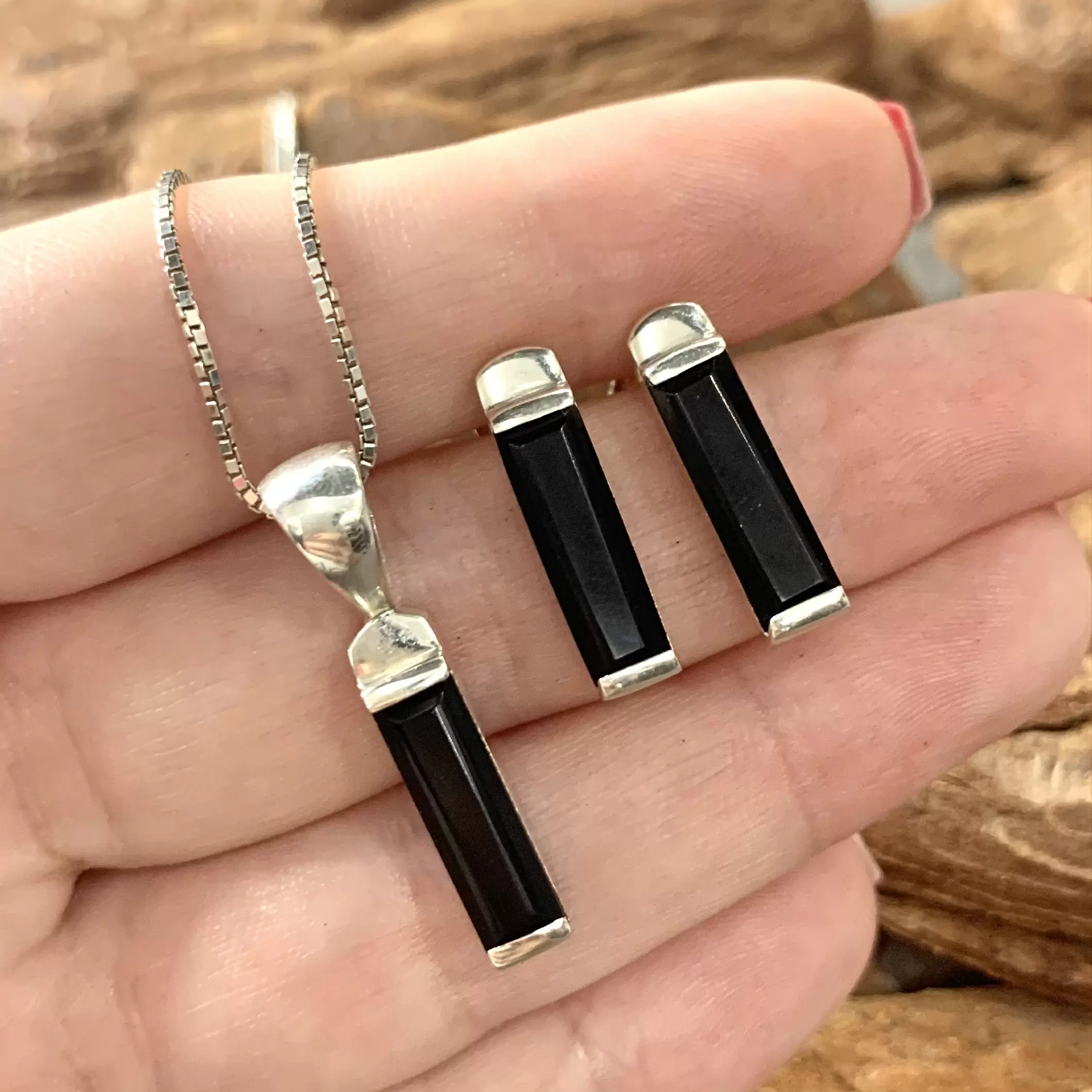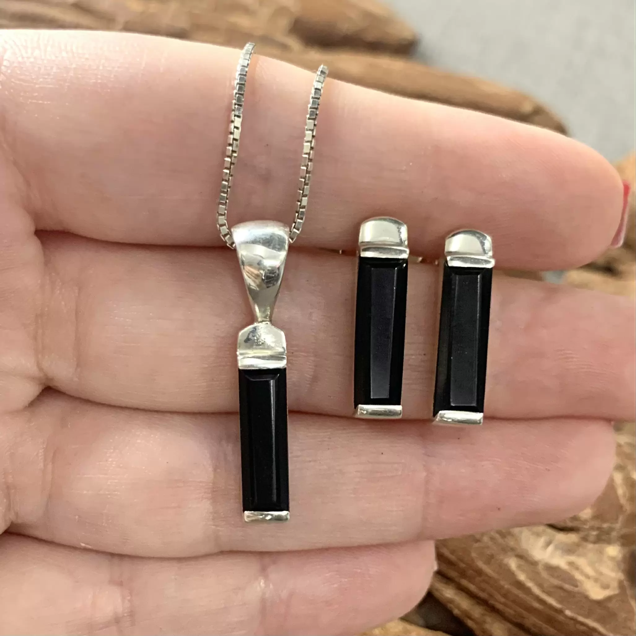 Conjunto palito ônix em prata 925.
