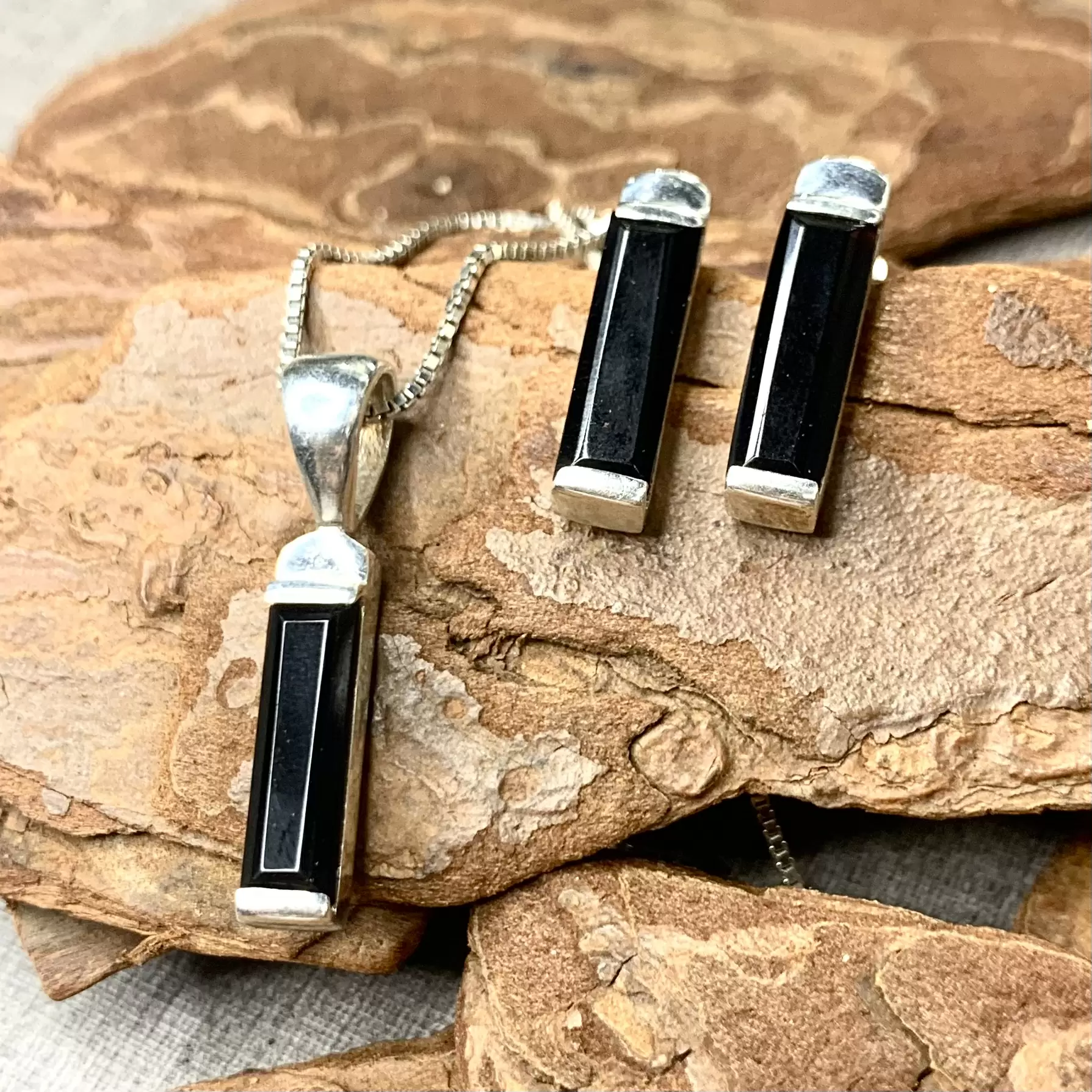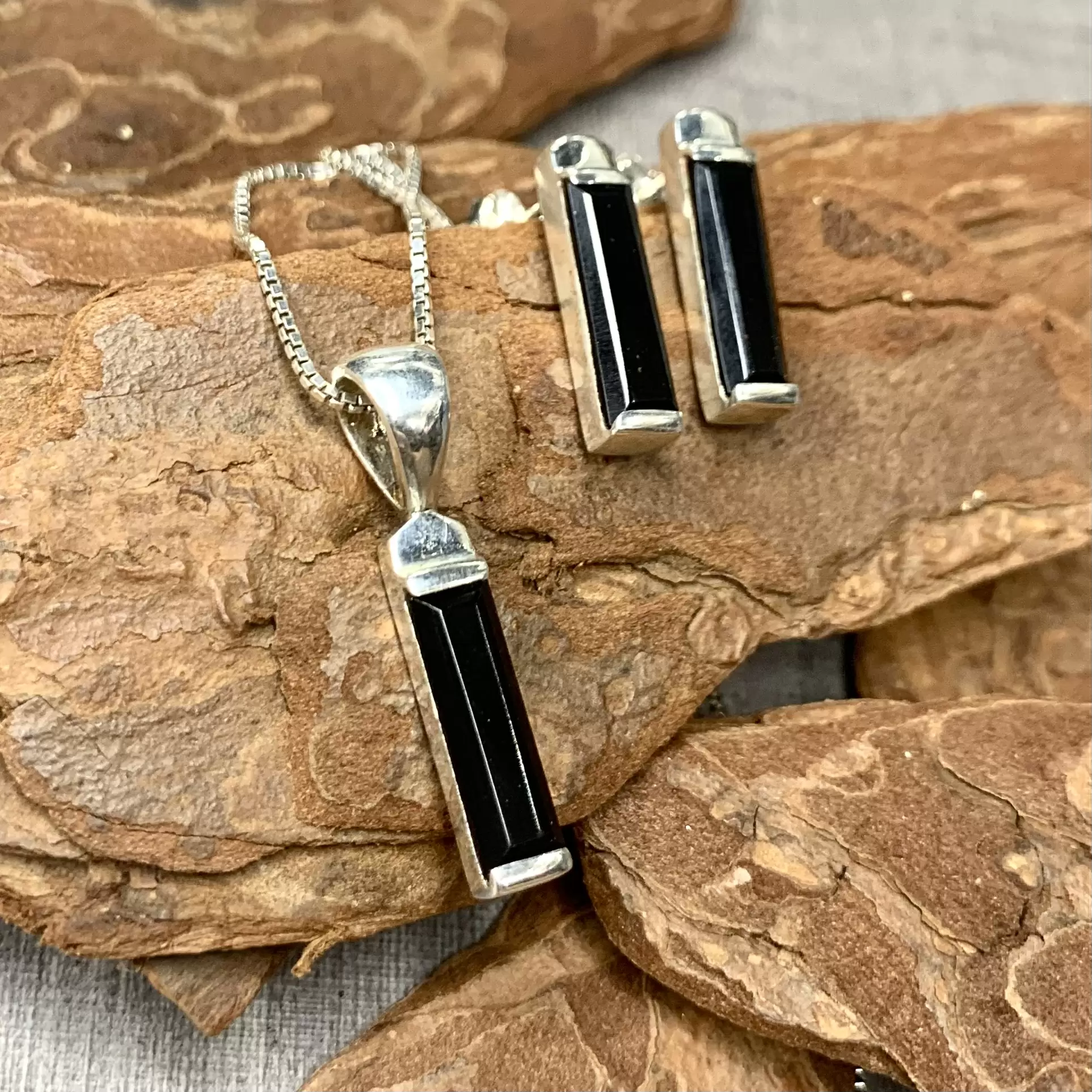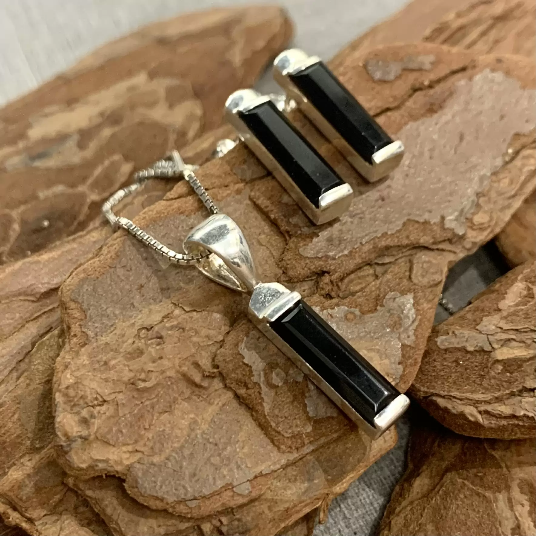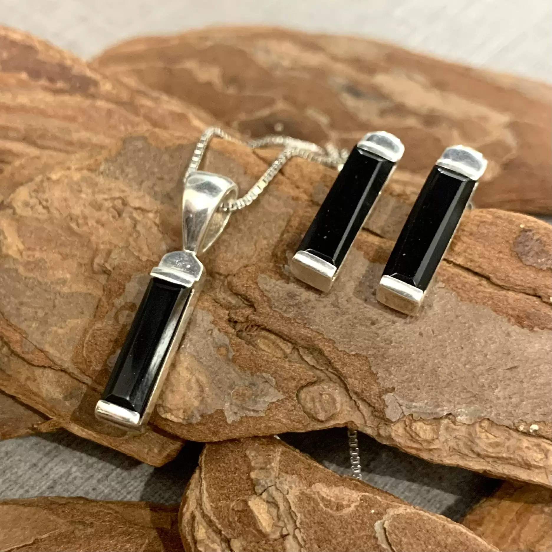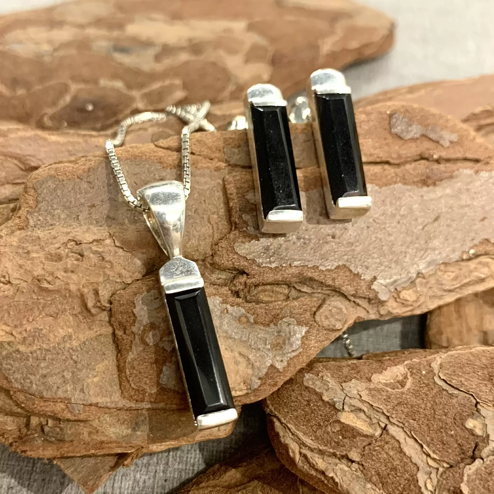 Conjunto palito ônix em prata 925.