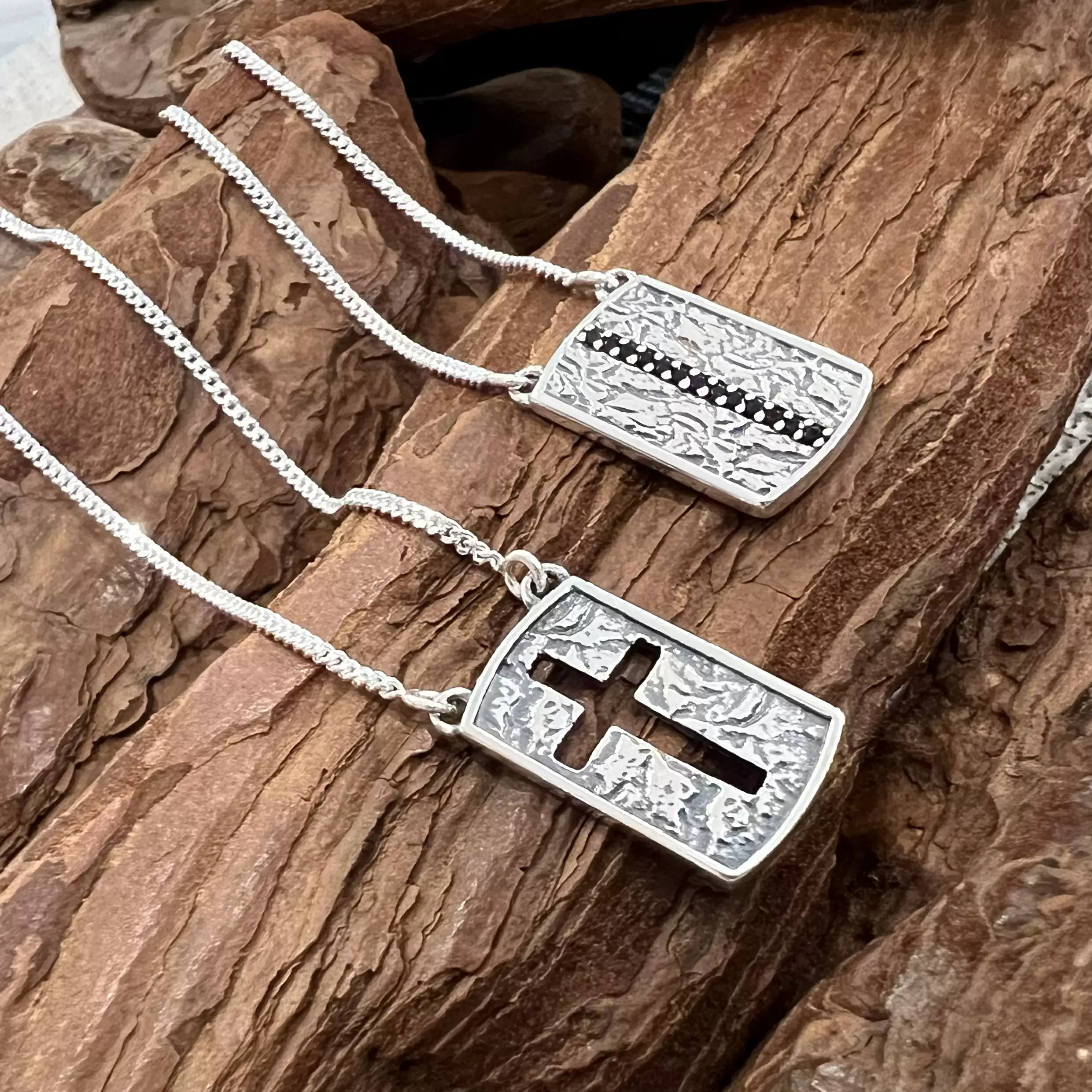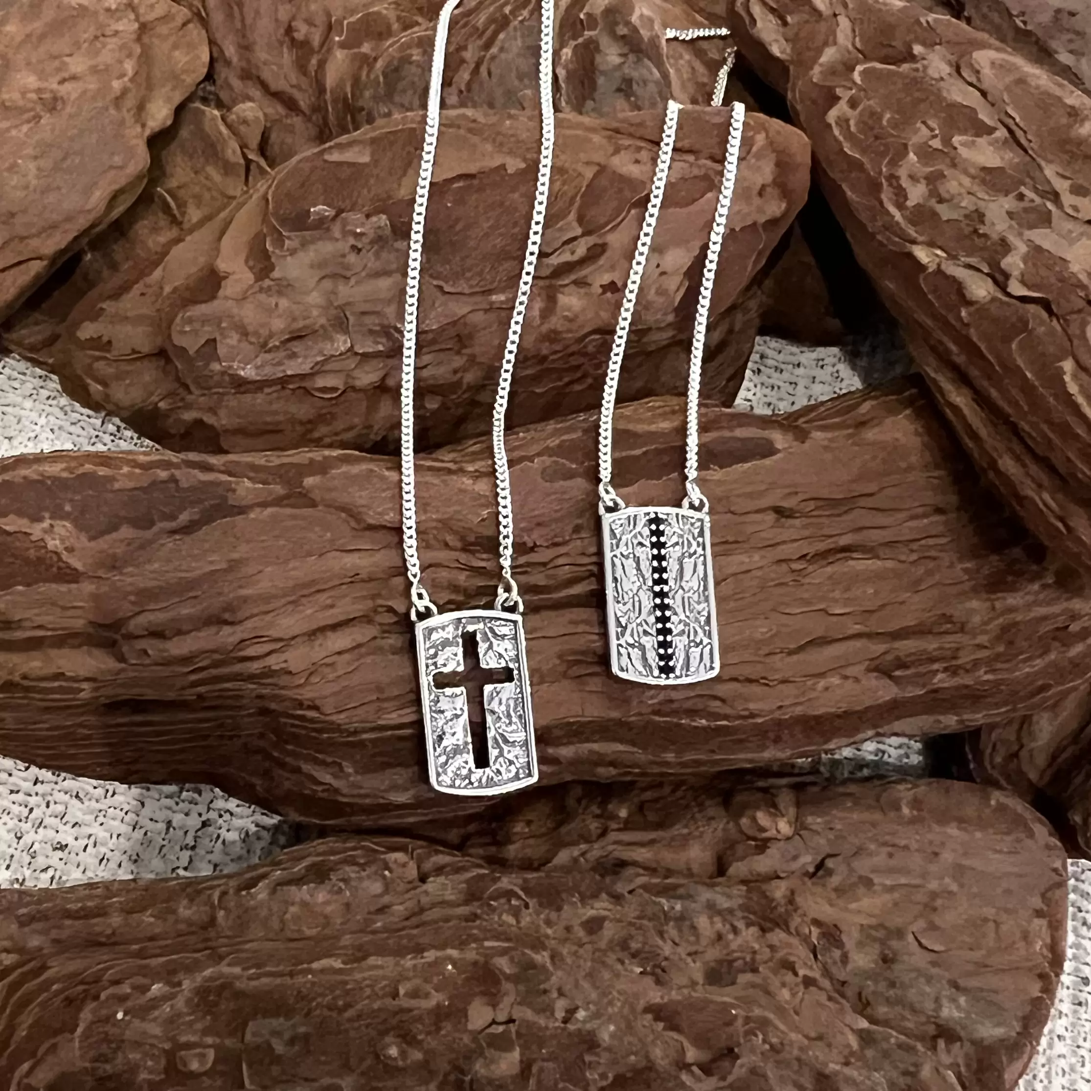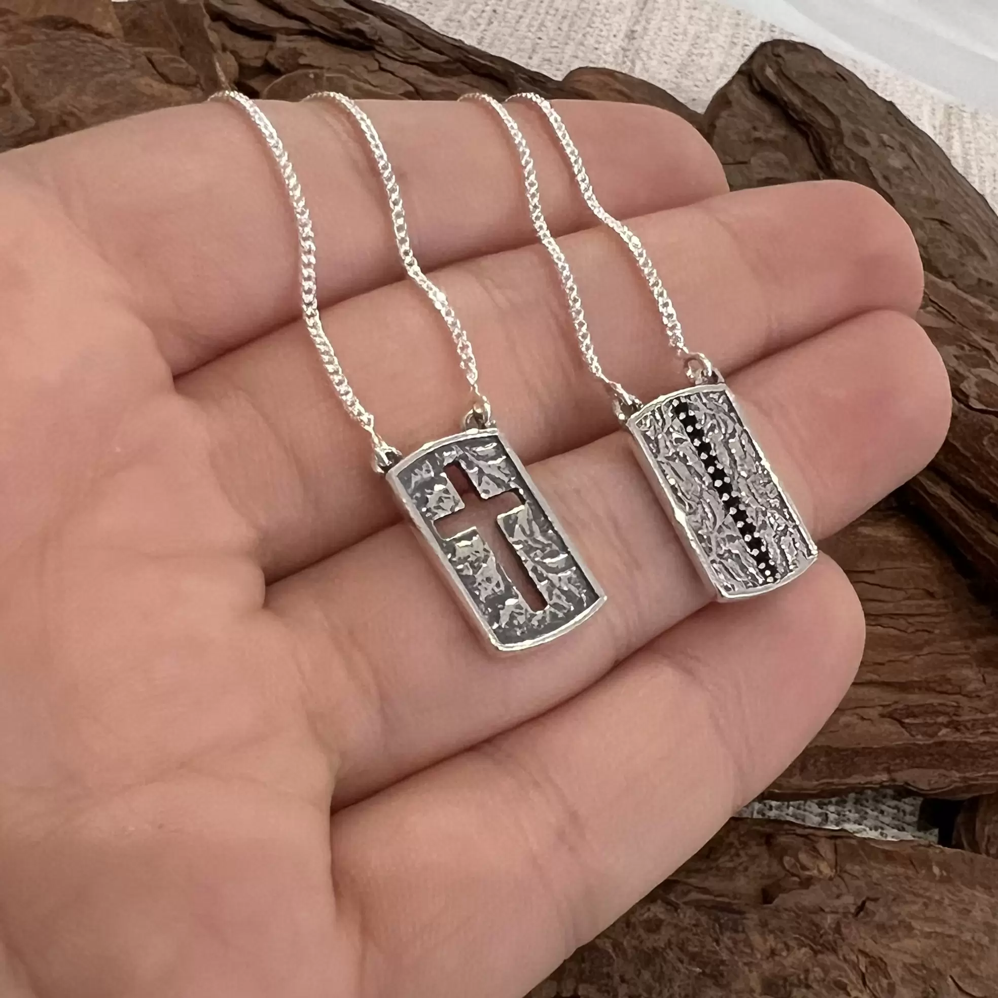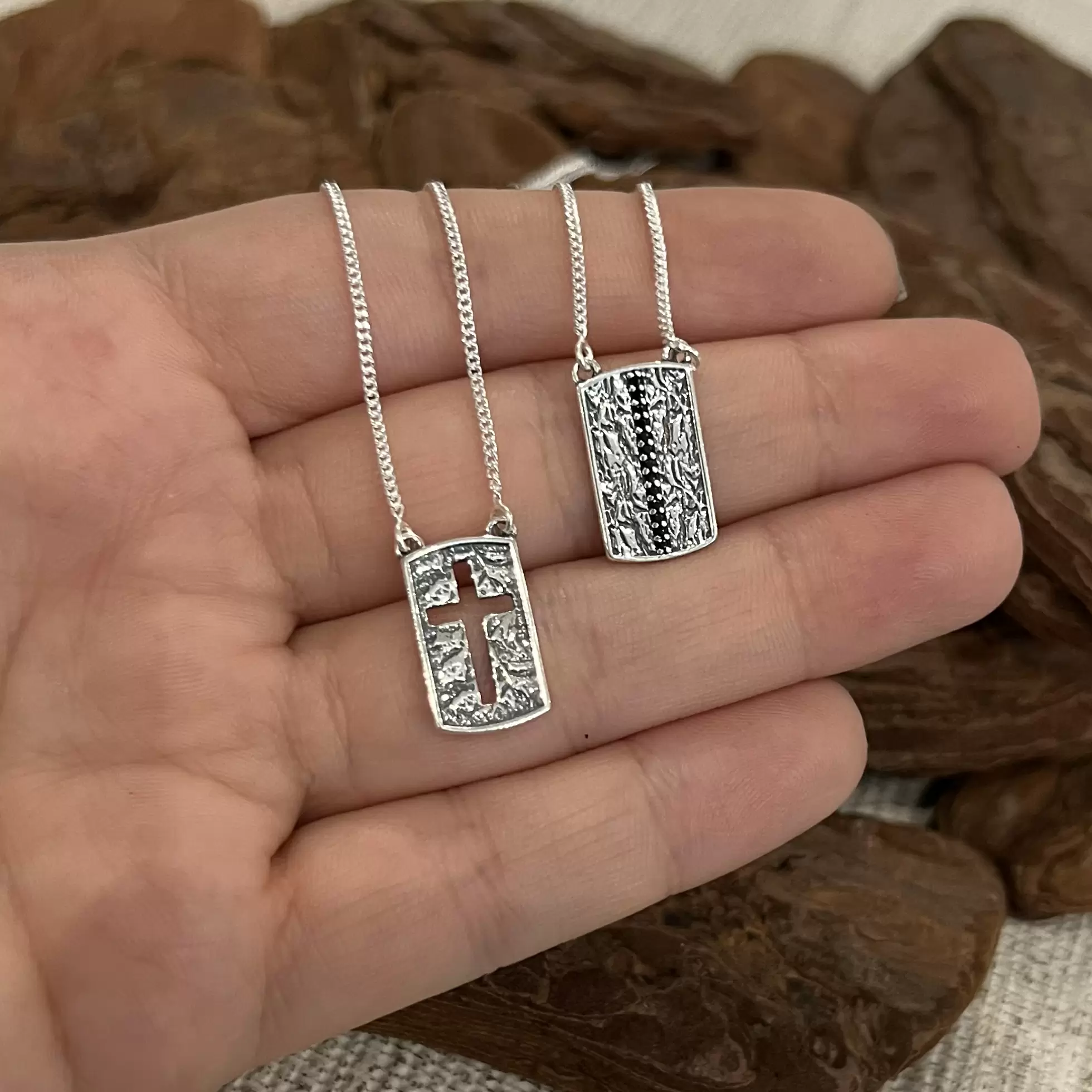 Escapulário Crucifixo e Zircônias Negras em Prata 925.