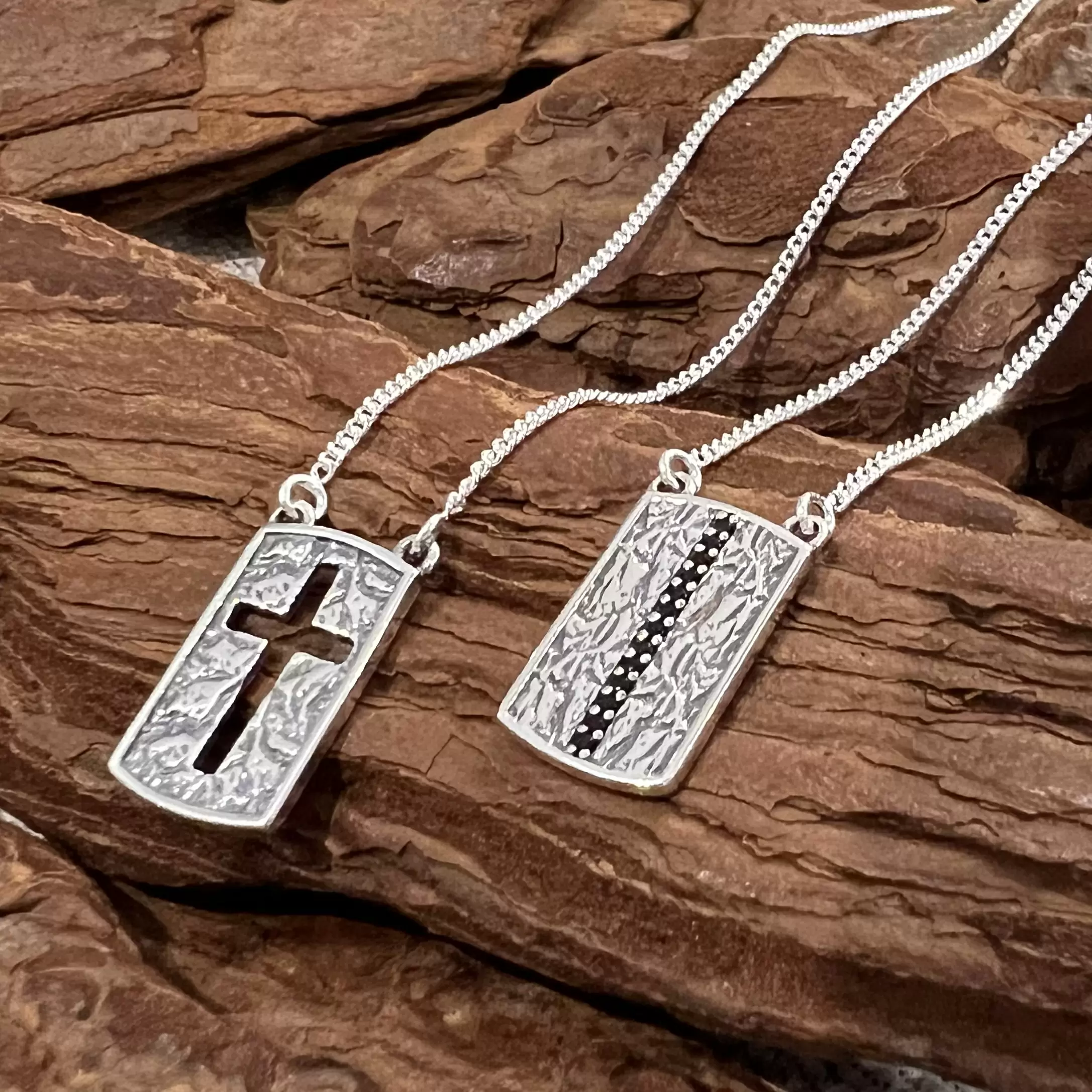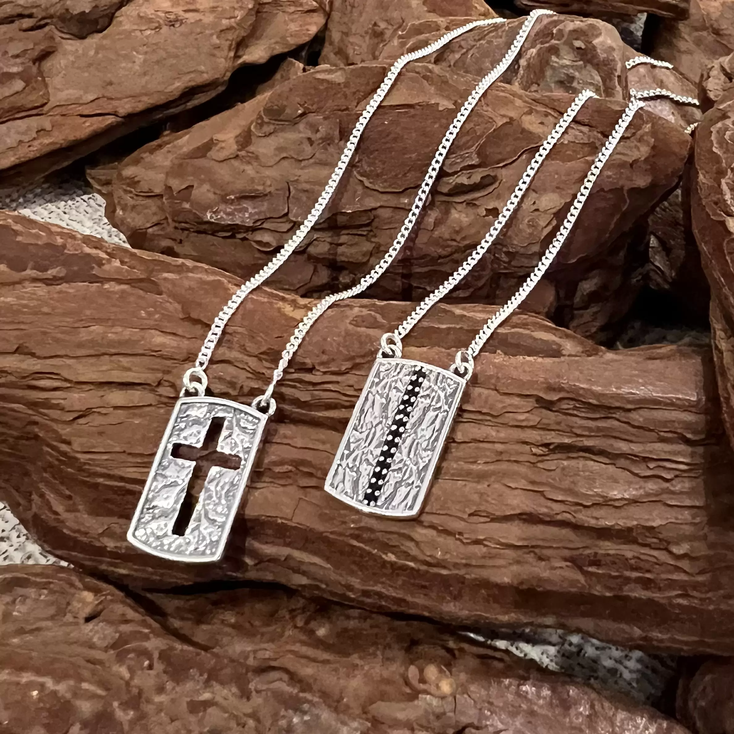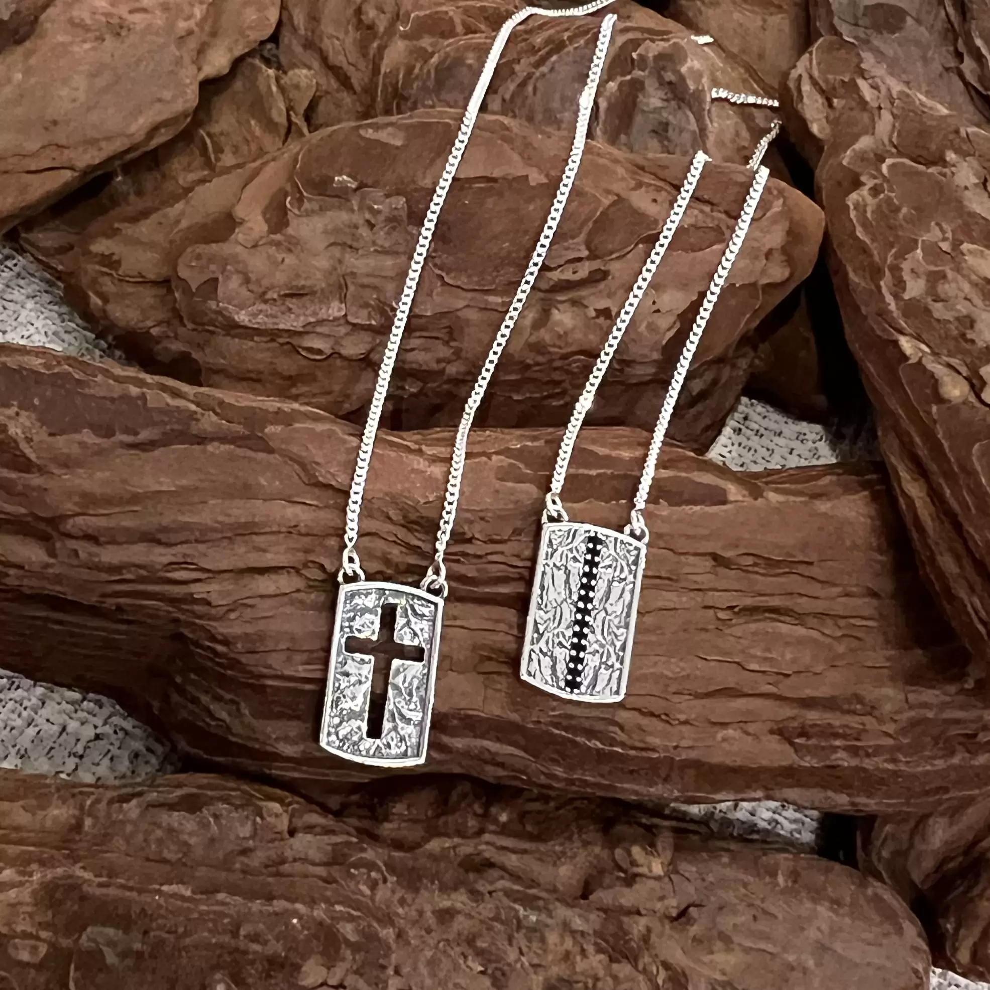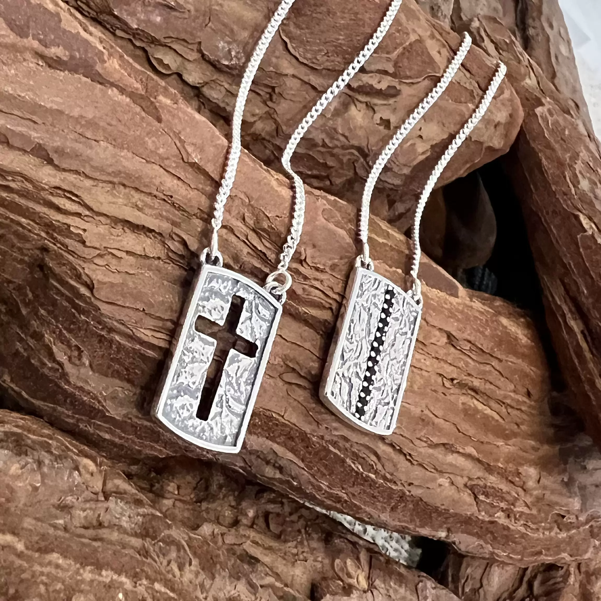 Escapulário Crucifixo e Zircônias Negras em Prata 925.
