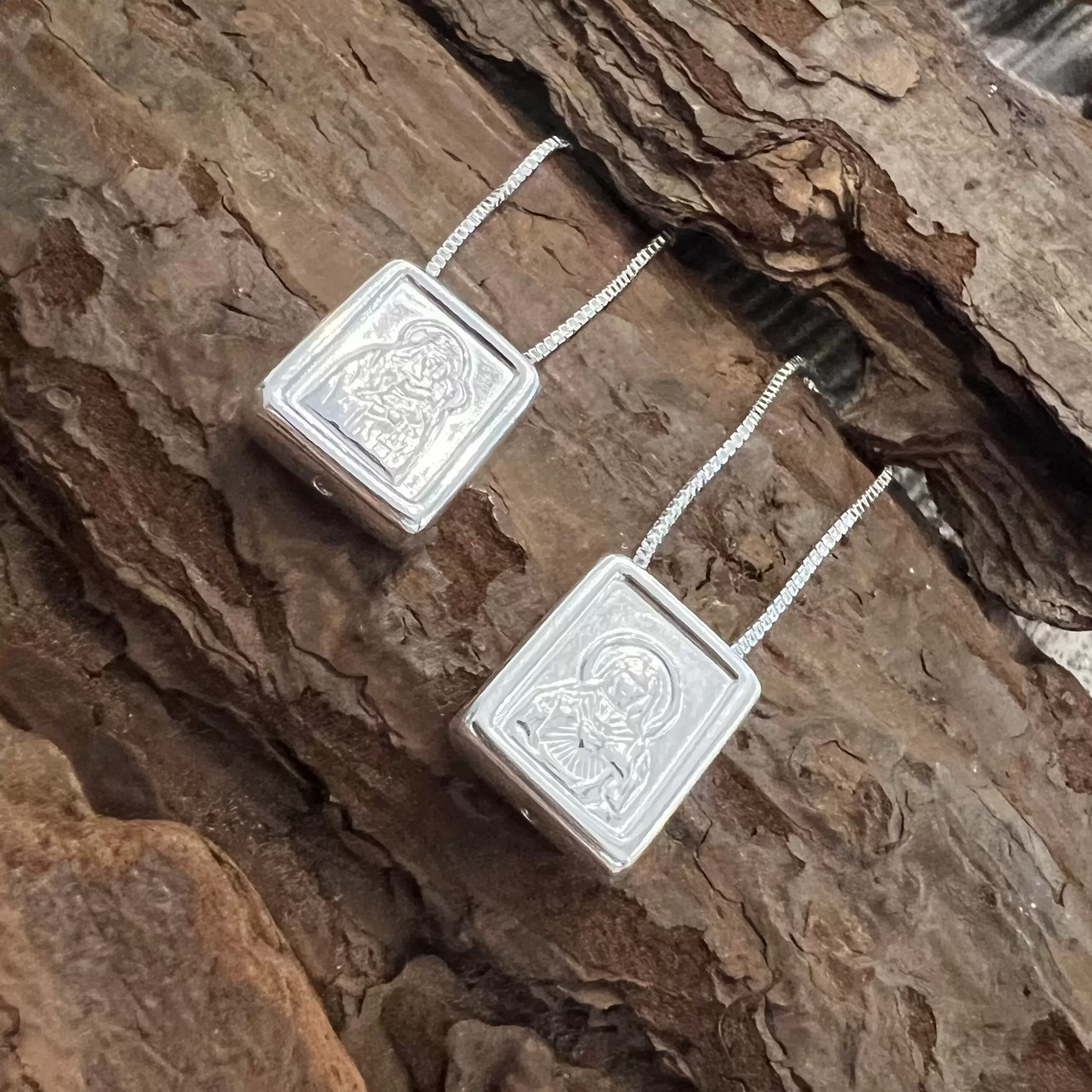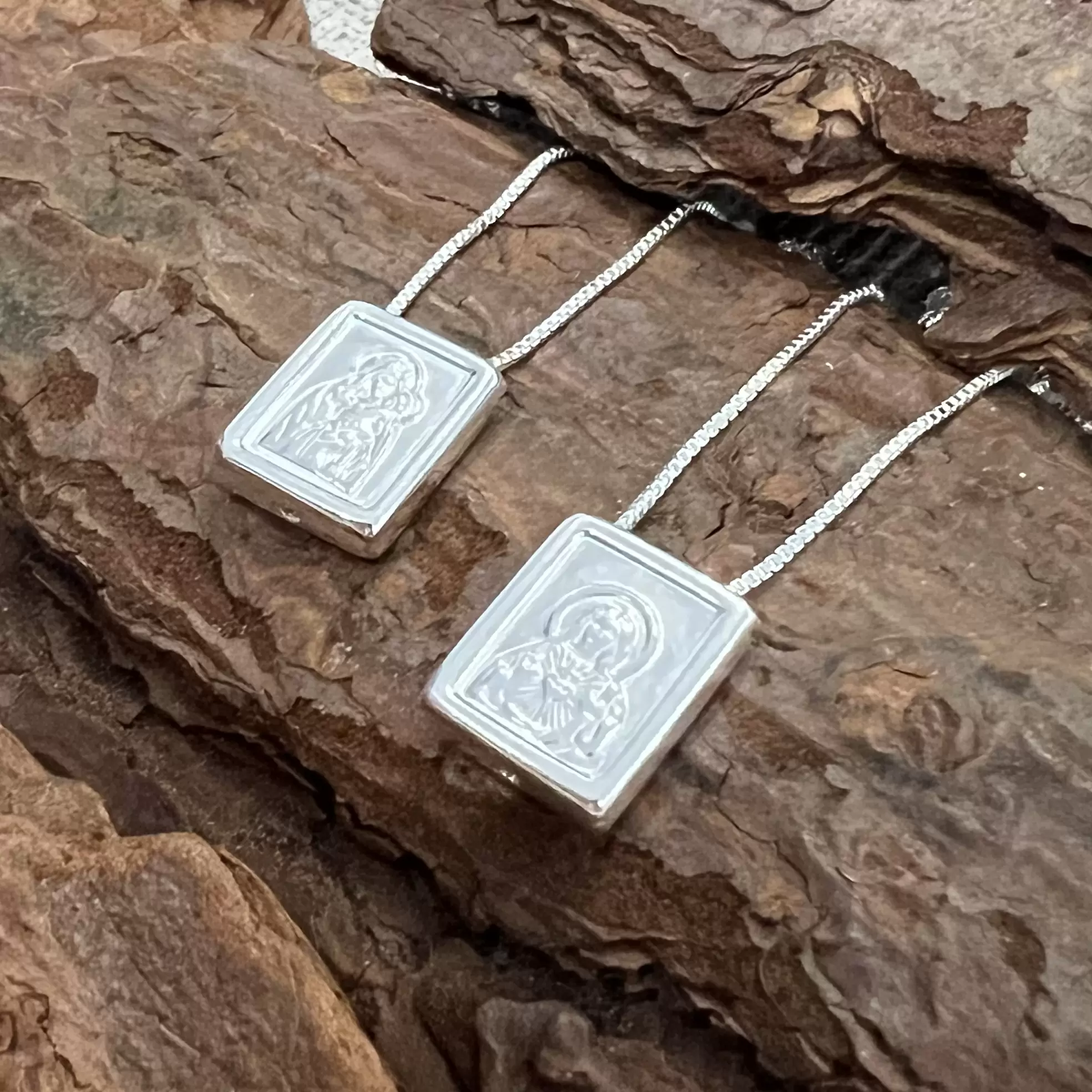 Início Religioso Escapulário de Caixinha Tradicional Liso M em Prata 925