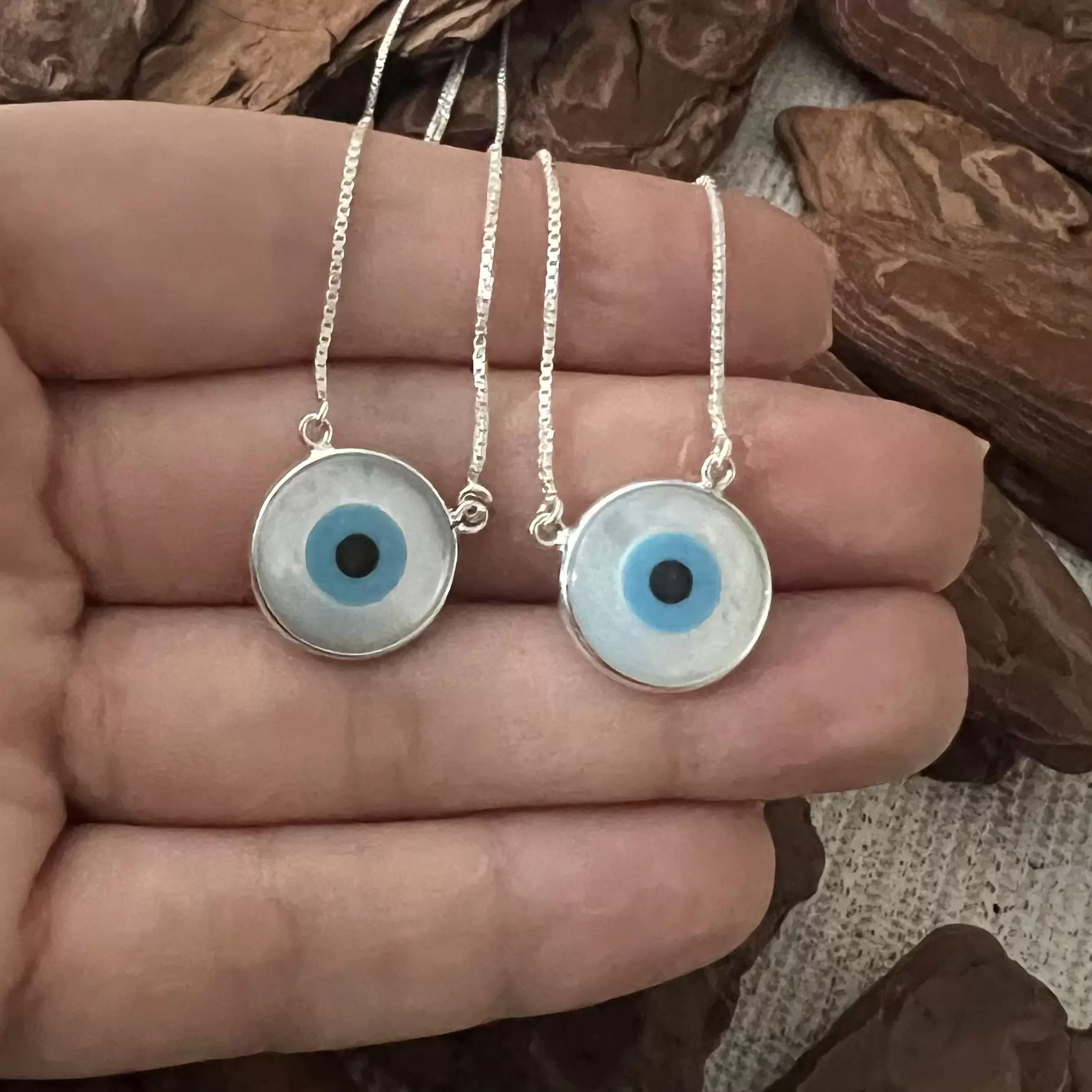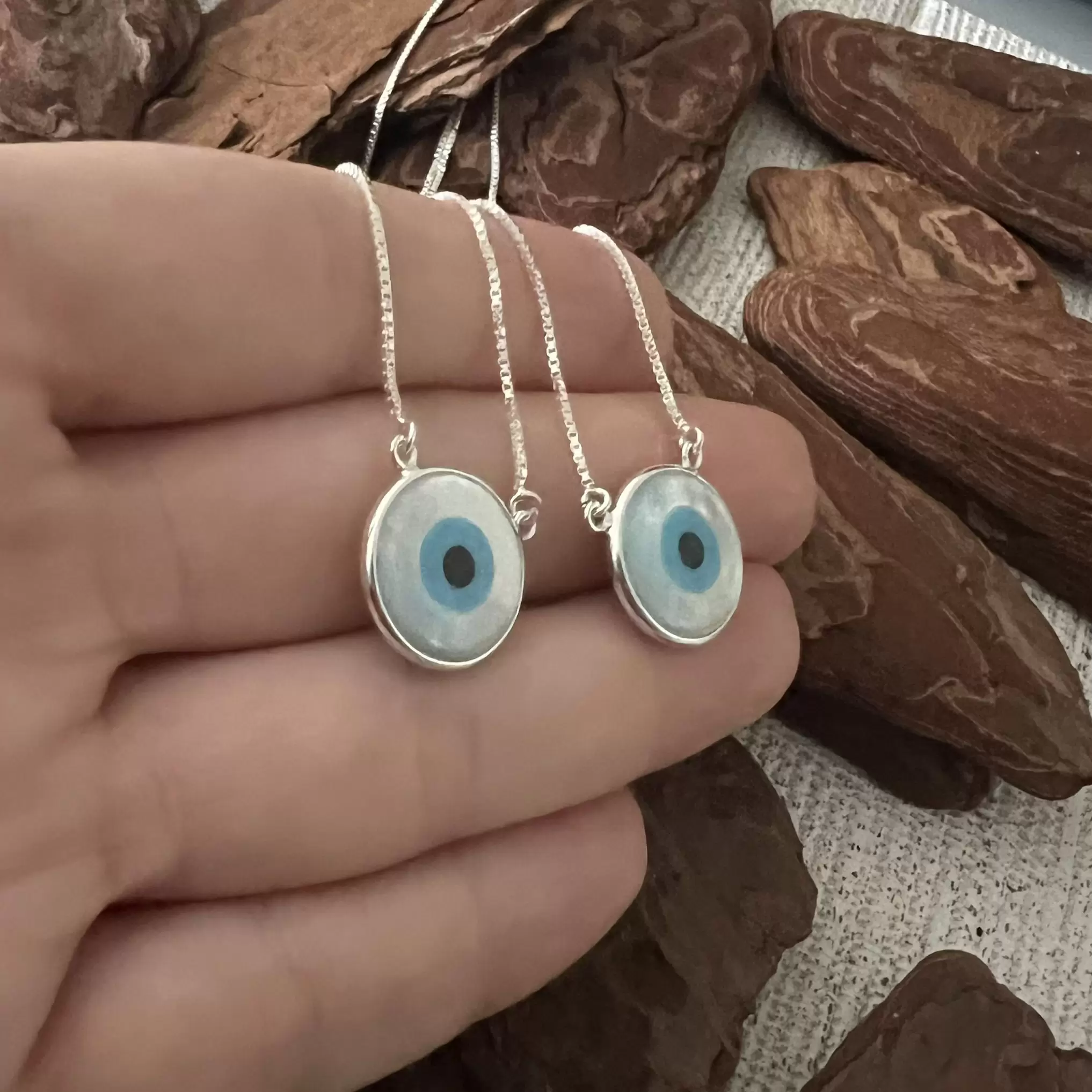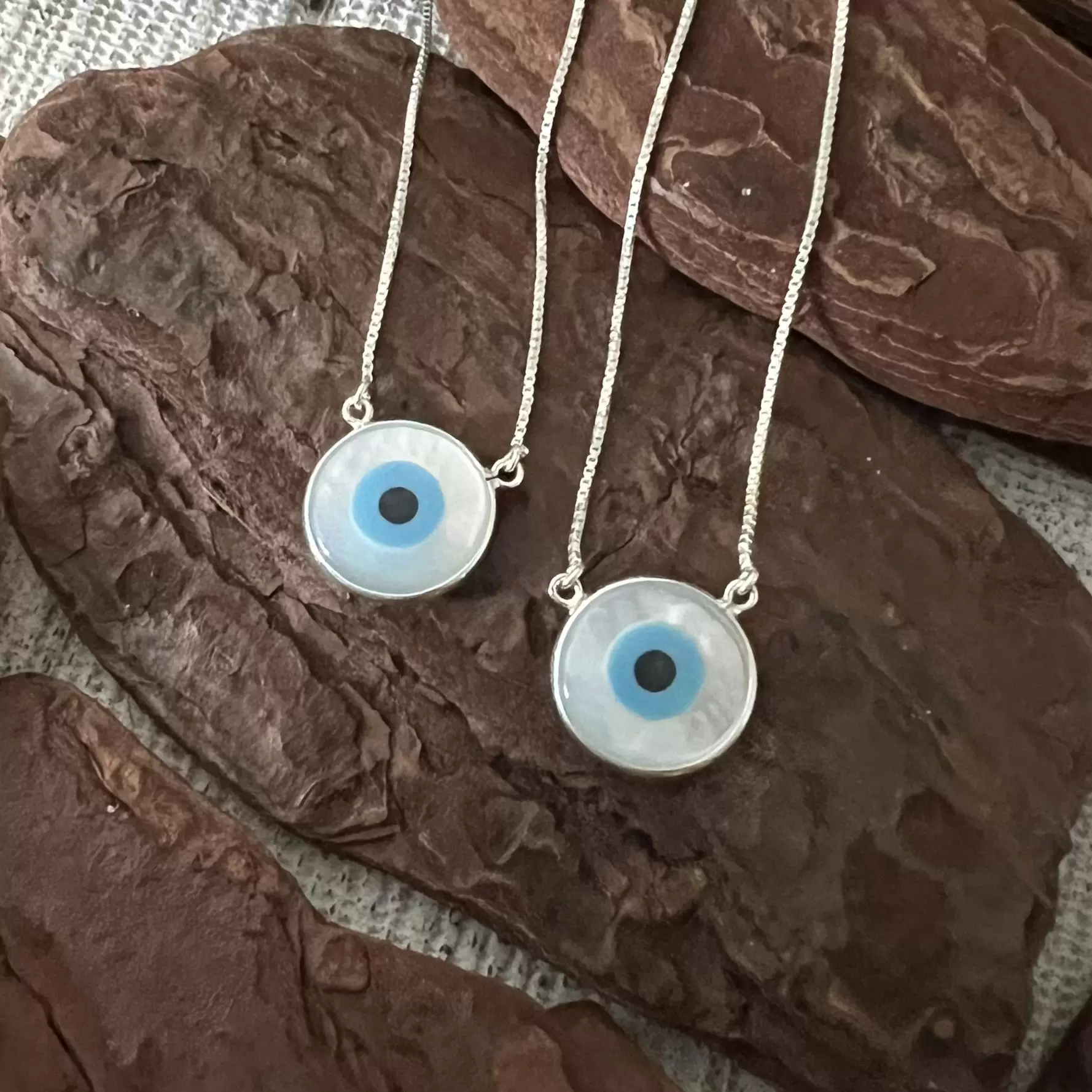 Escapulário Olho Grego de Madrepérola G em Prata 925.