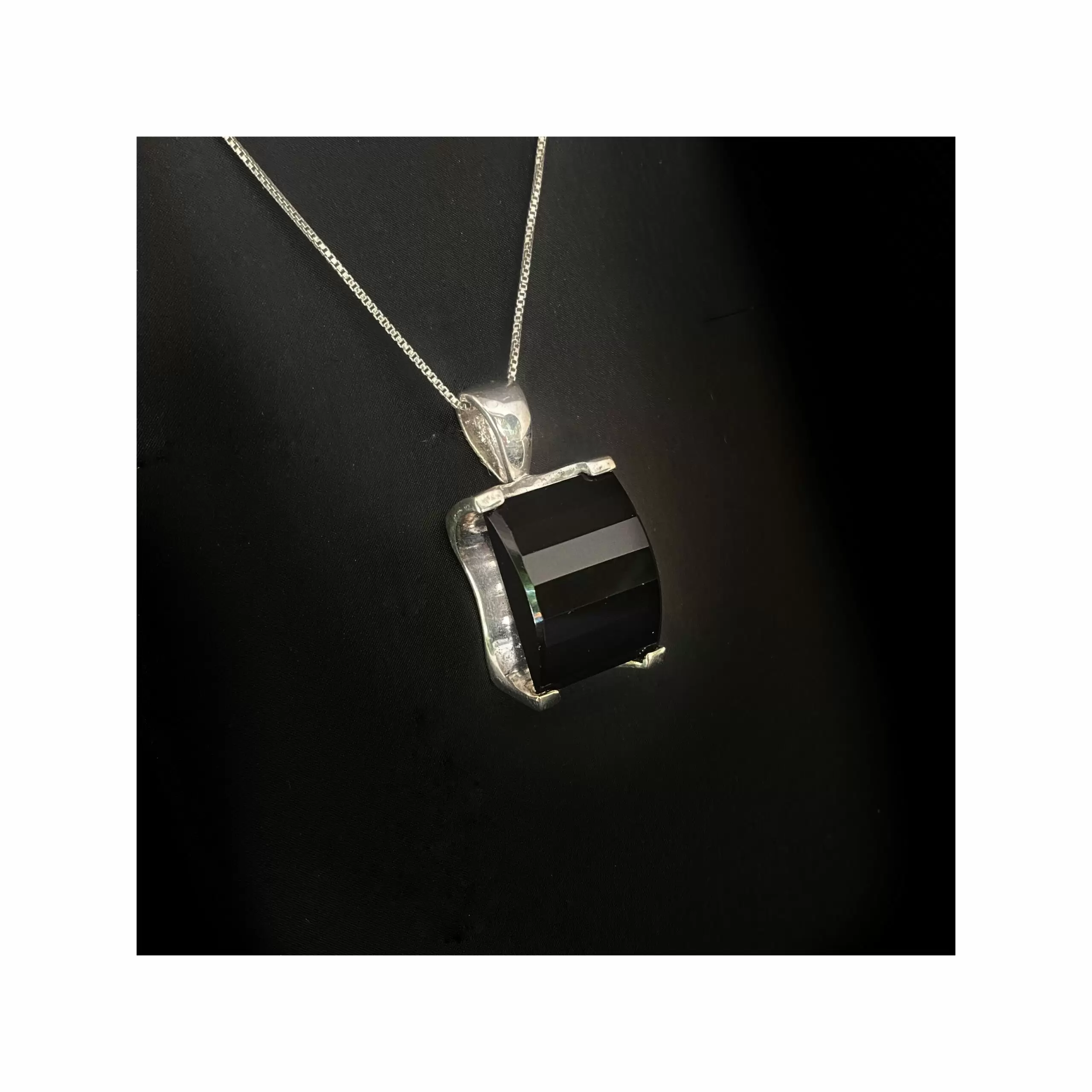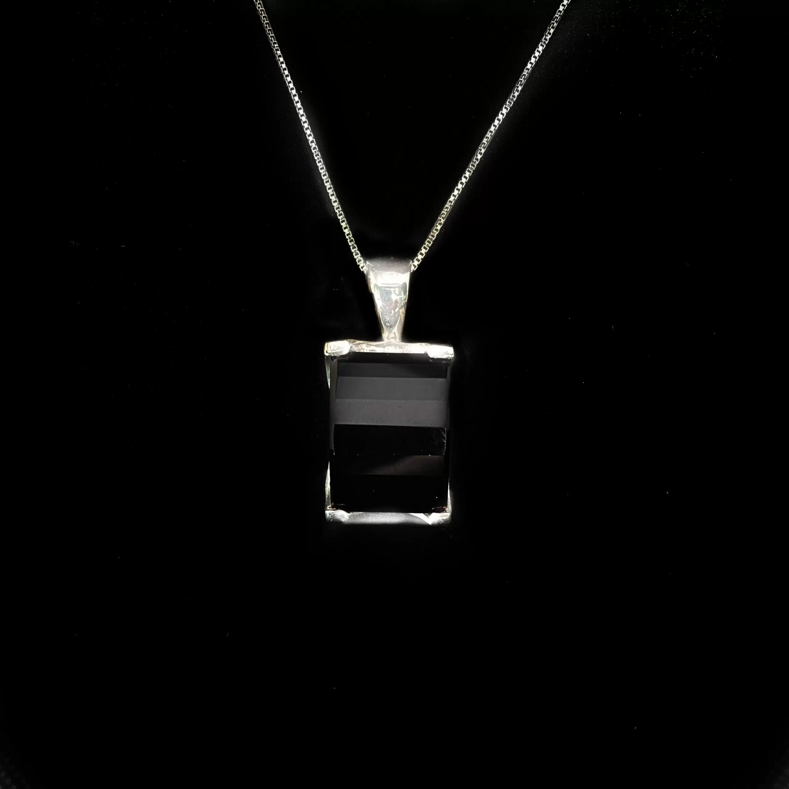 Início Pedras Naturais Ônix Gargantilha com Pingente de Ônix em Prata 925