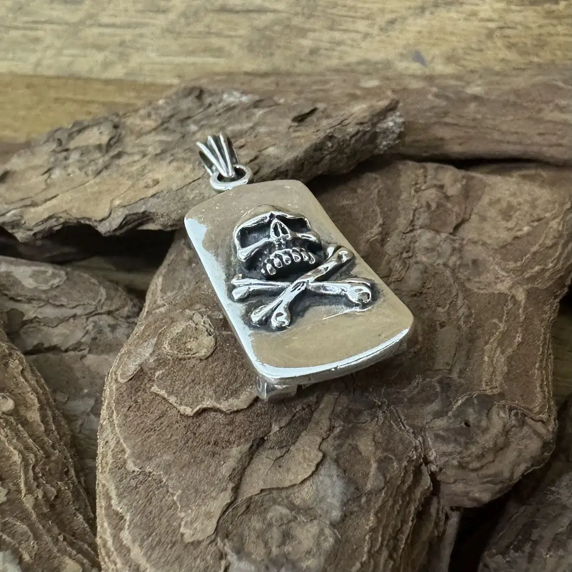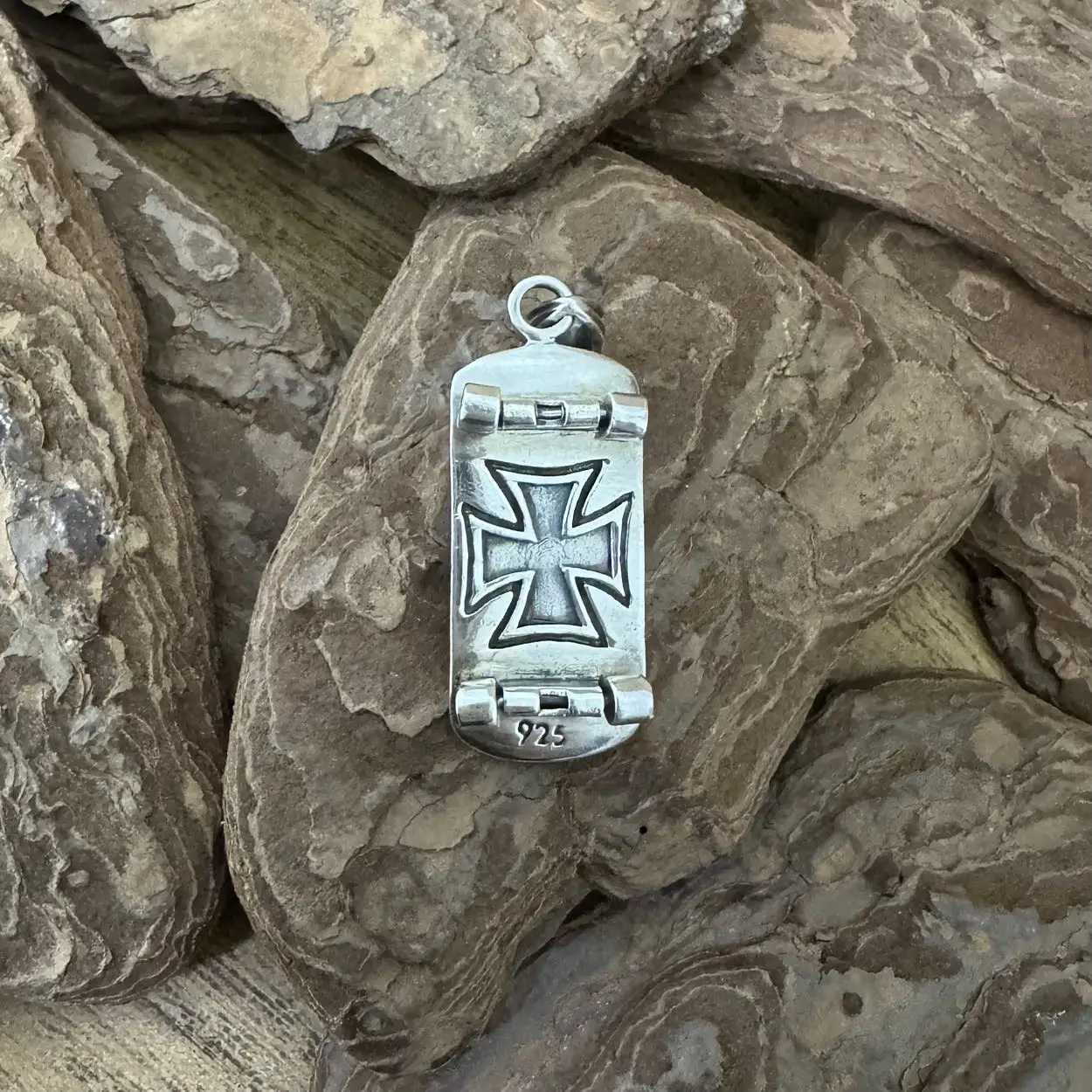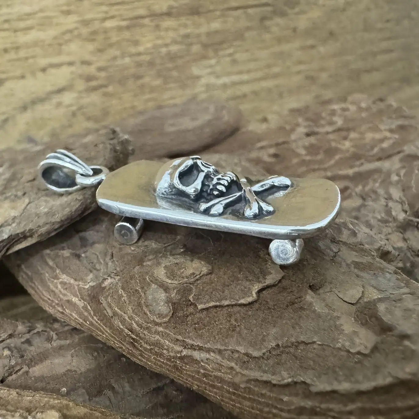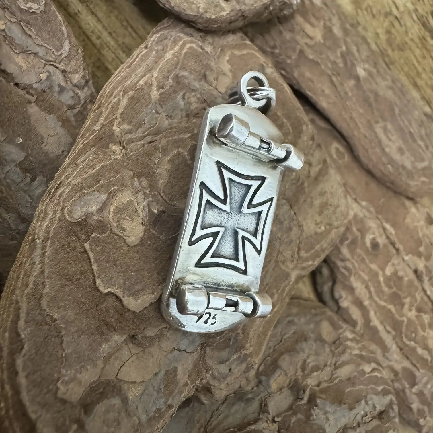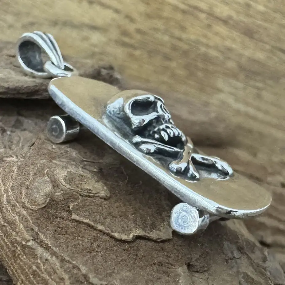 Pingente Caveira e Skate com cruz de Malta em Prata 925.