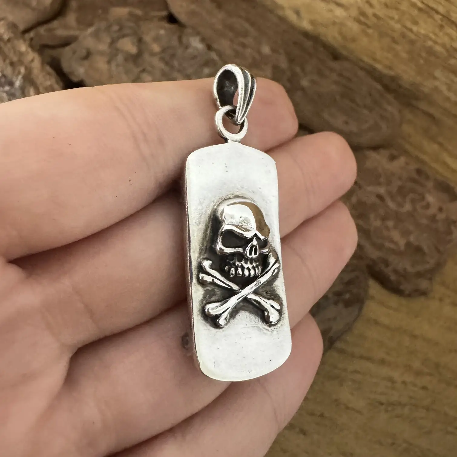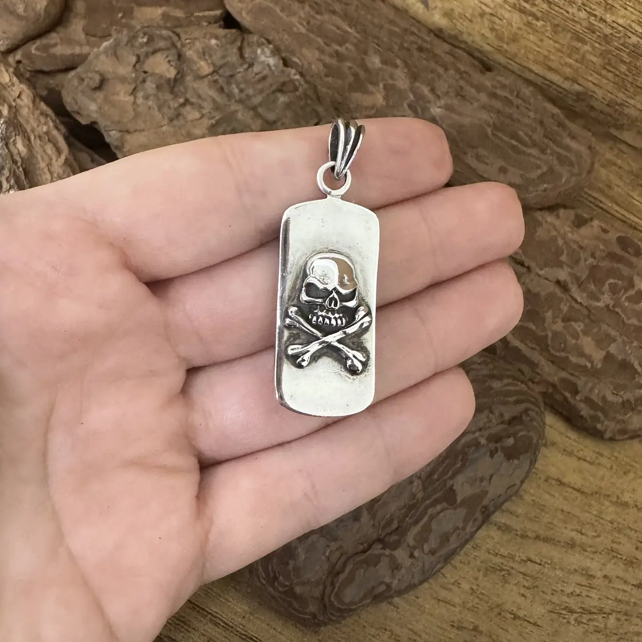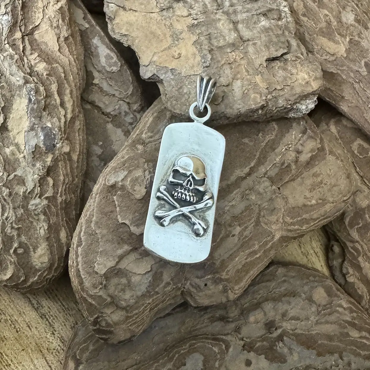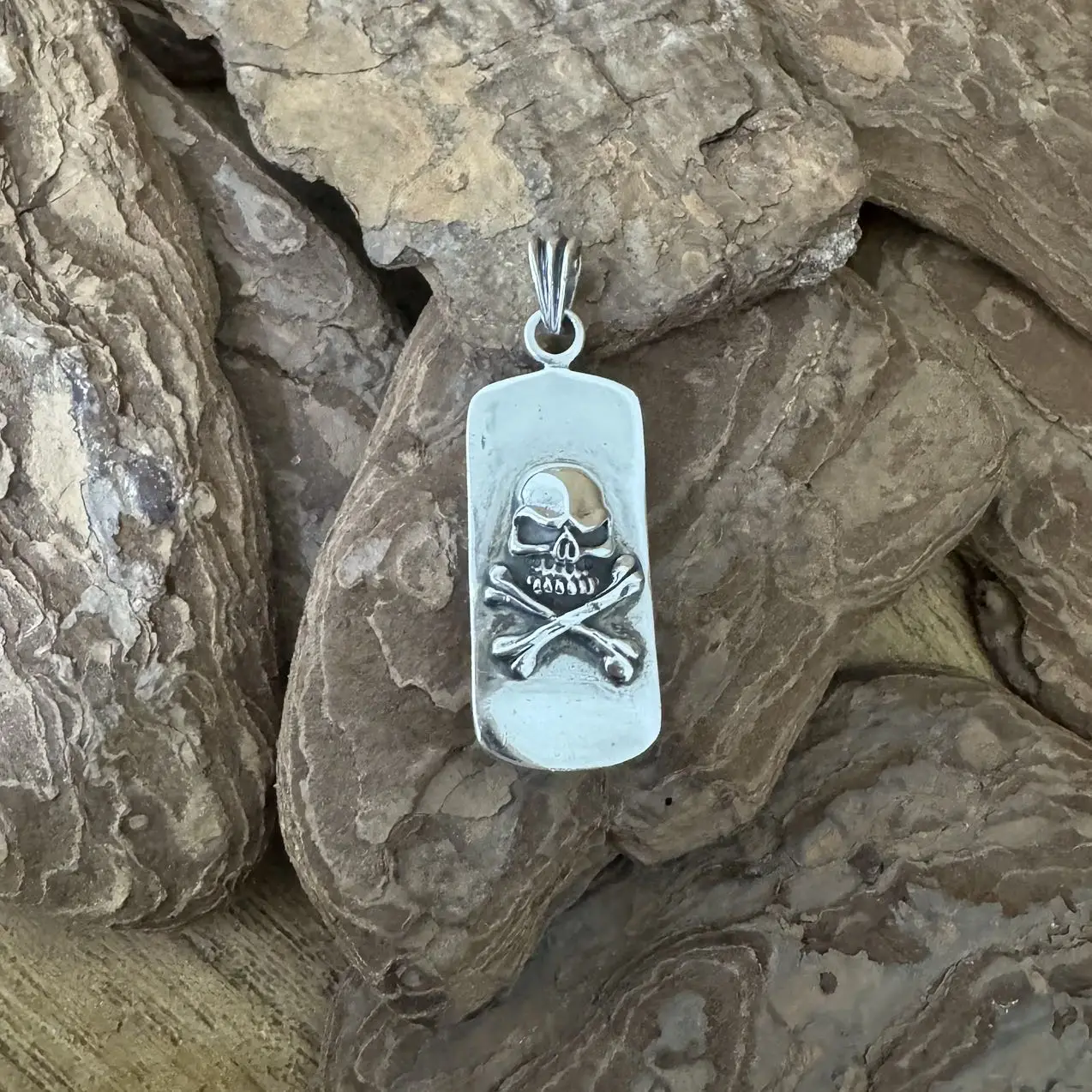 Pingente Caveira e Skate com cruz de Malta em Prata 925.