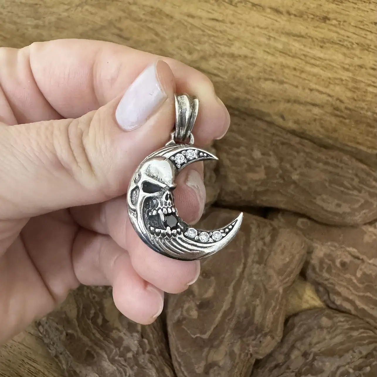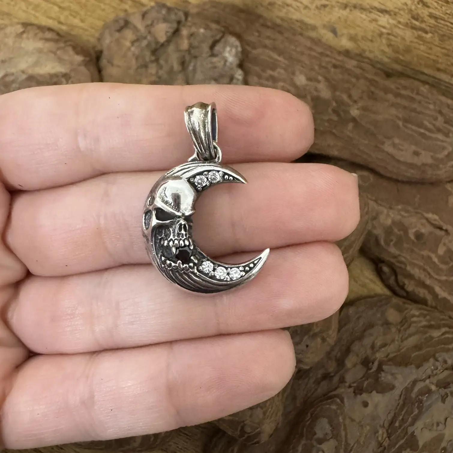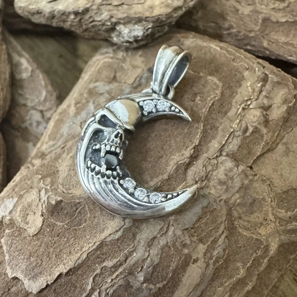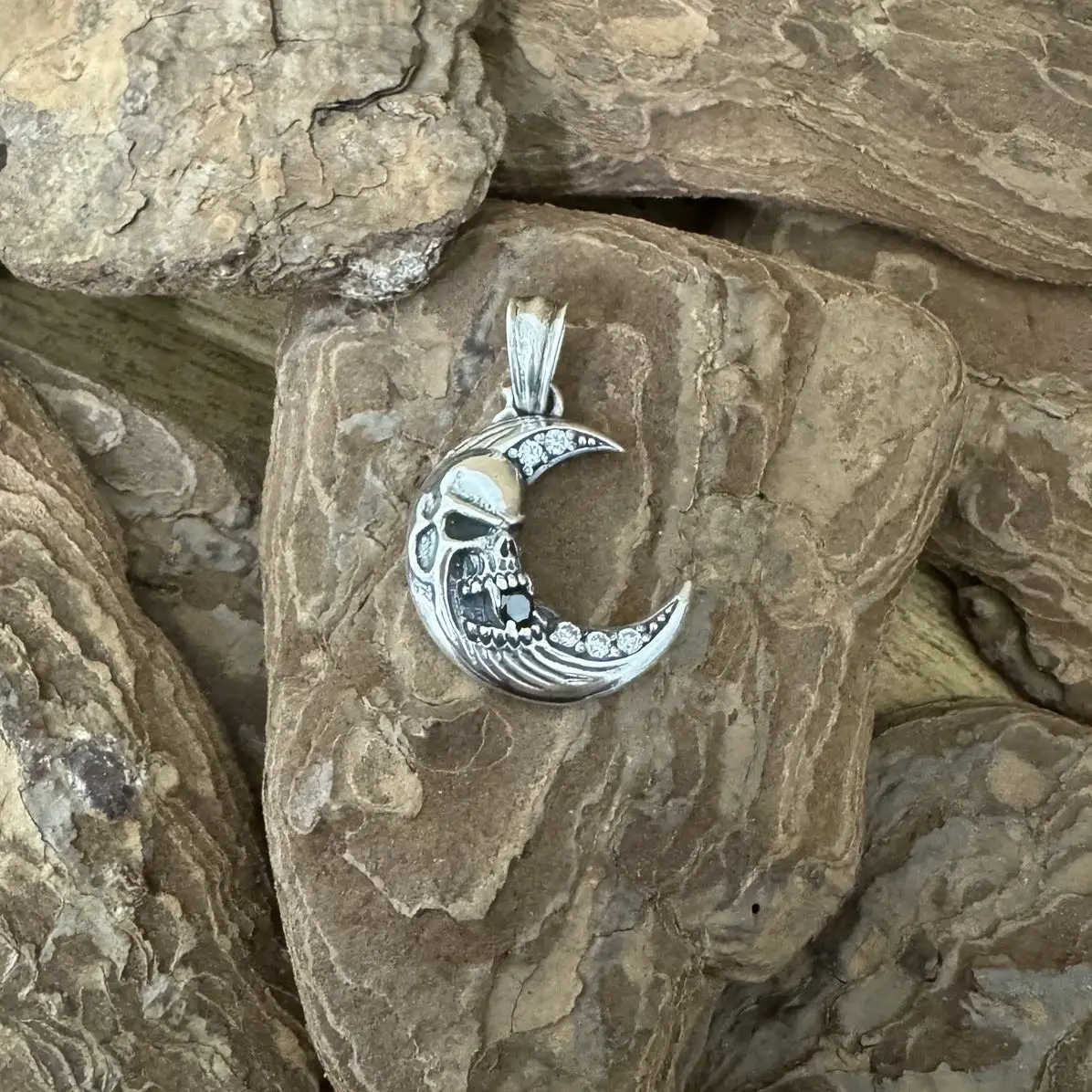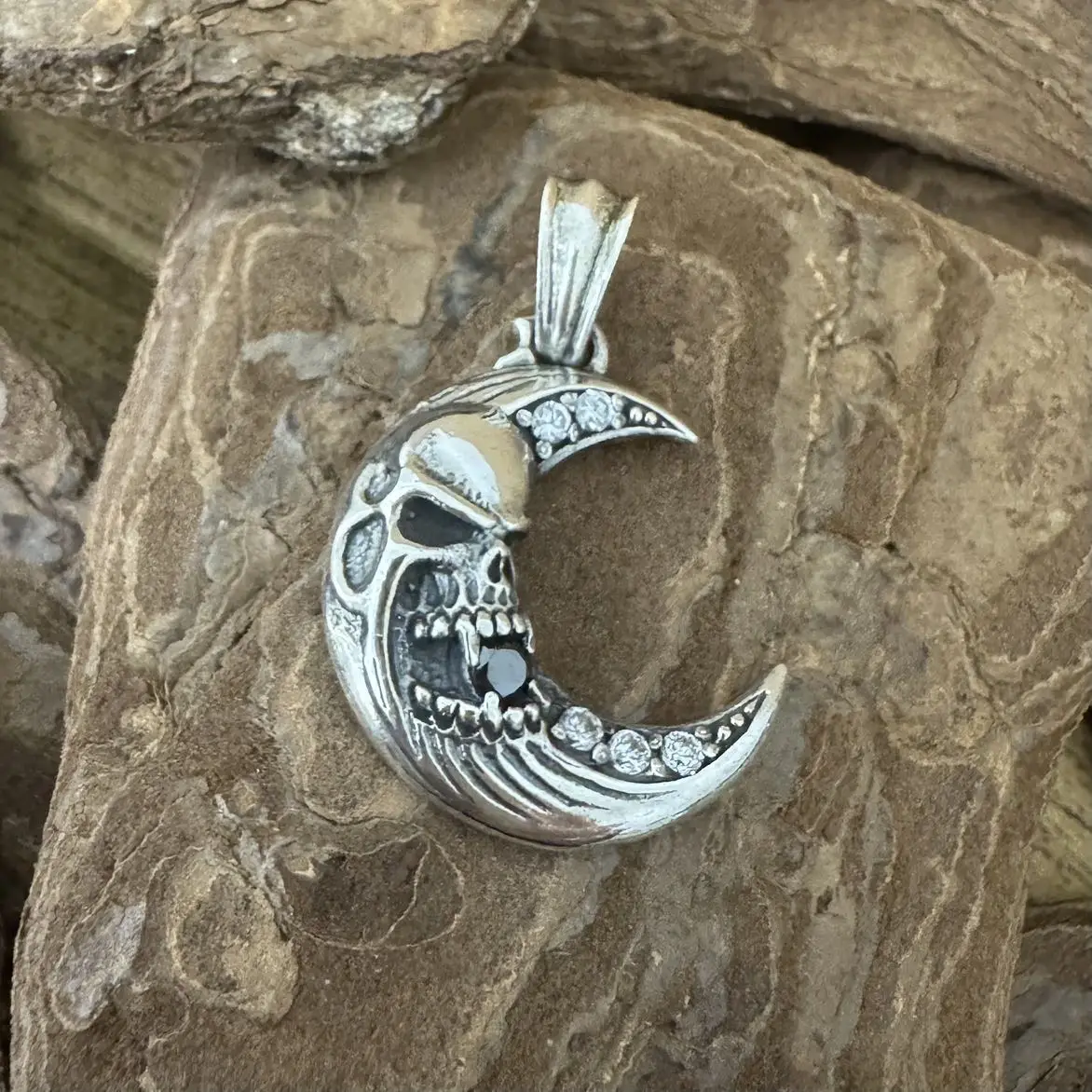 Pingente Lua com Caveira em Prata 925