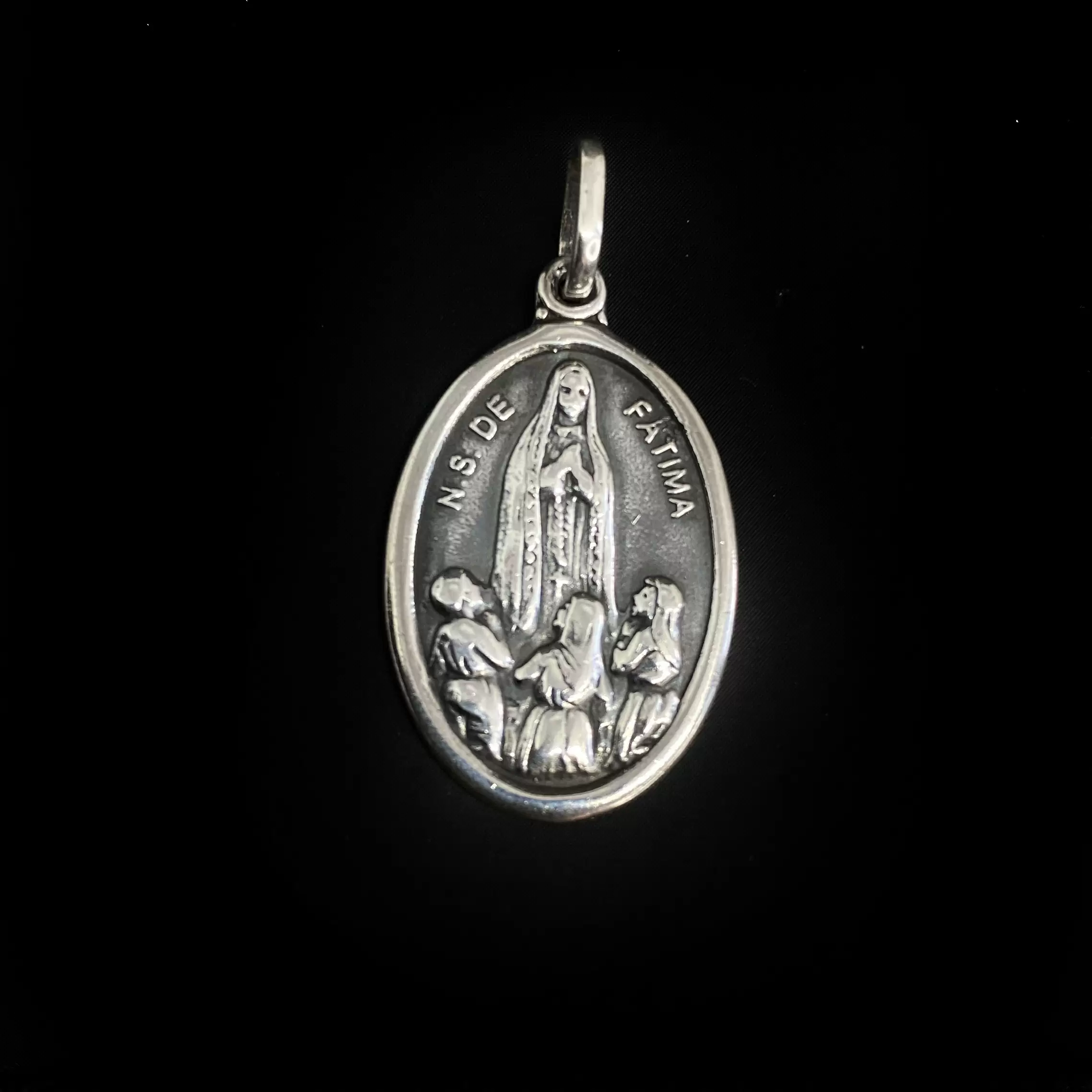 Início Feminino Pingente Santos Pingente Nossa Senhora de Fátima em Prata 925 Escurecida
