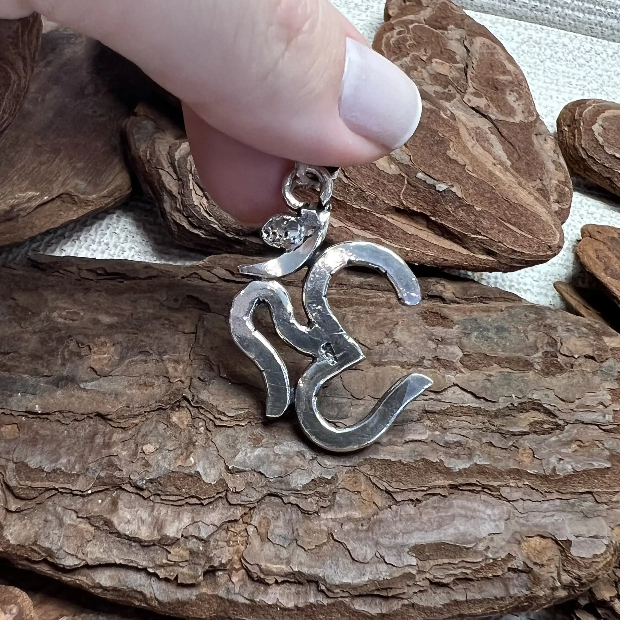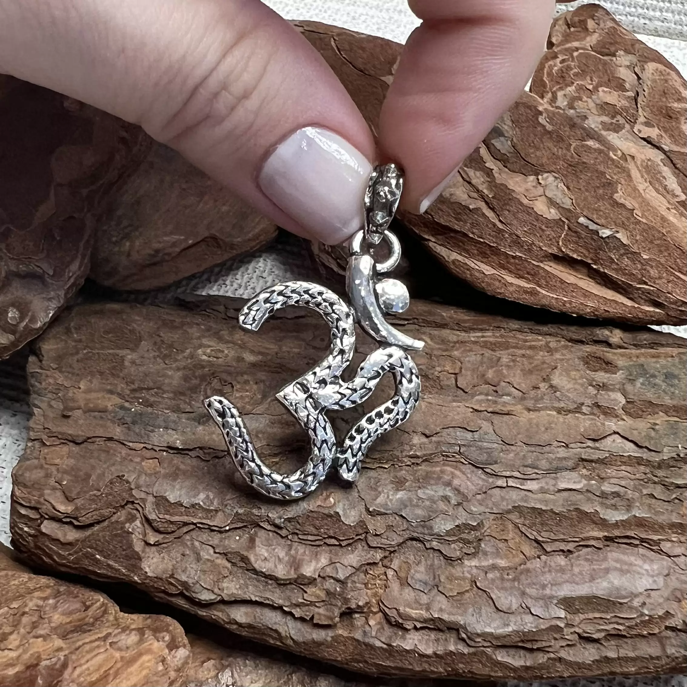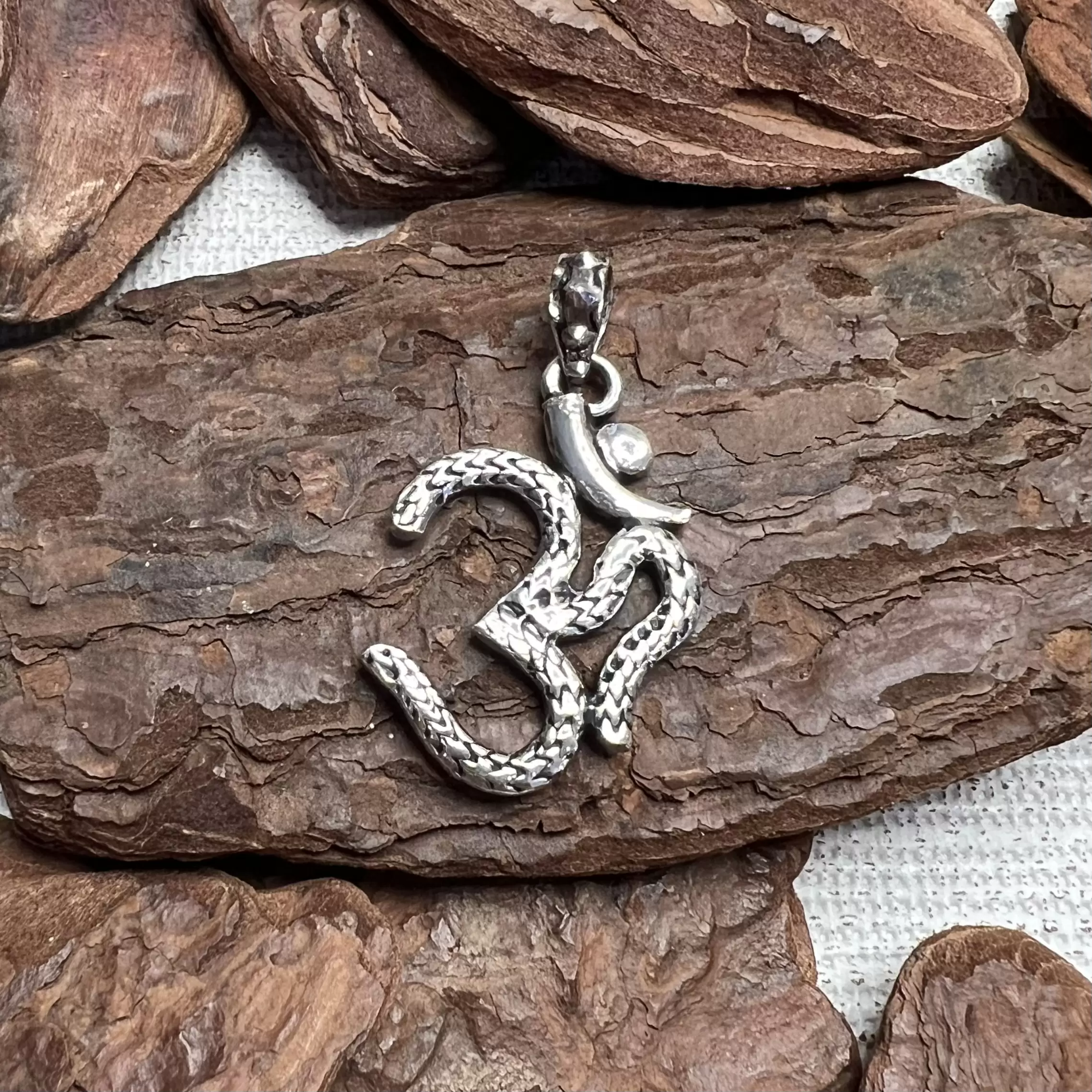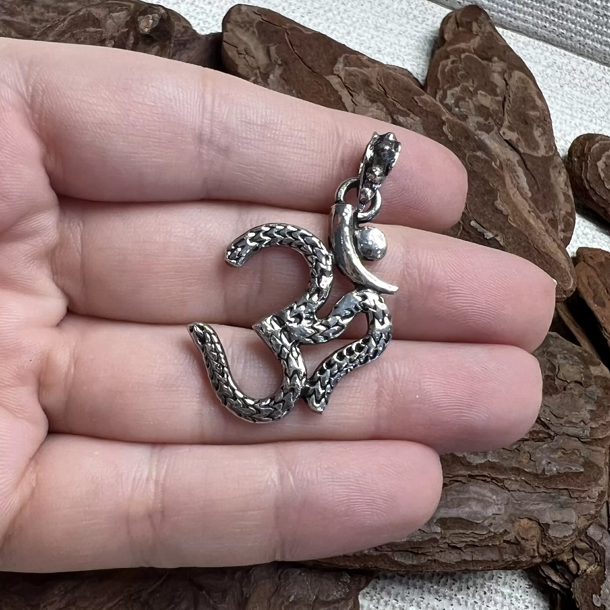 Pingente OM oxidado feito em Prata 925.