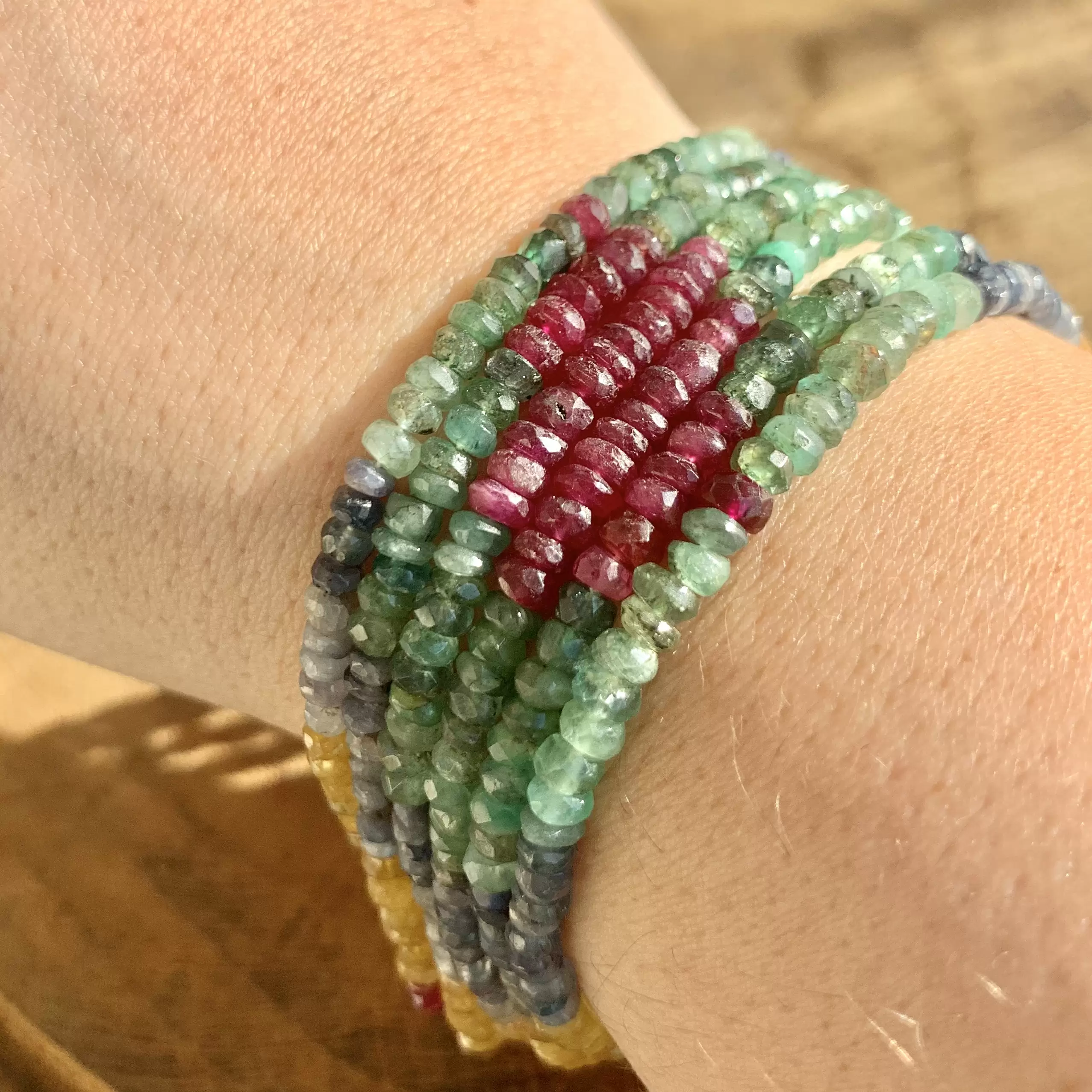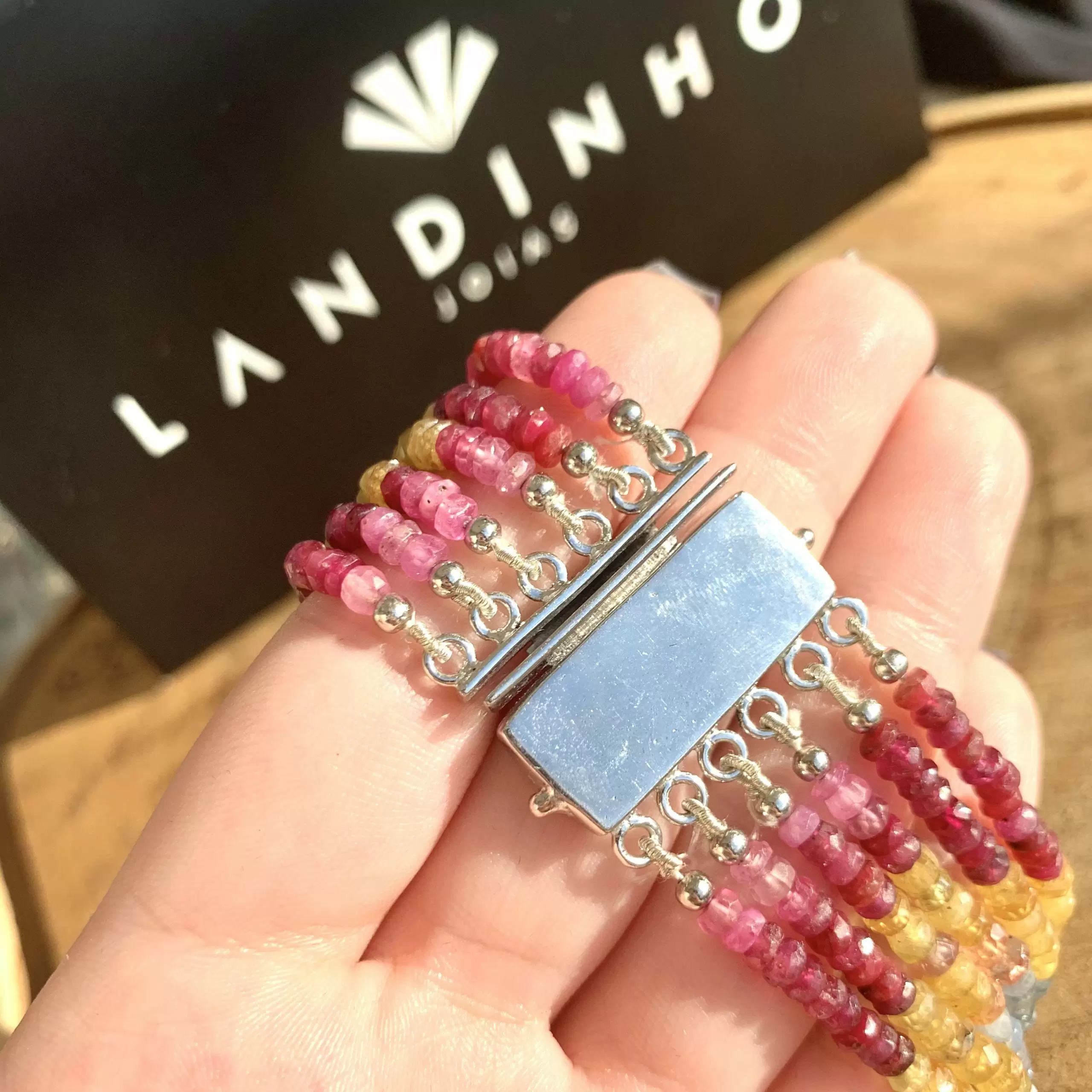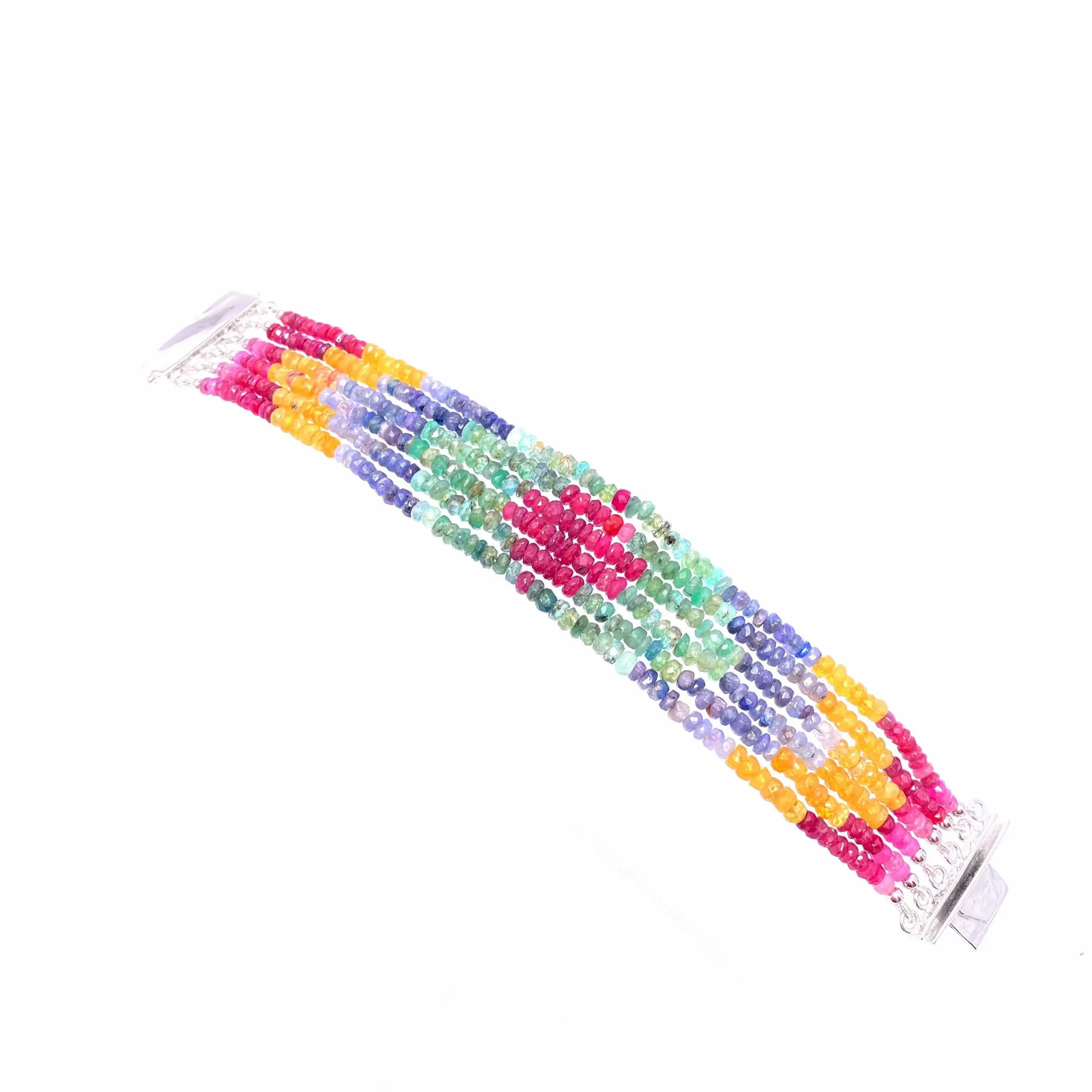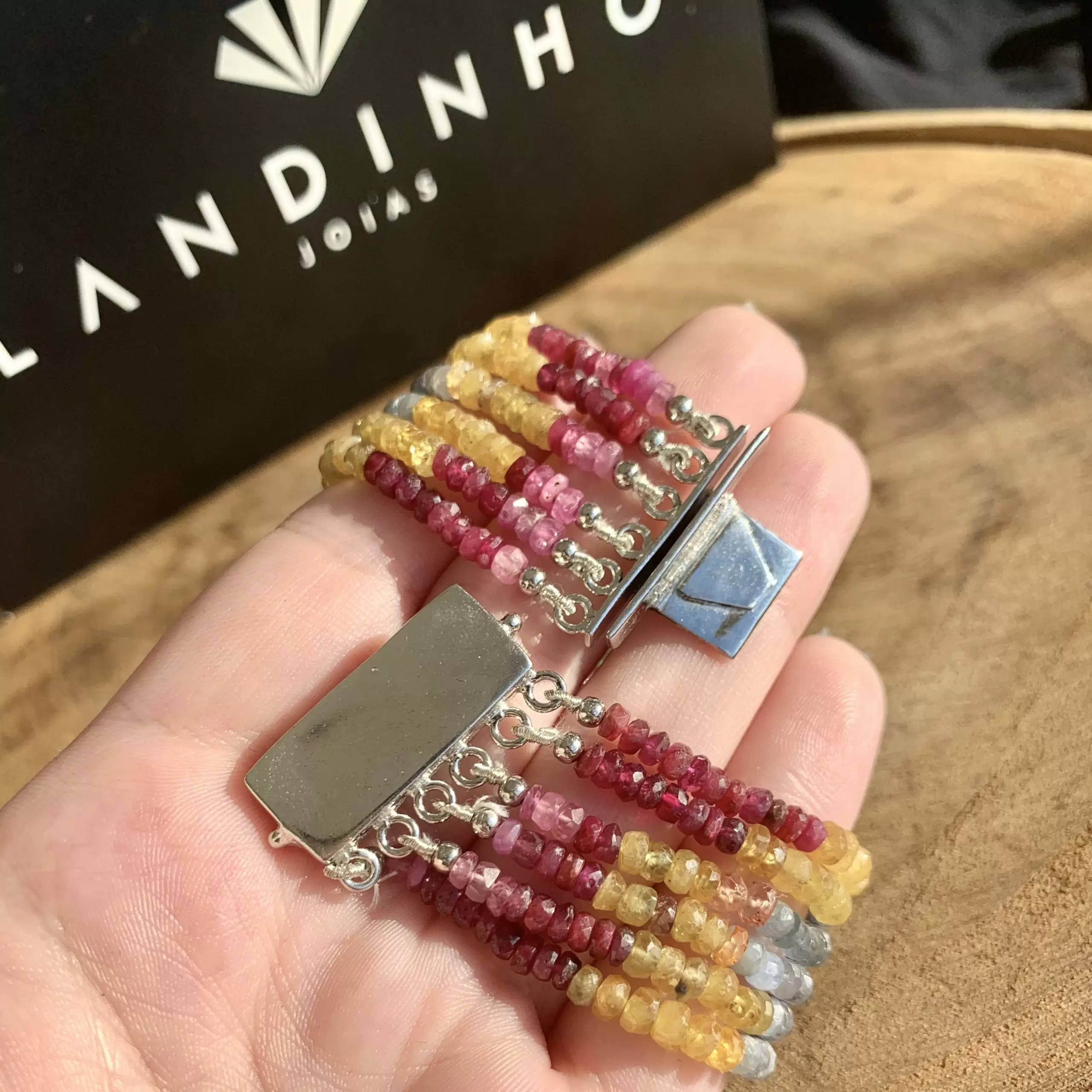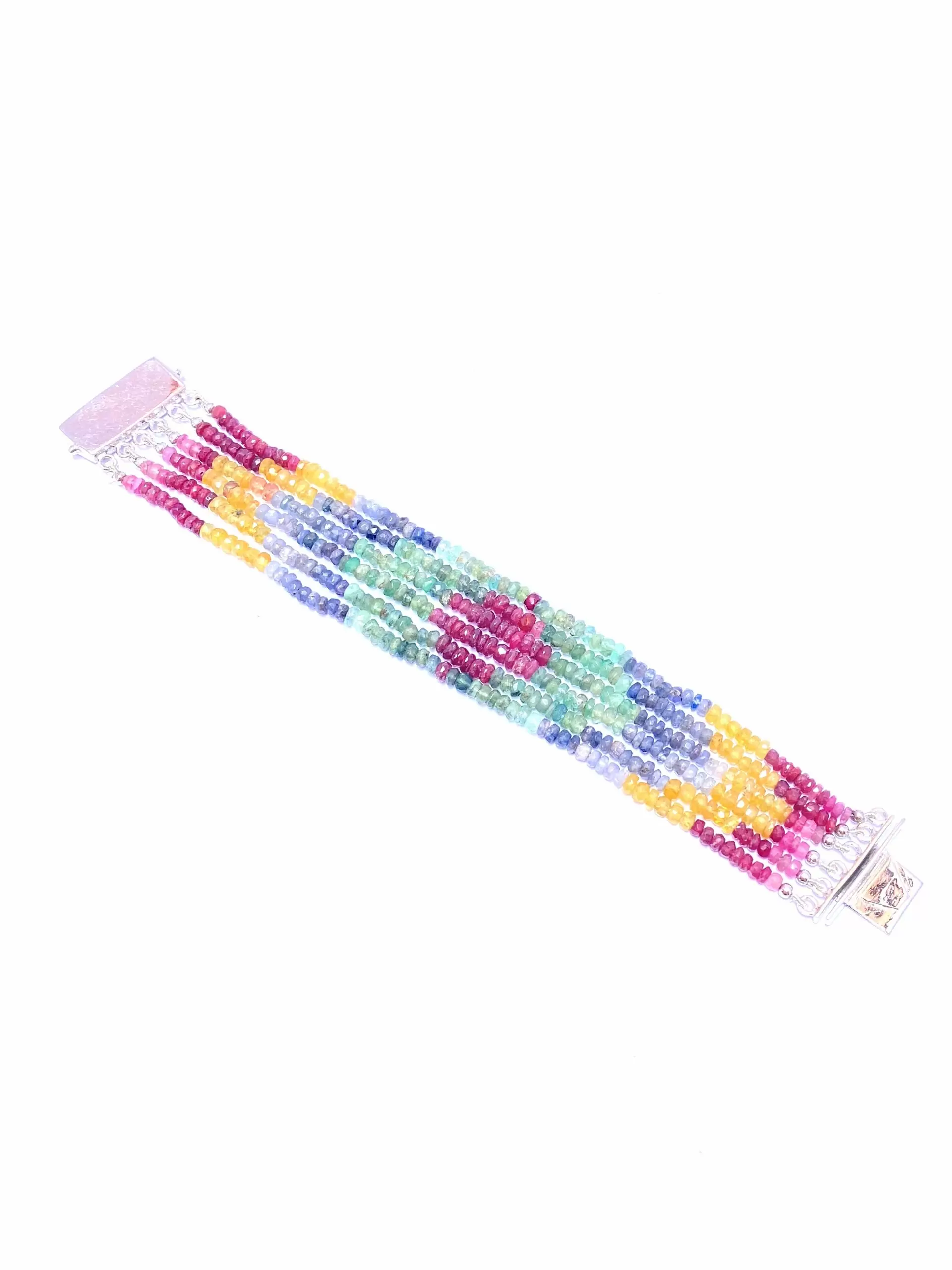 Pulseira 6 fios Multi-pedras com Fecho em Prata