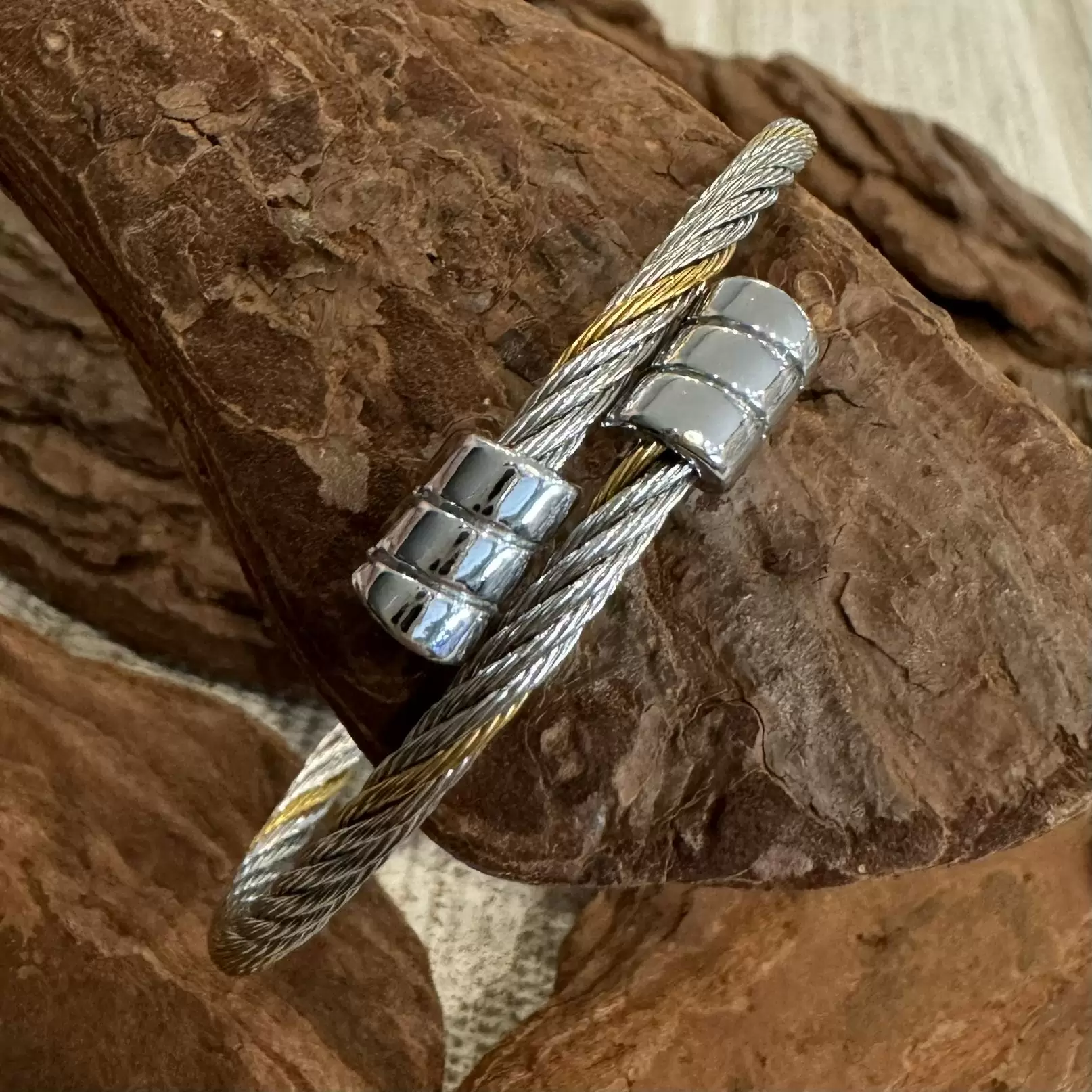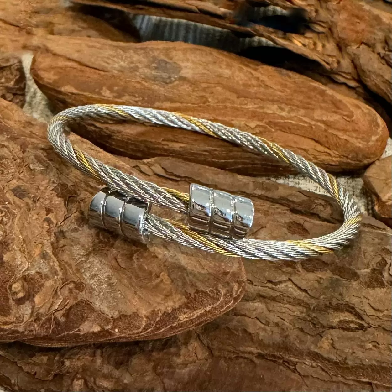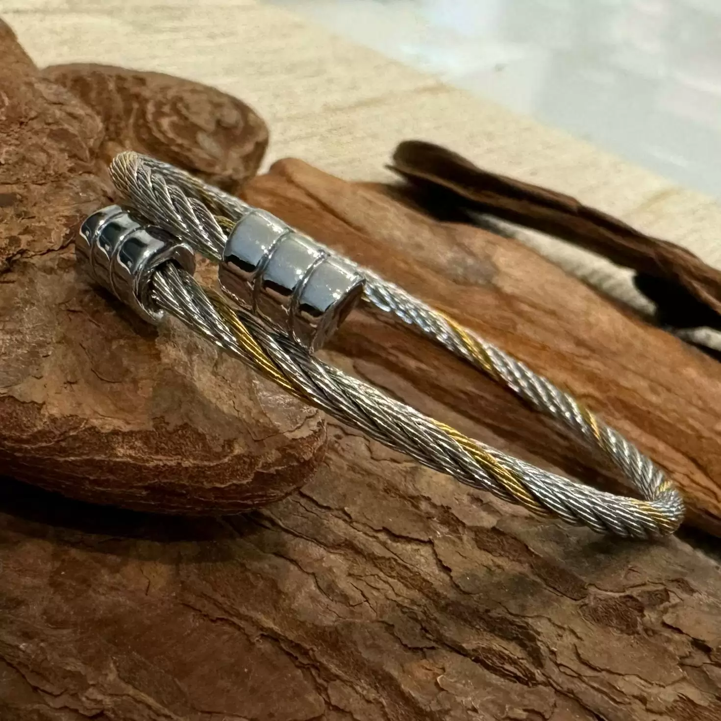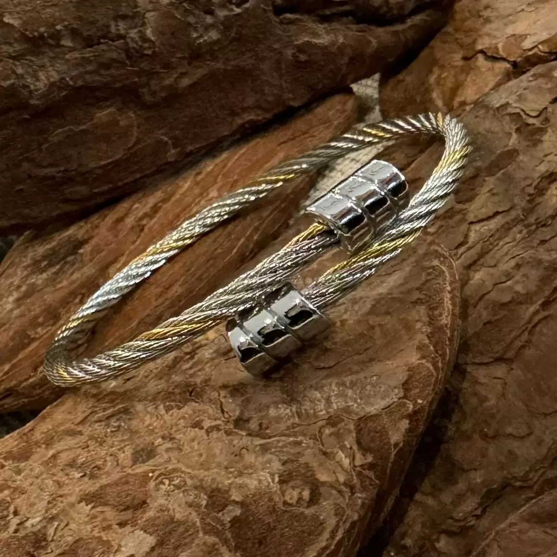 Pulseira Cabo Náutico Prateada e Dourada em Aço.