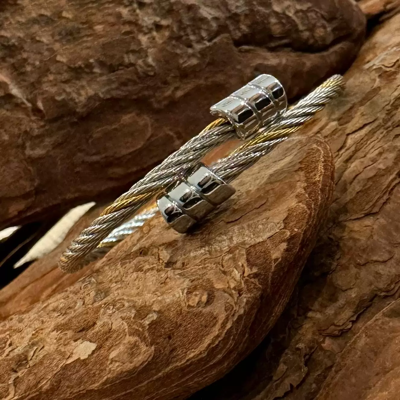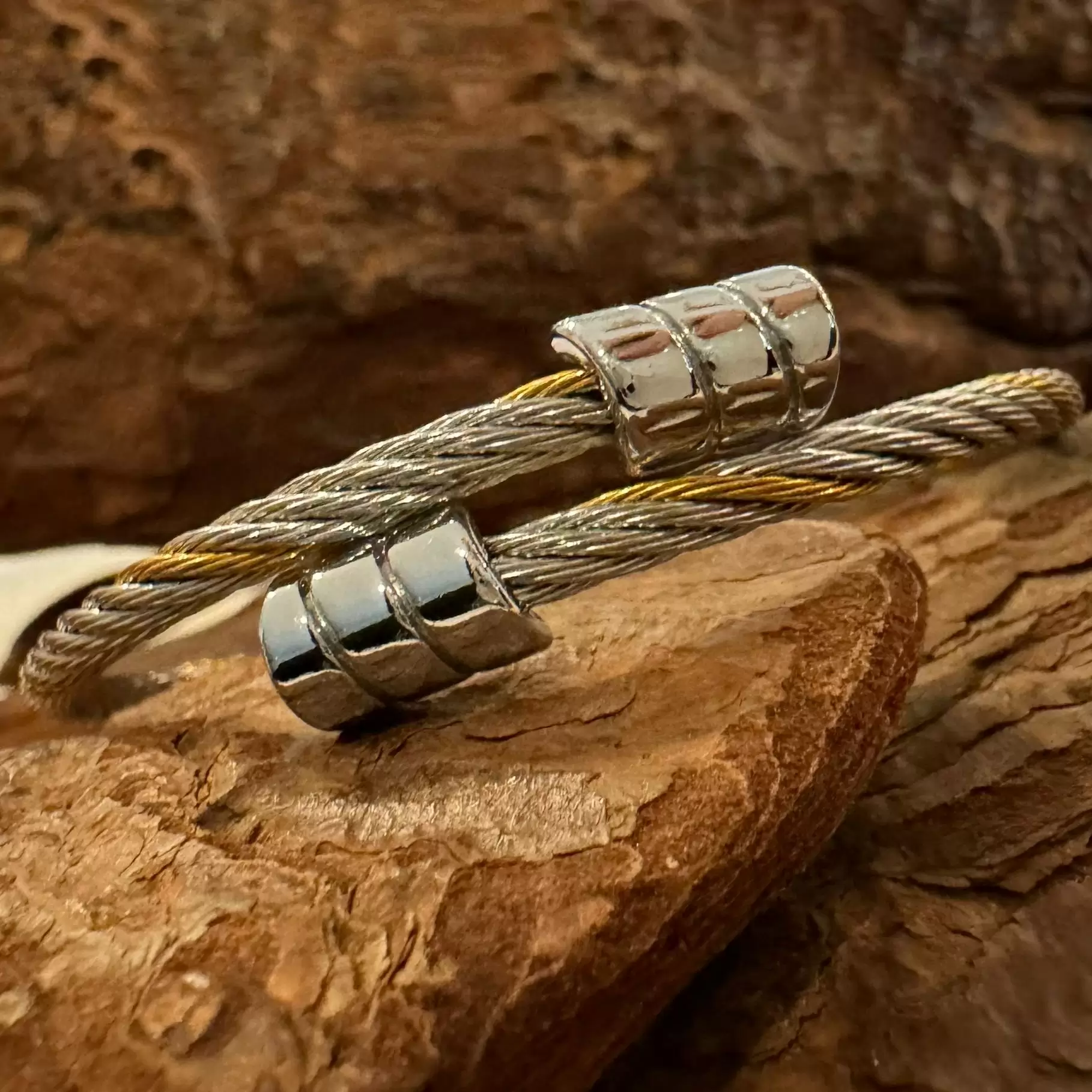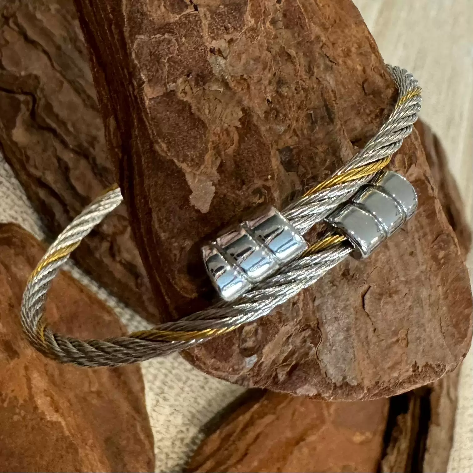 Pulseira Cabo Náutico Prateada e Dourada em Aço.