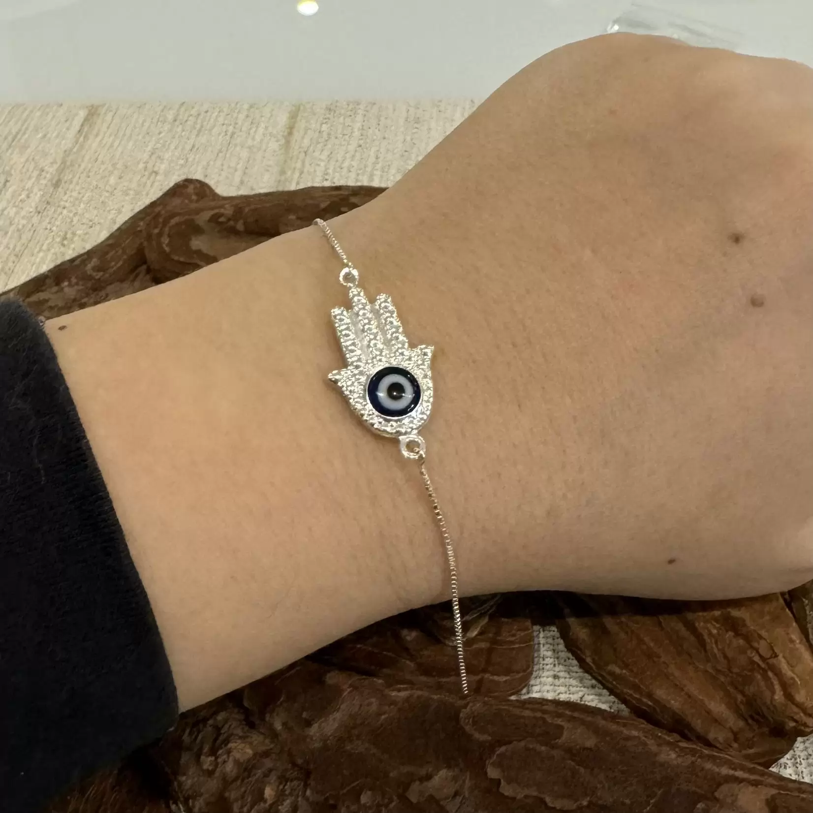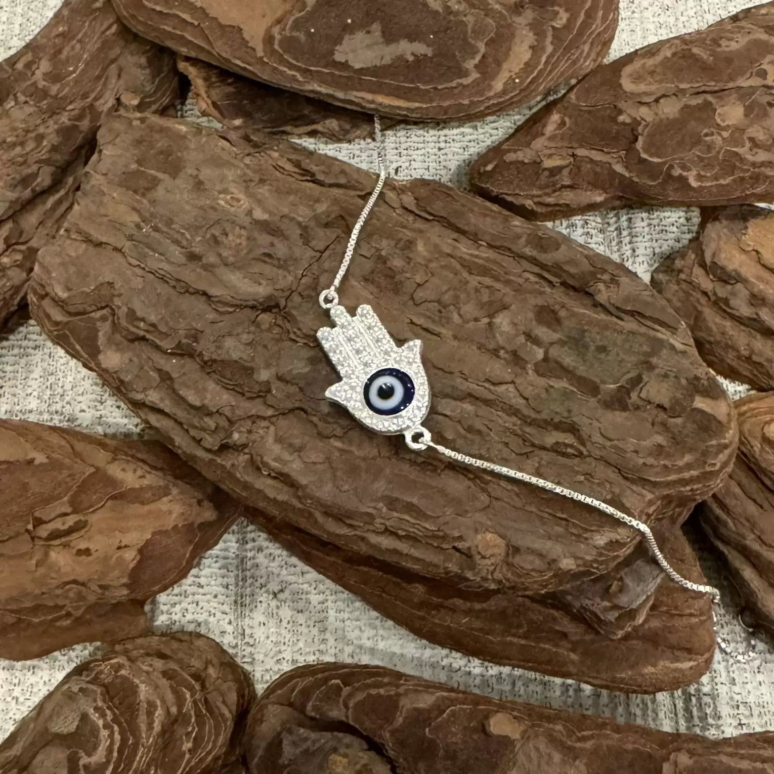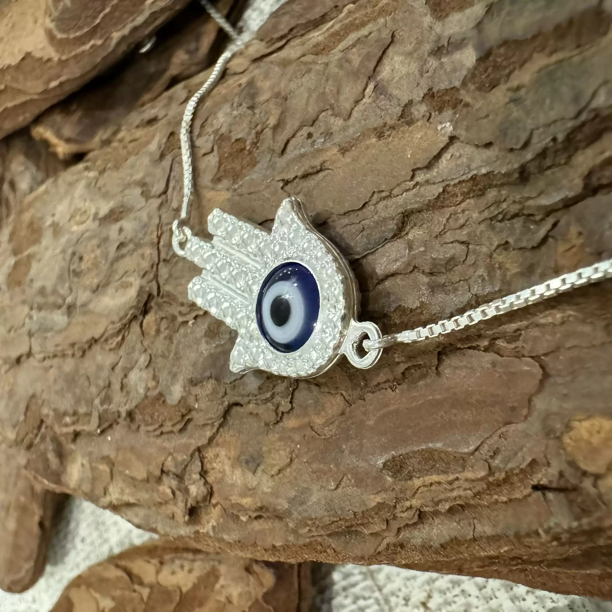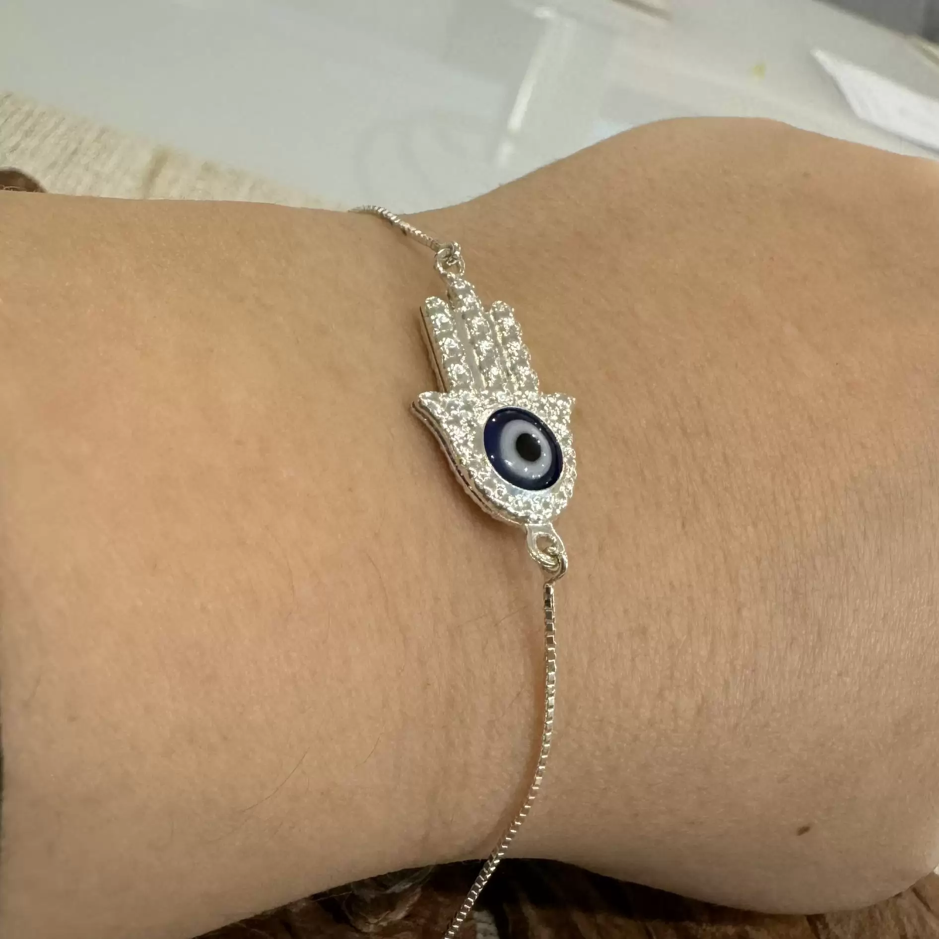 Pulseira Canelada Hamsa com Olho Grego em Prata 925.