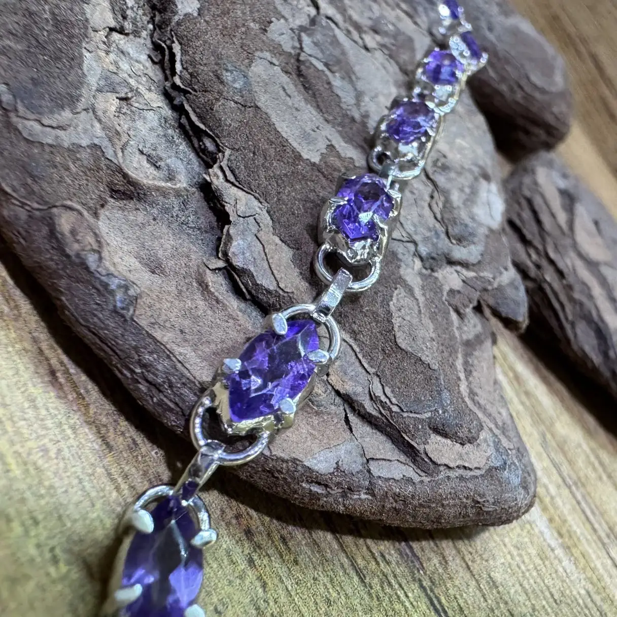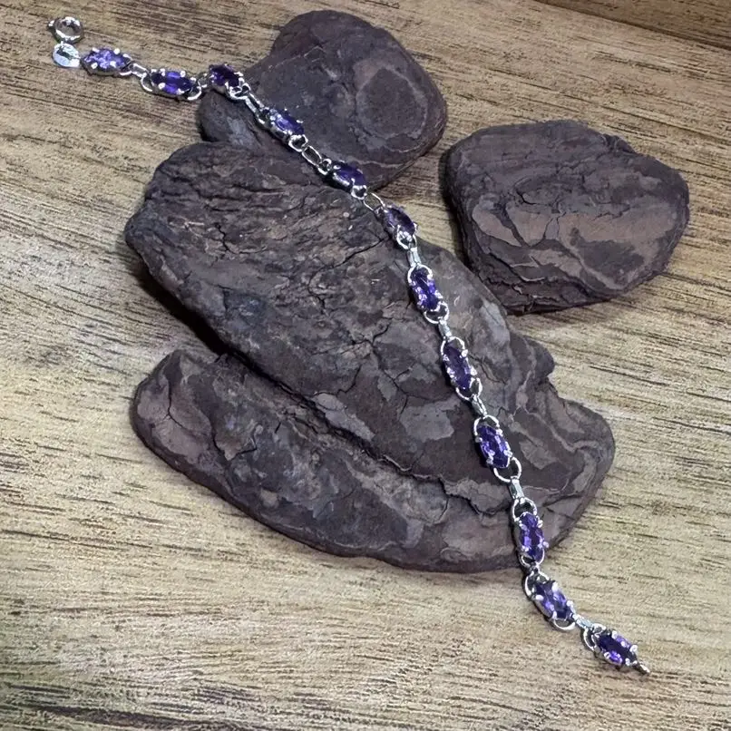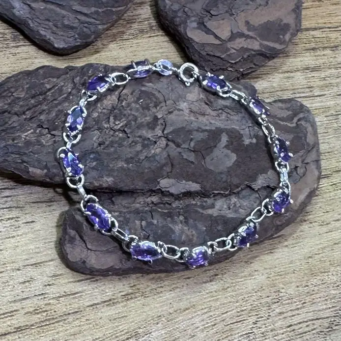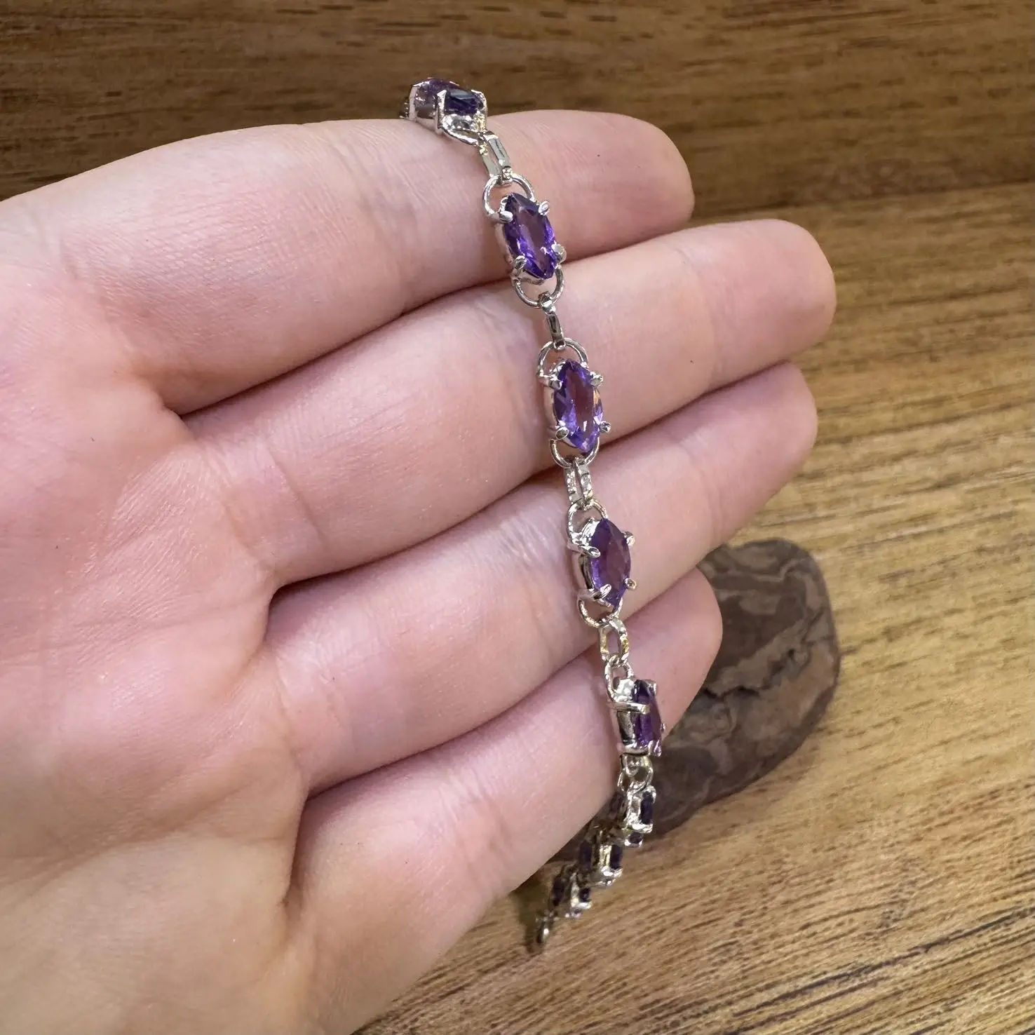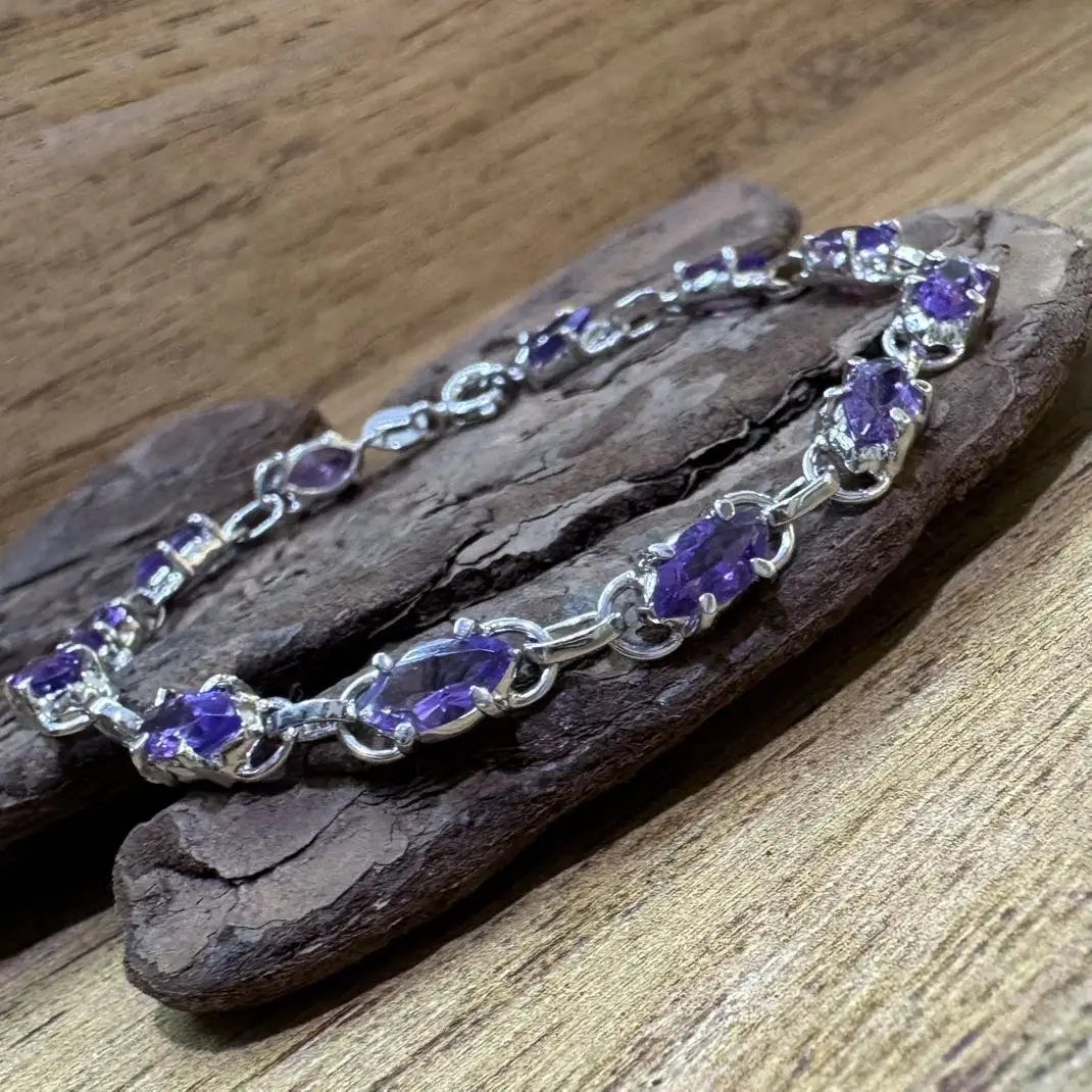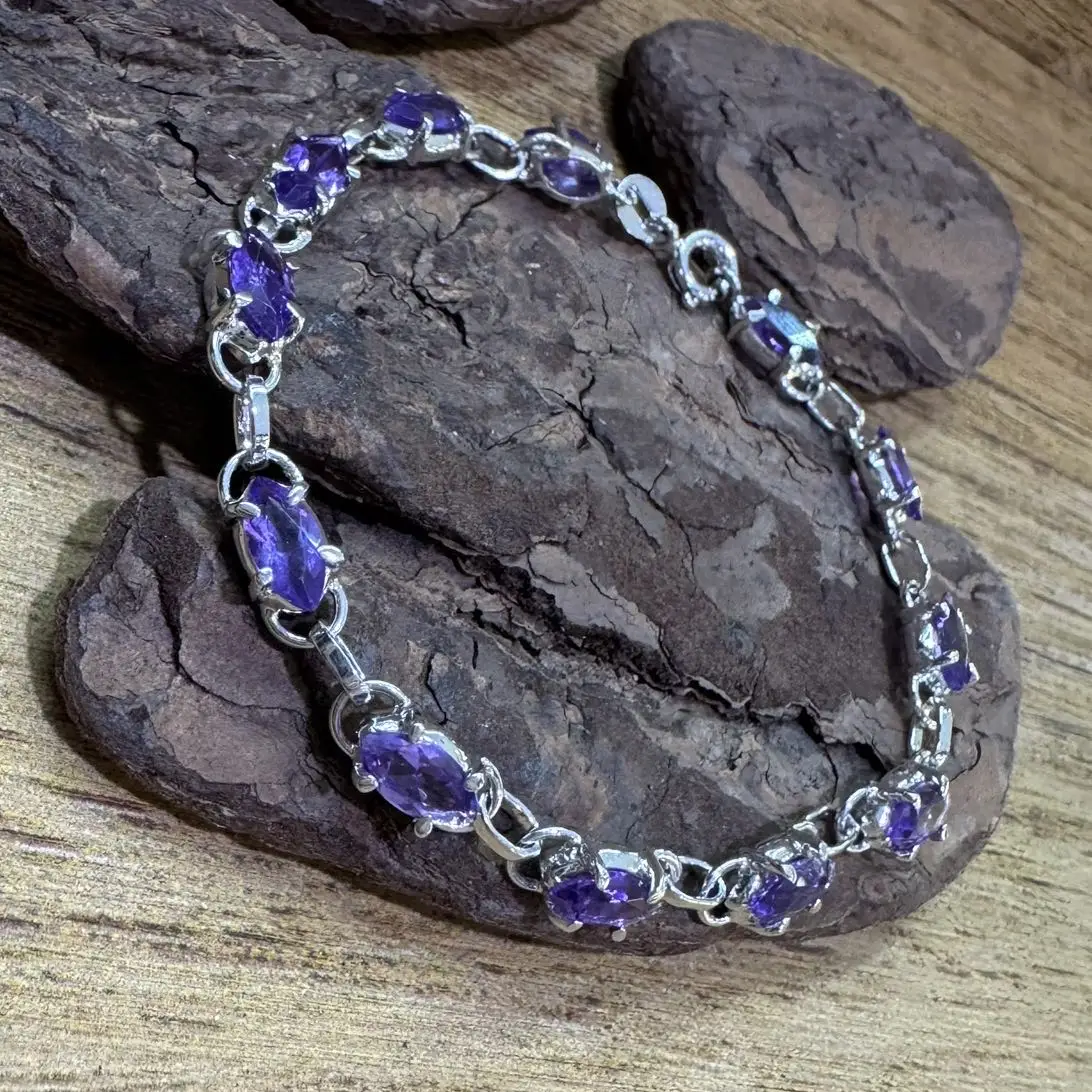 Pulseira com Ametistas Naturais em Prata 925 e Ródio.