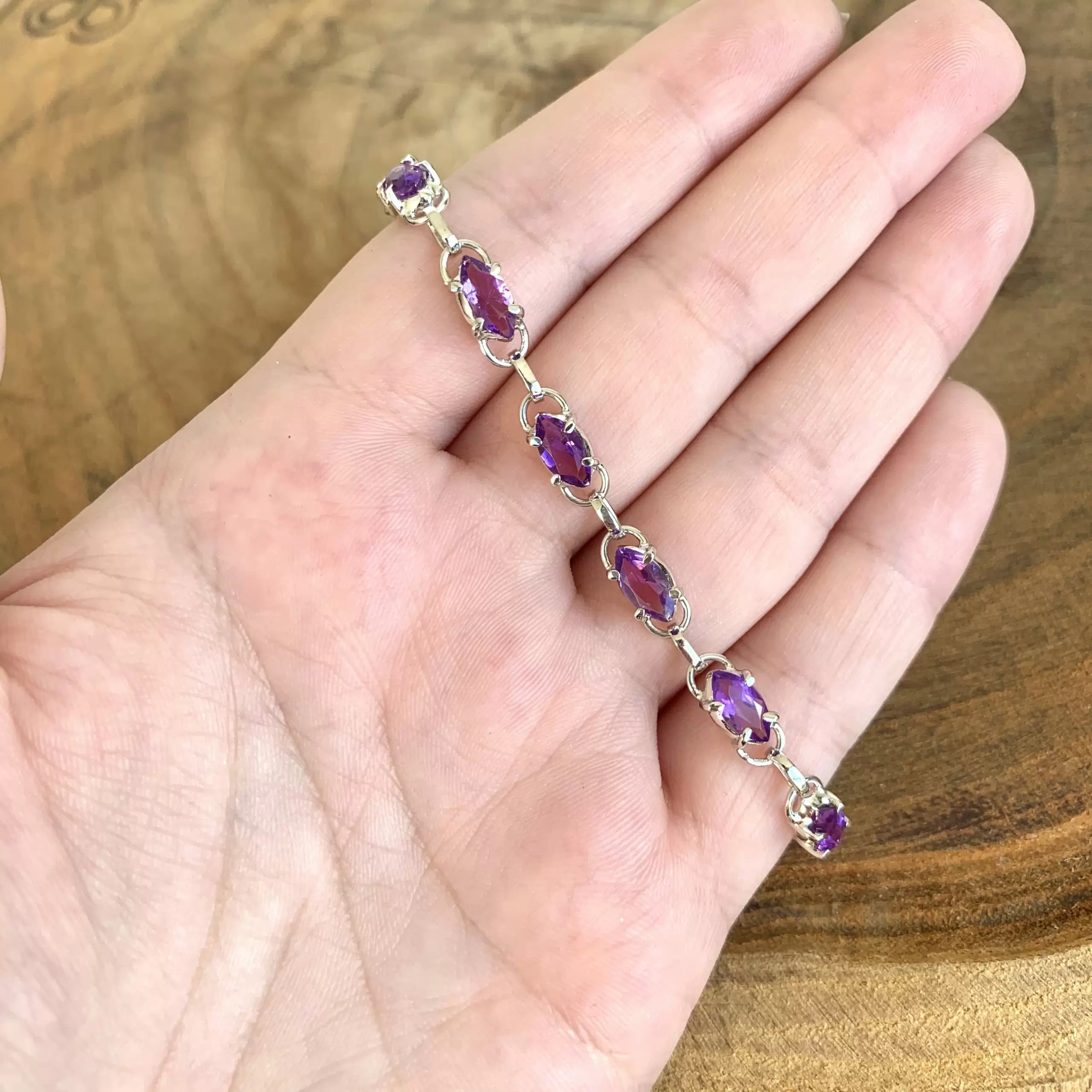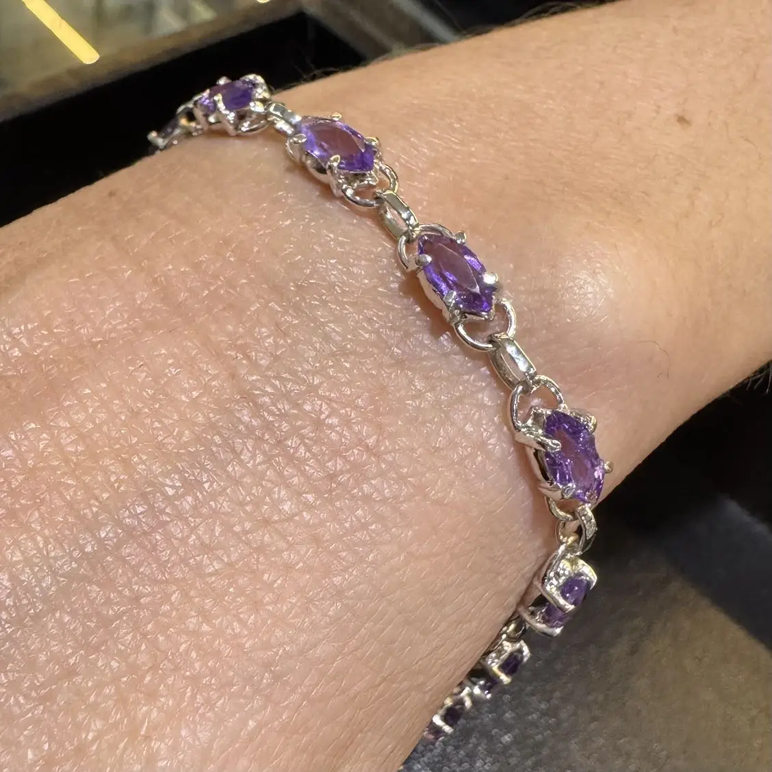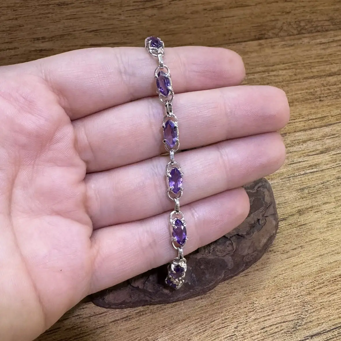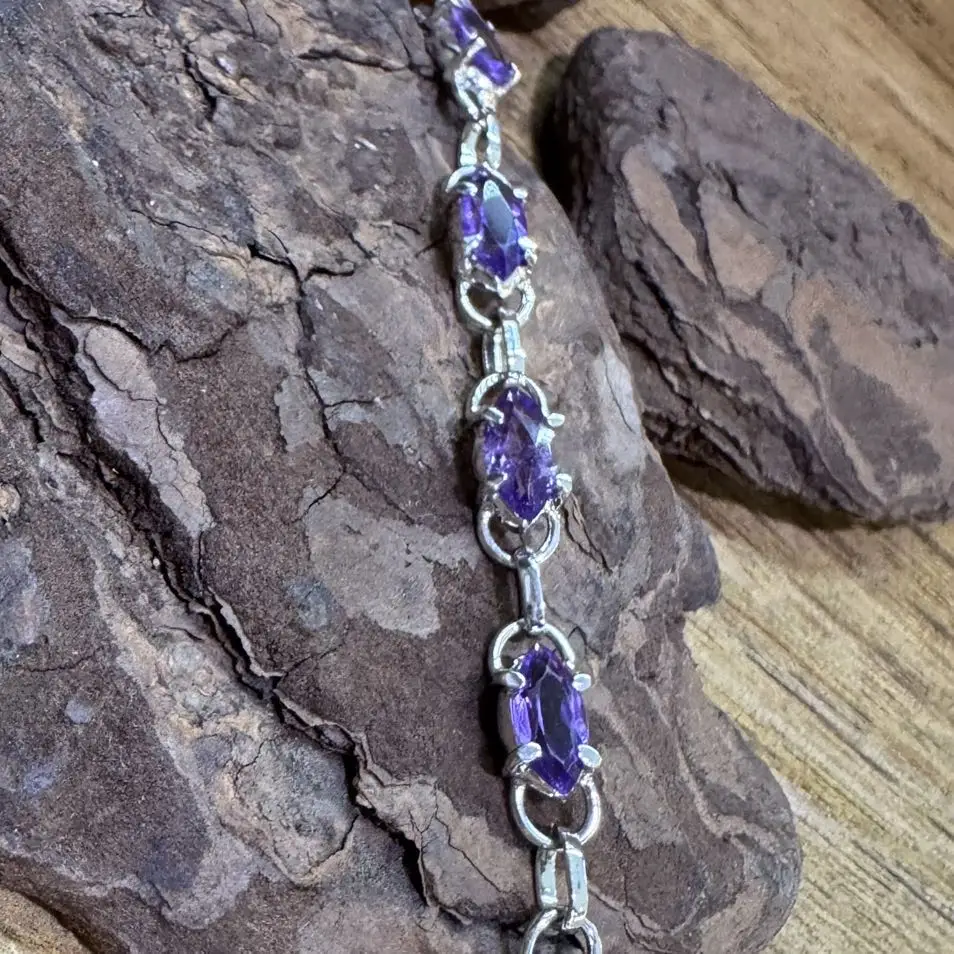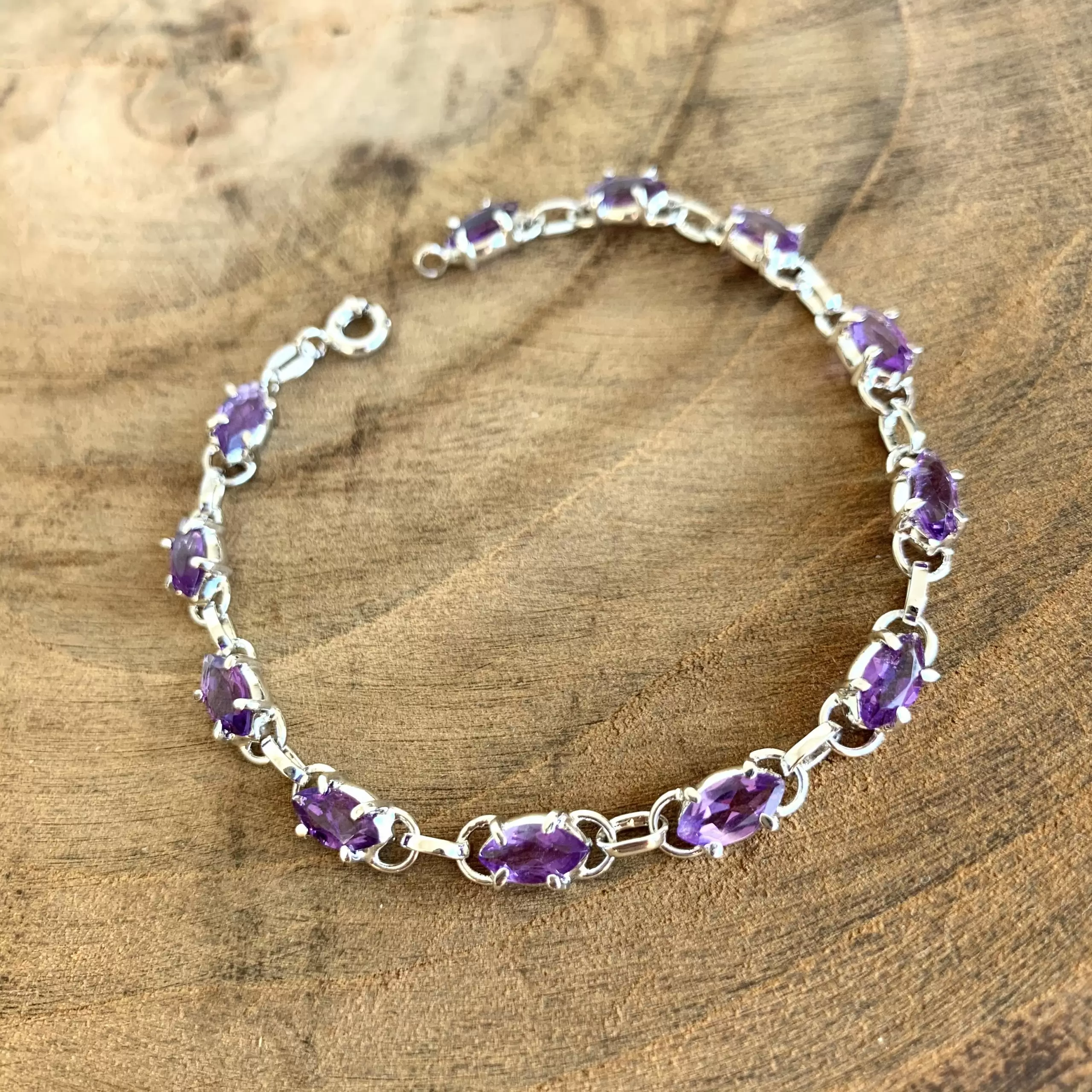Pulseira com Ametistas Naturais em Prata 925 e Ródio.