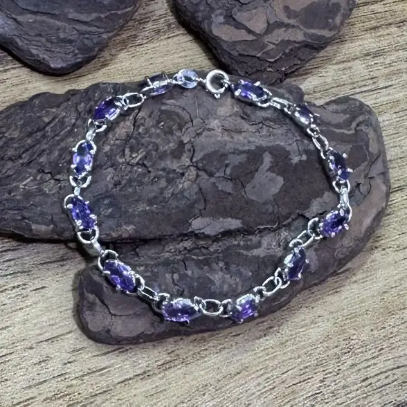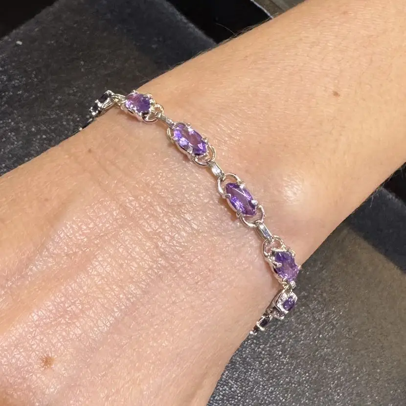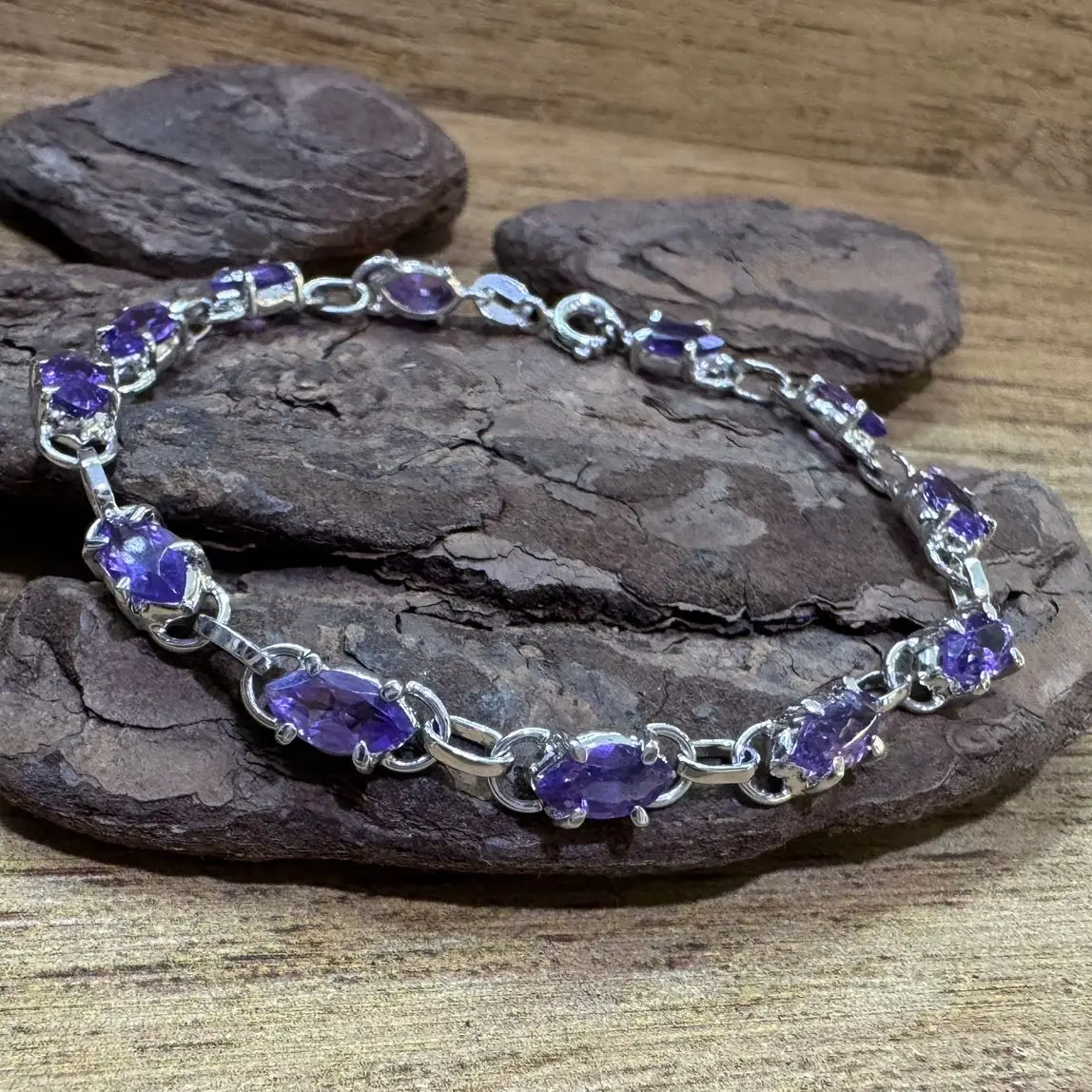 Pulseira com Ametistas Naturais em Prata 925 e Ródio