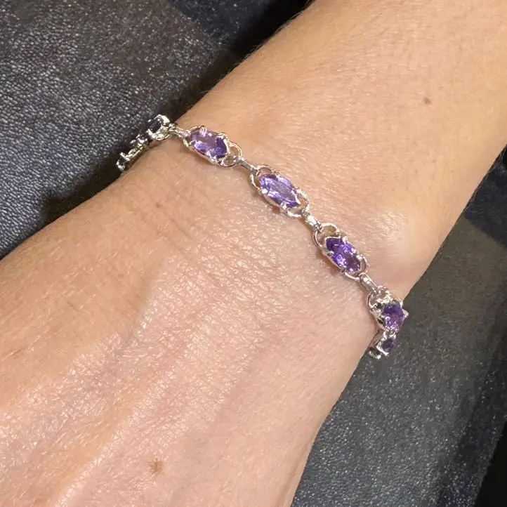Início Feminino Pulseira Pedras Pulseira com Ametistas Naturais em Prata 925 e Ródio