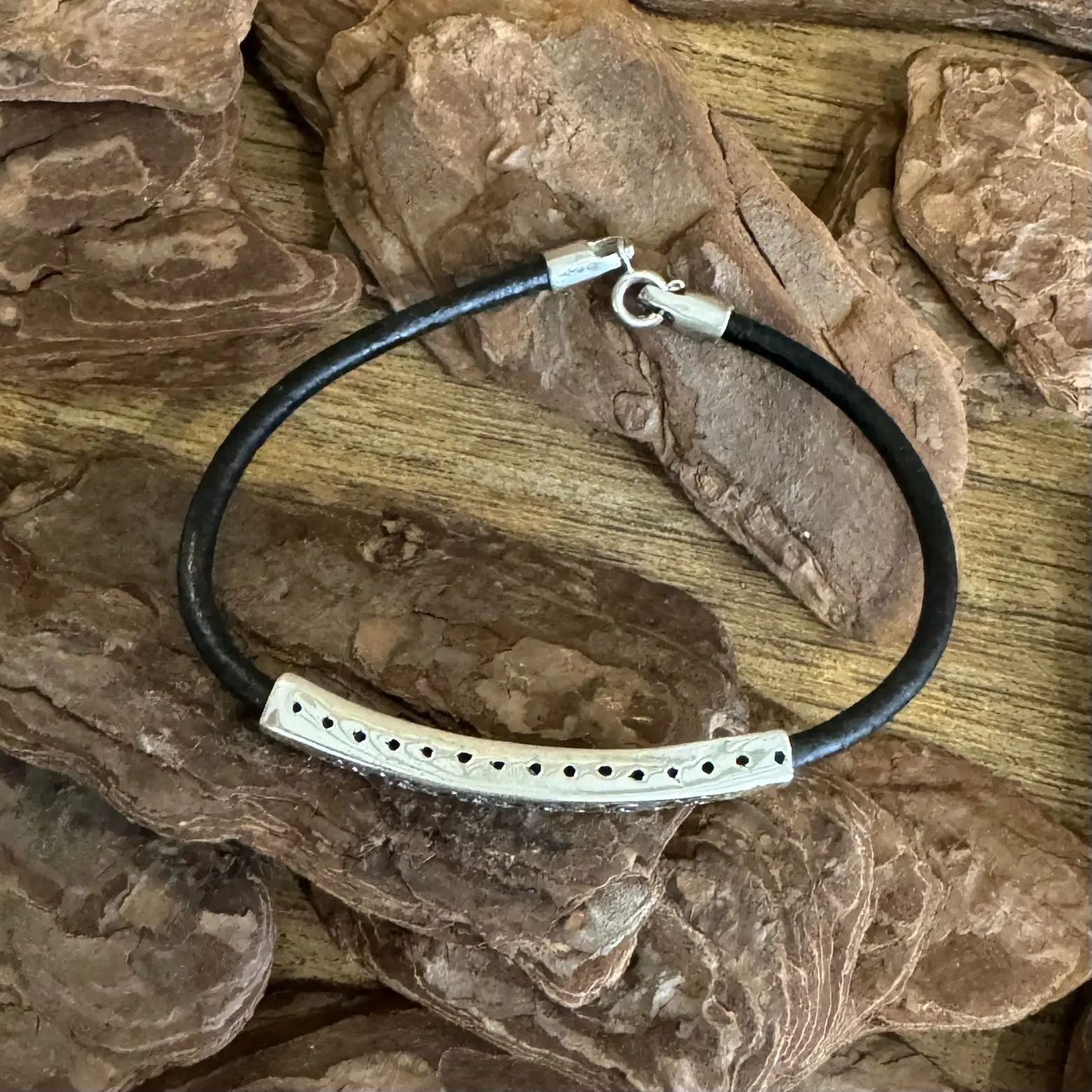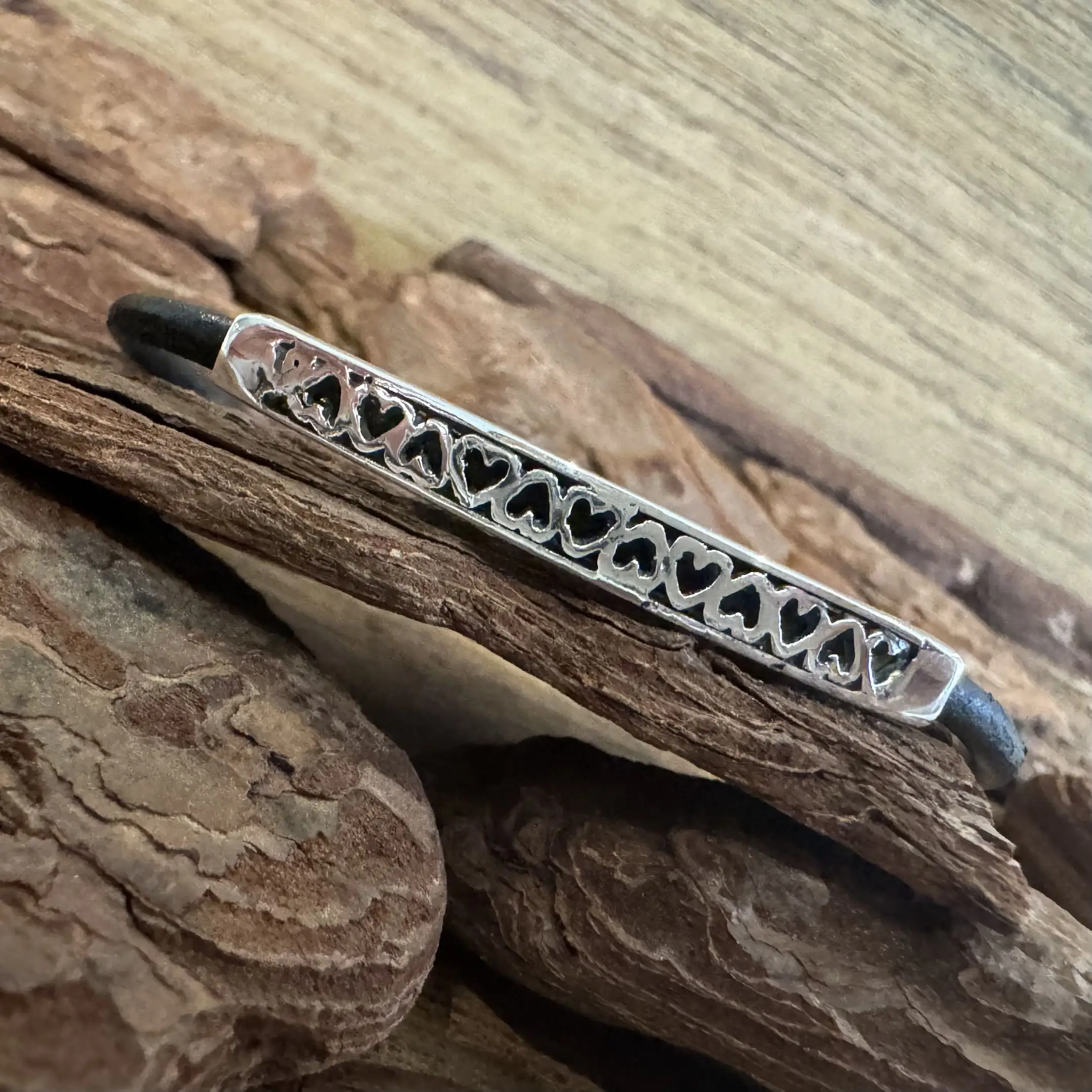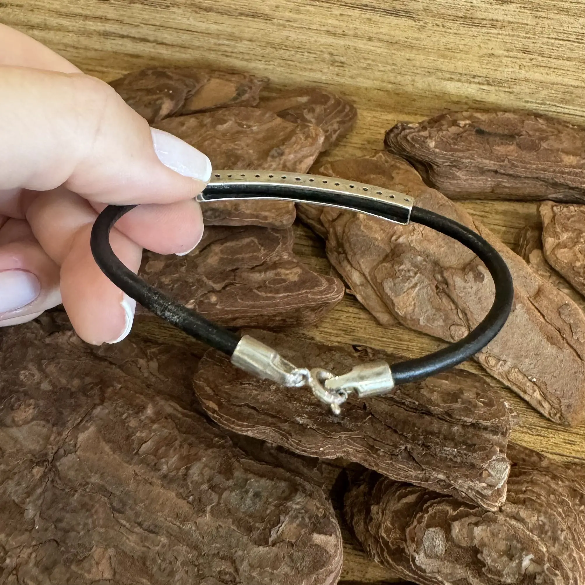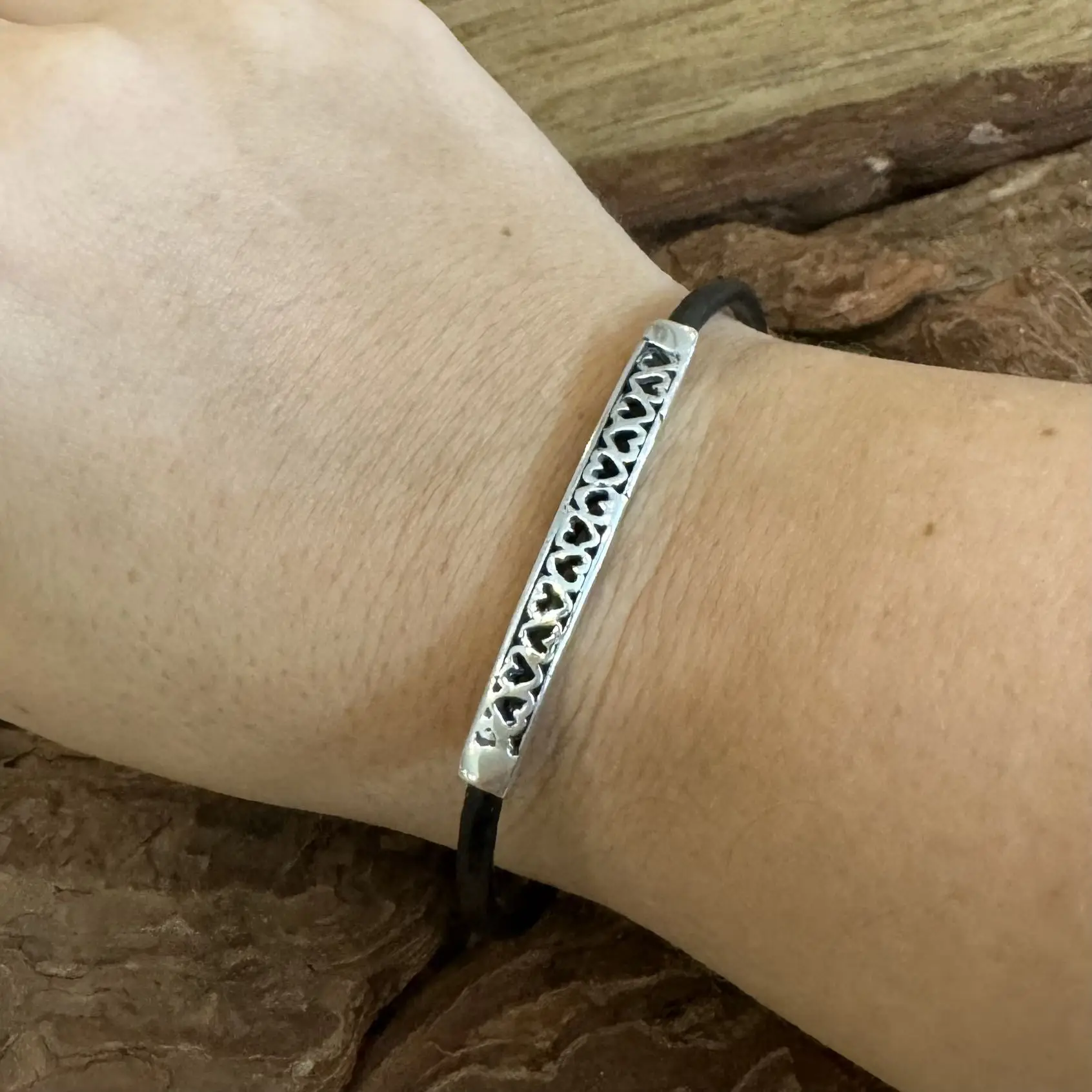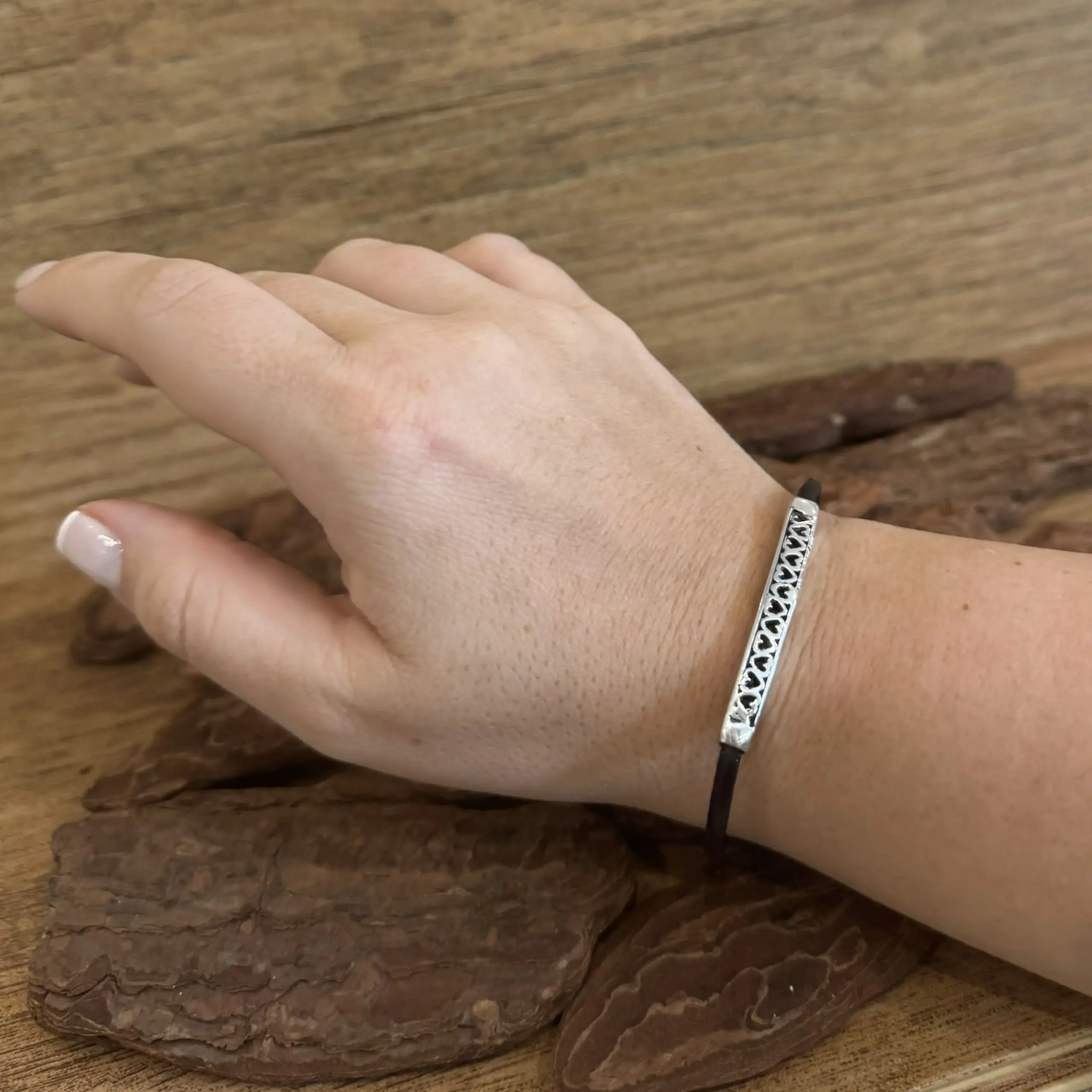 Pulseira de Corações com Couro em Prata 925.