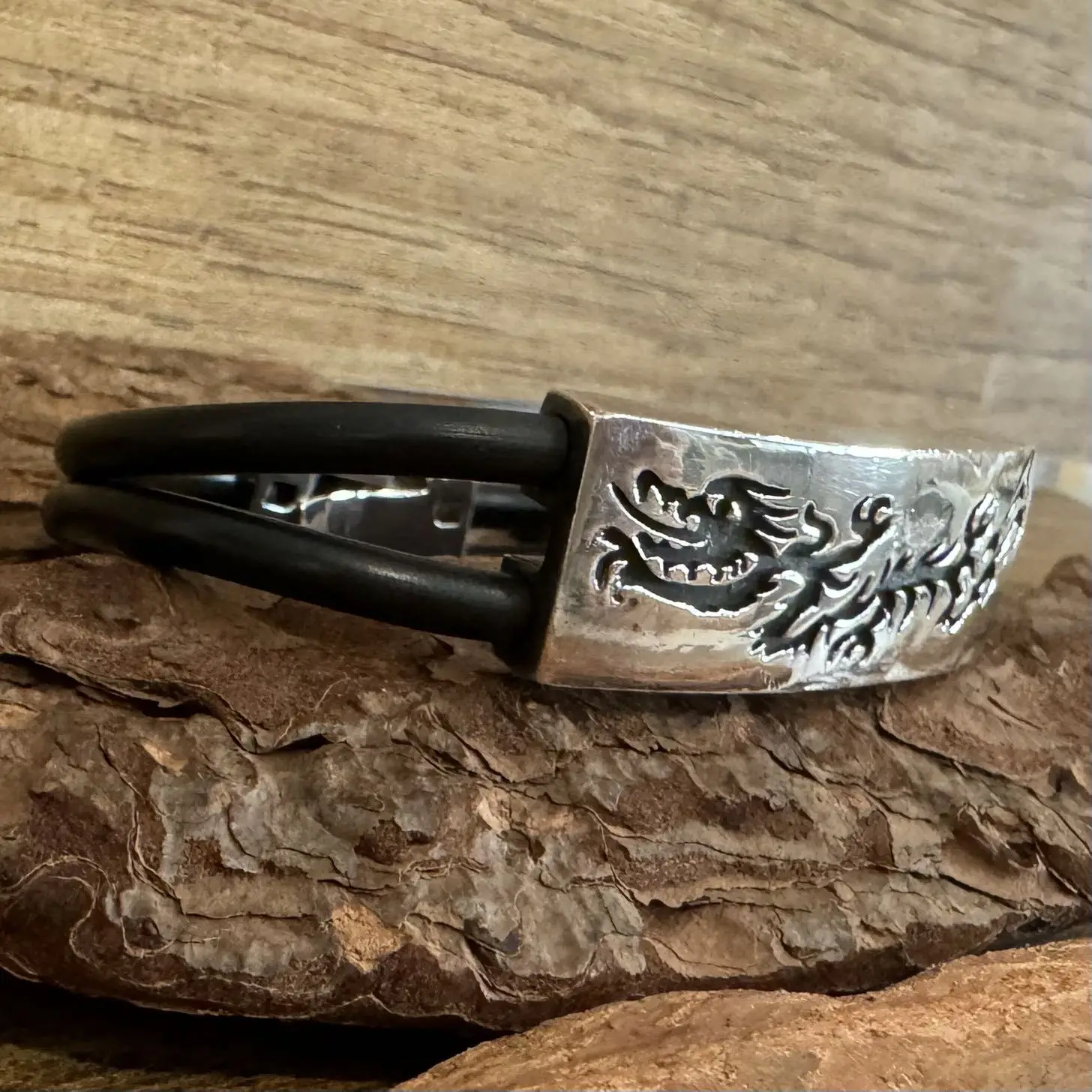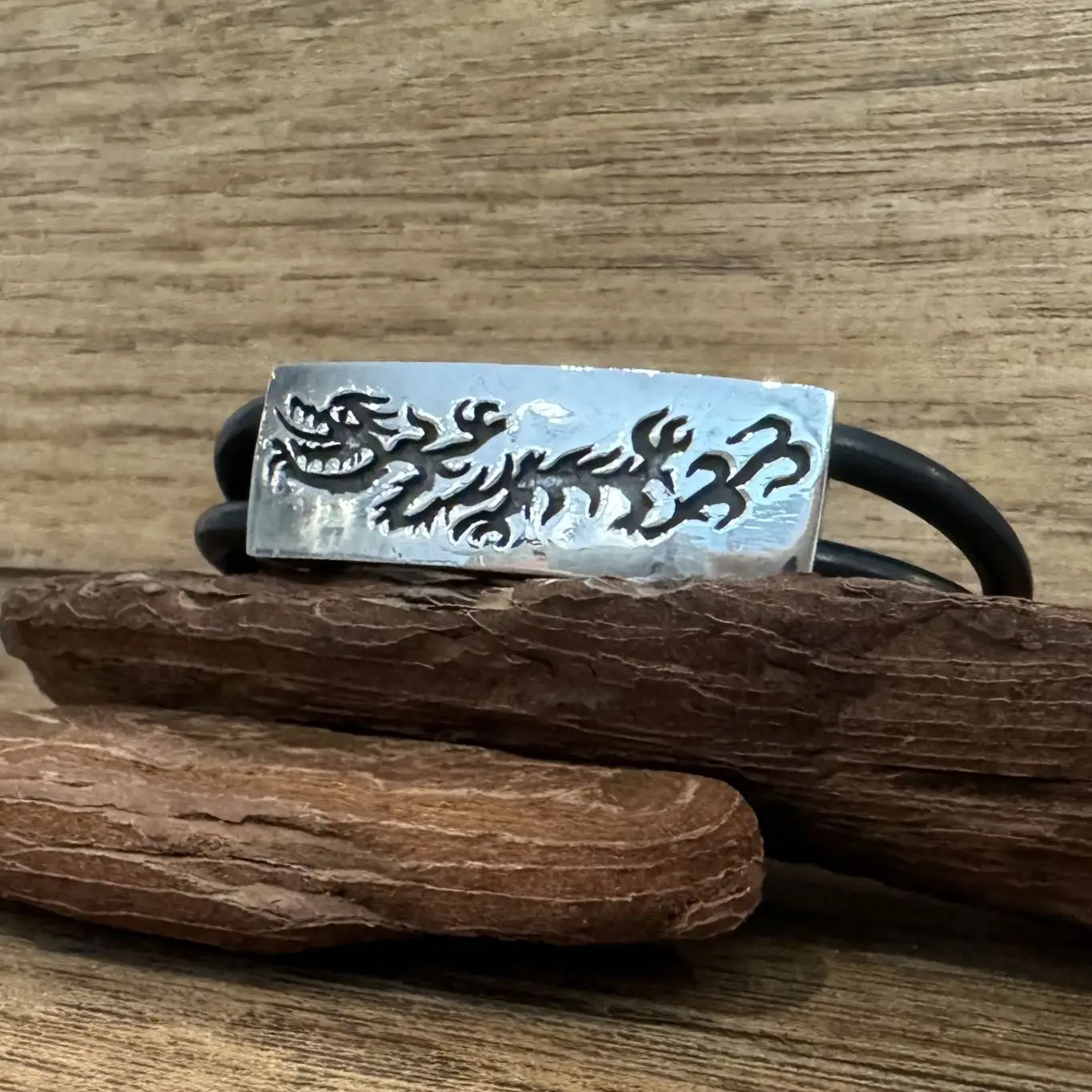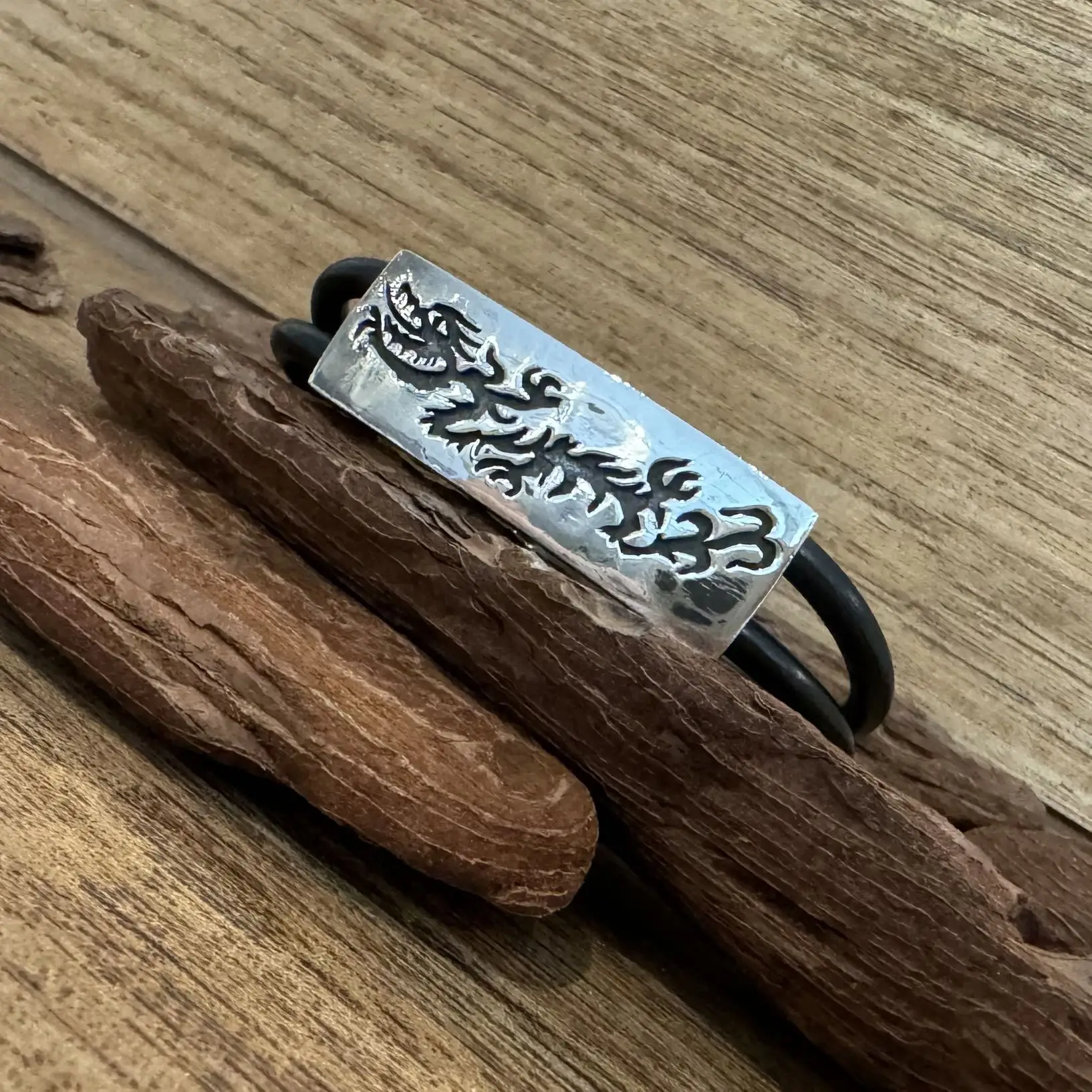 Pulseira de Dragão com borracha em Prata 925.