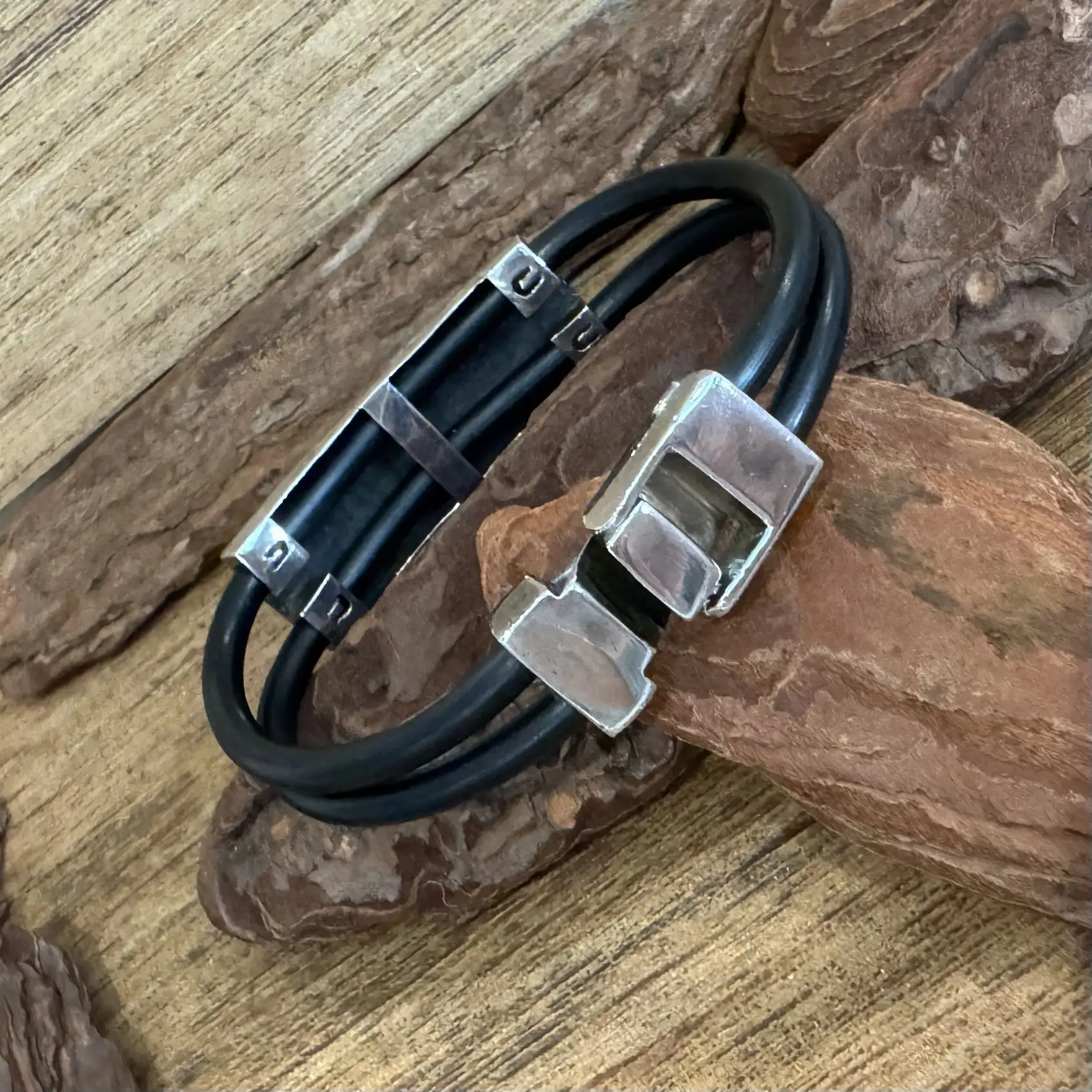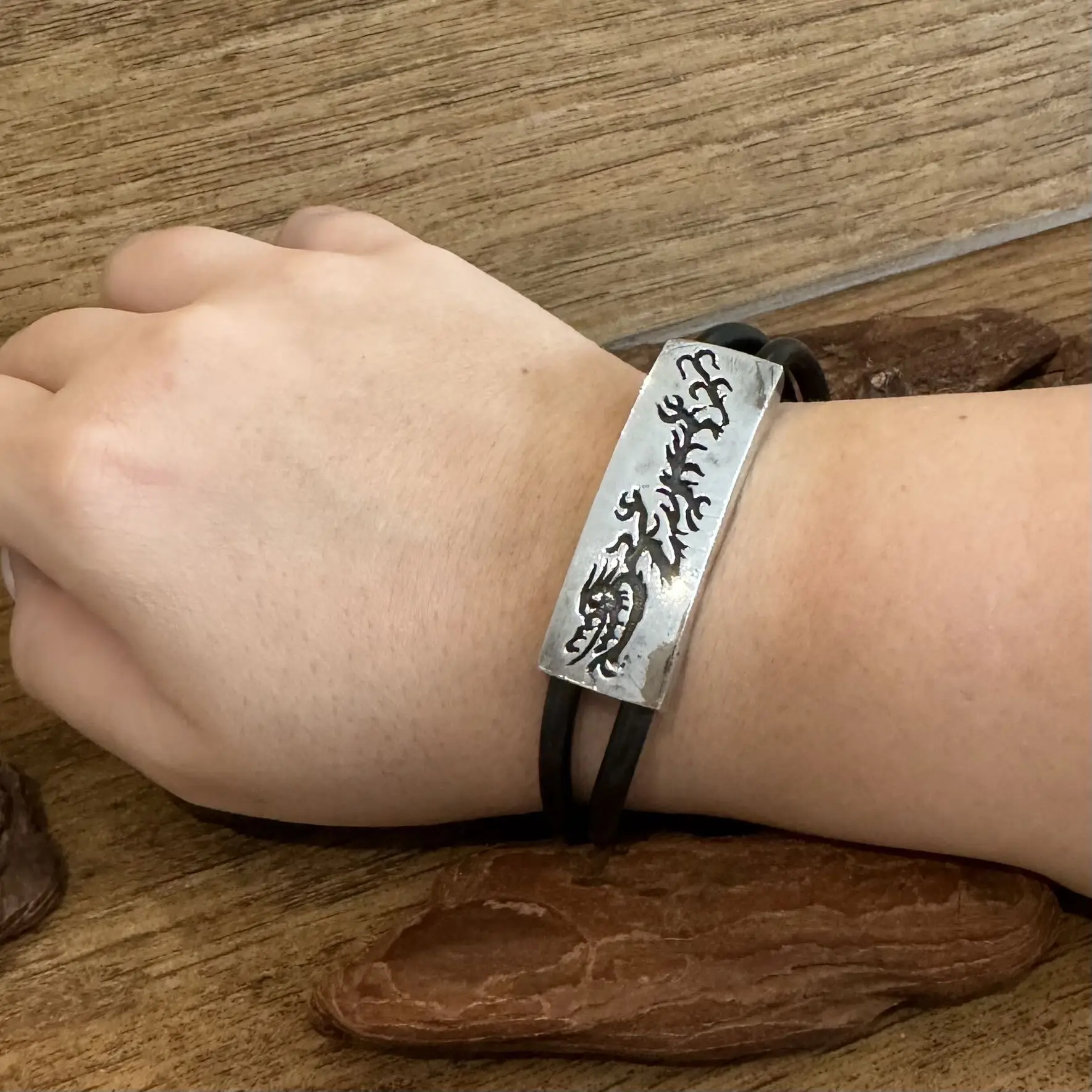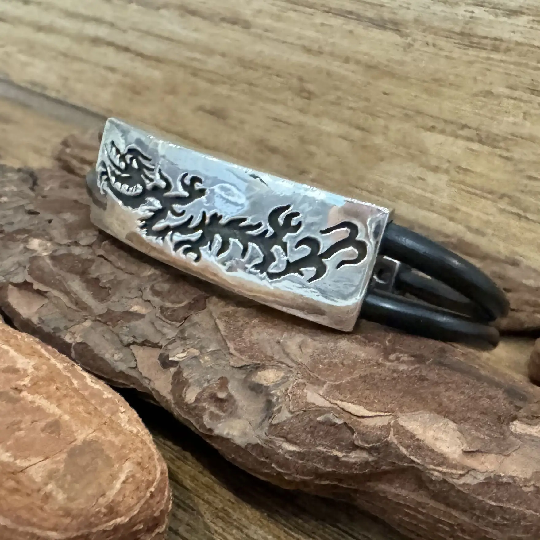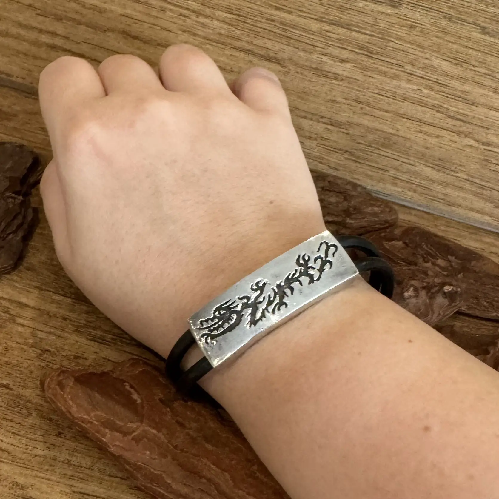 Pulseira de Dragão com borracha em Prata 925.