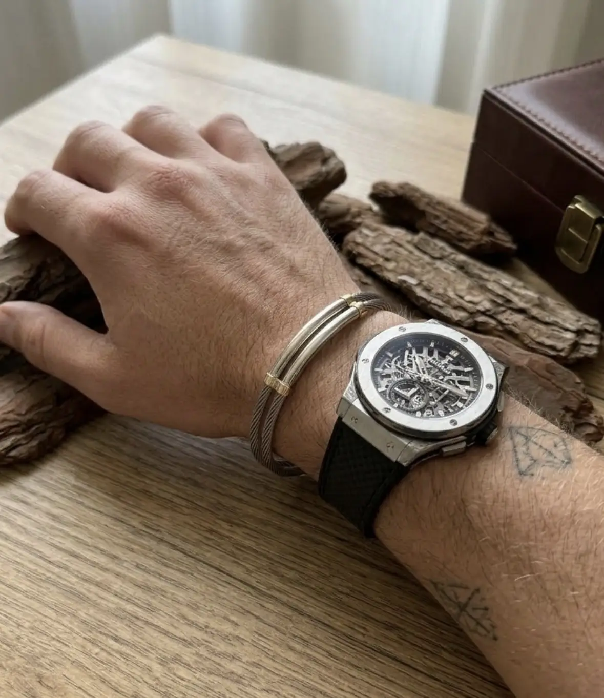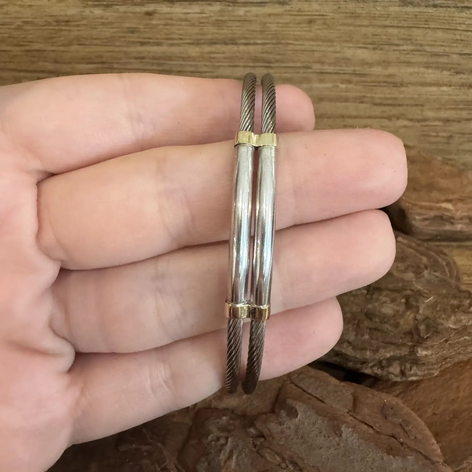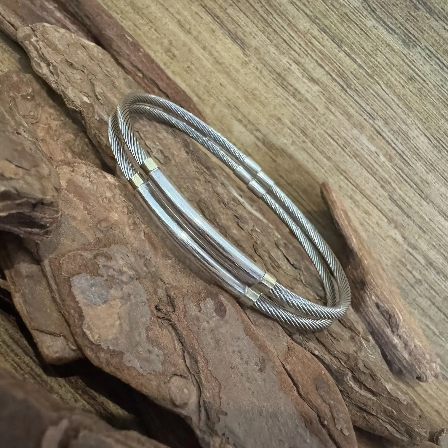 Pulseira Duo Cabo Náutico fio duplo em Prata 925 com Aplique em Ouro.