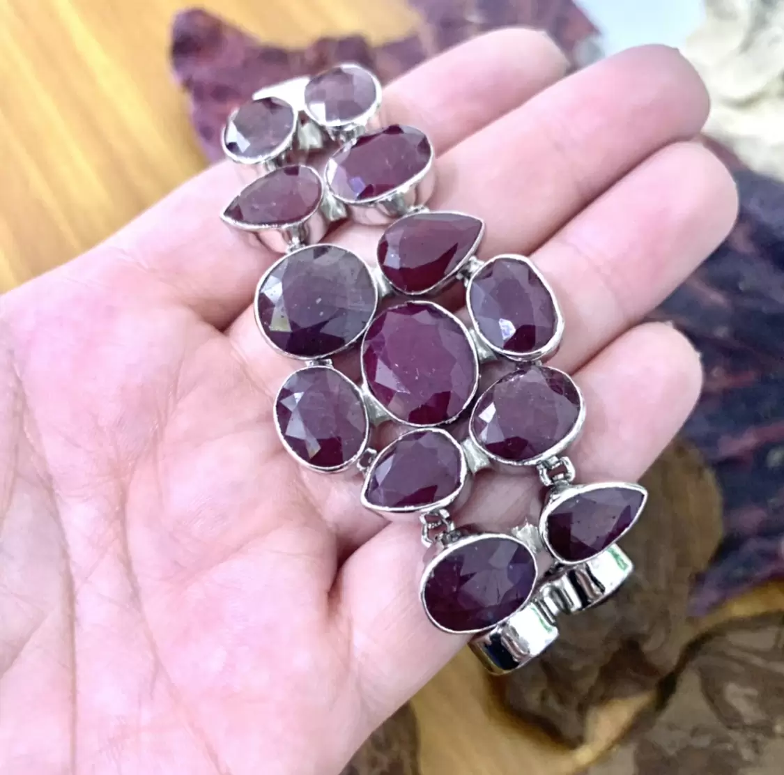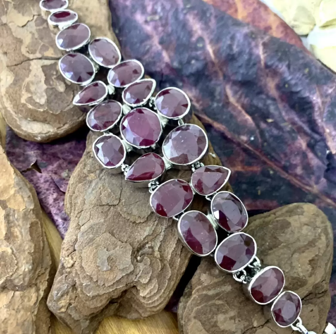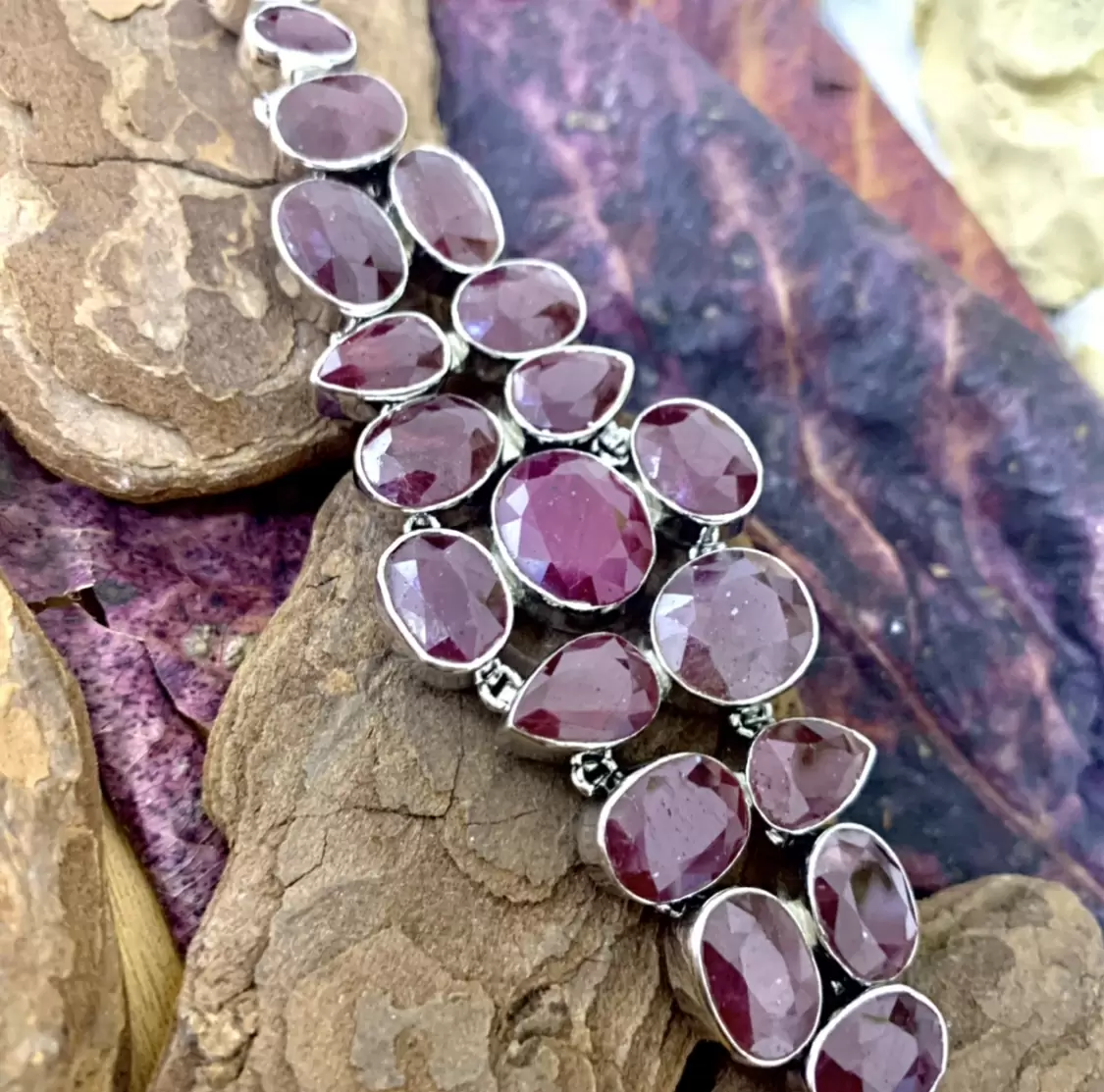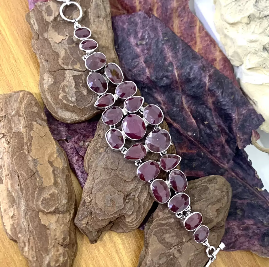 Max Pulseira de Luxo em Rubi Indiano com Prata e banho de ródio.