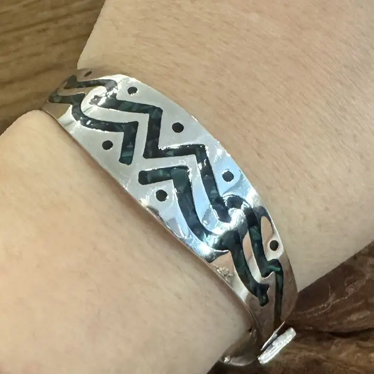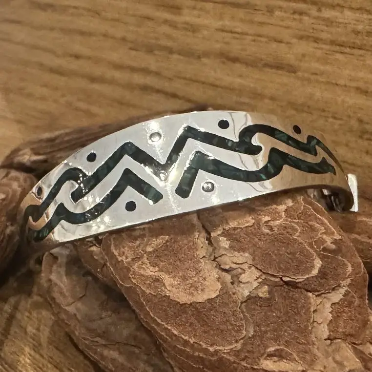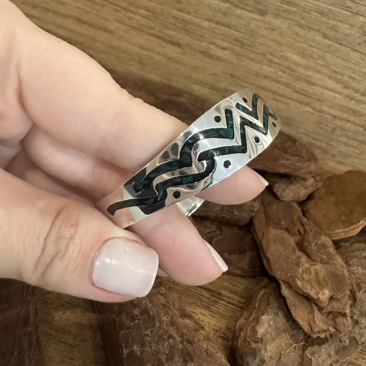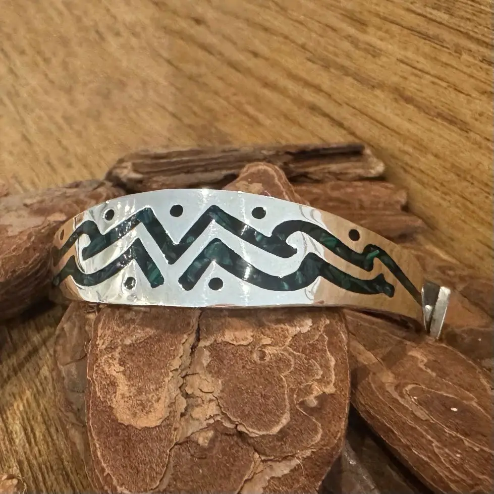 Pulseira maciça de Malaquita em Prata mexicana 950.