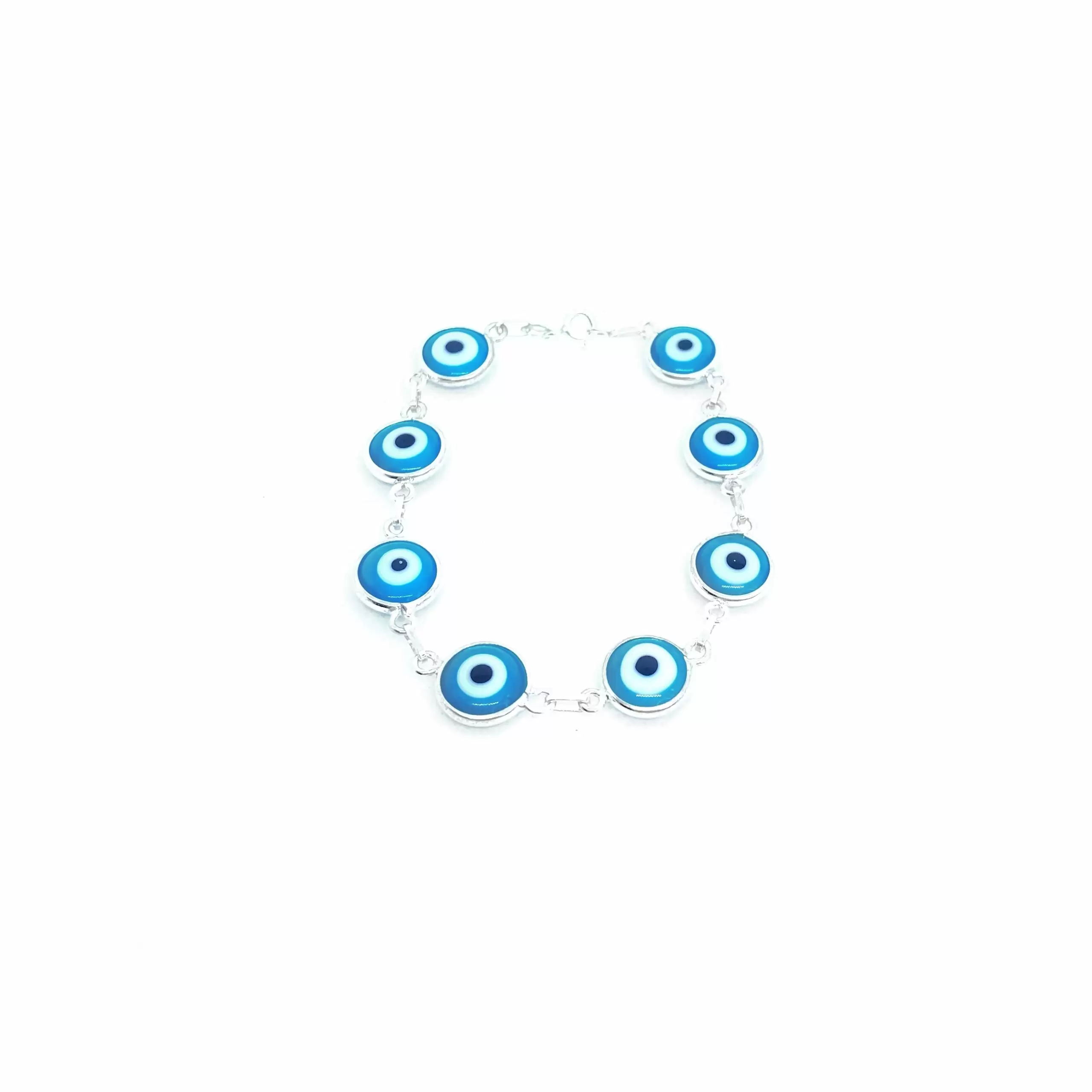 Pulseira Olho Grego Grande Azul Claro em Prata