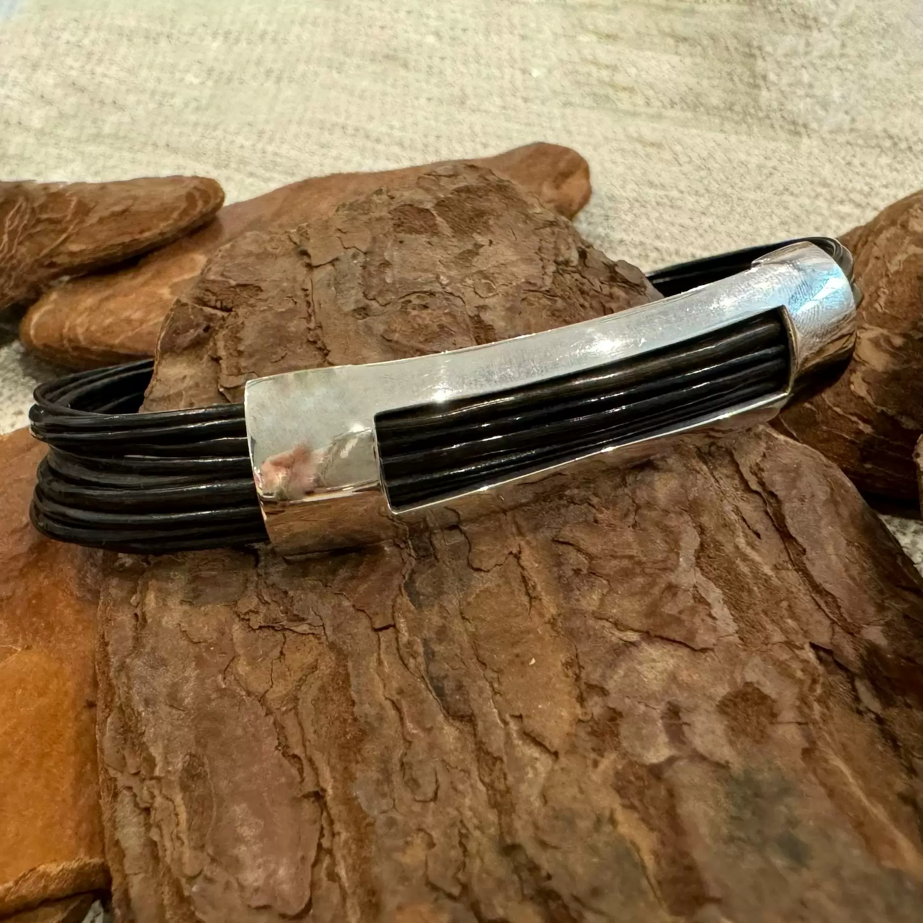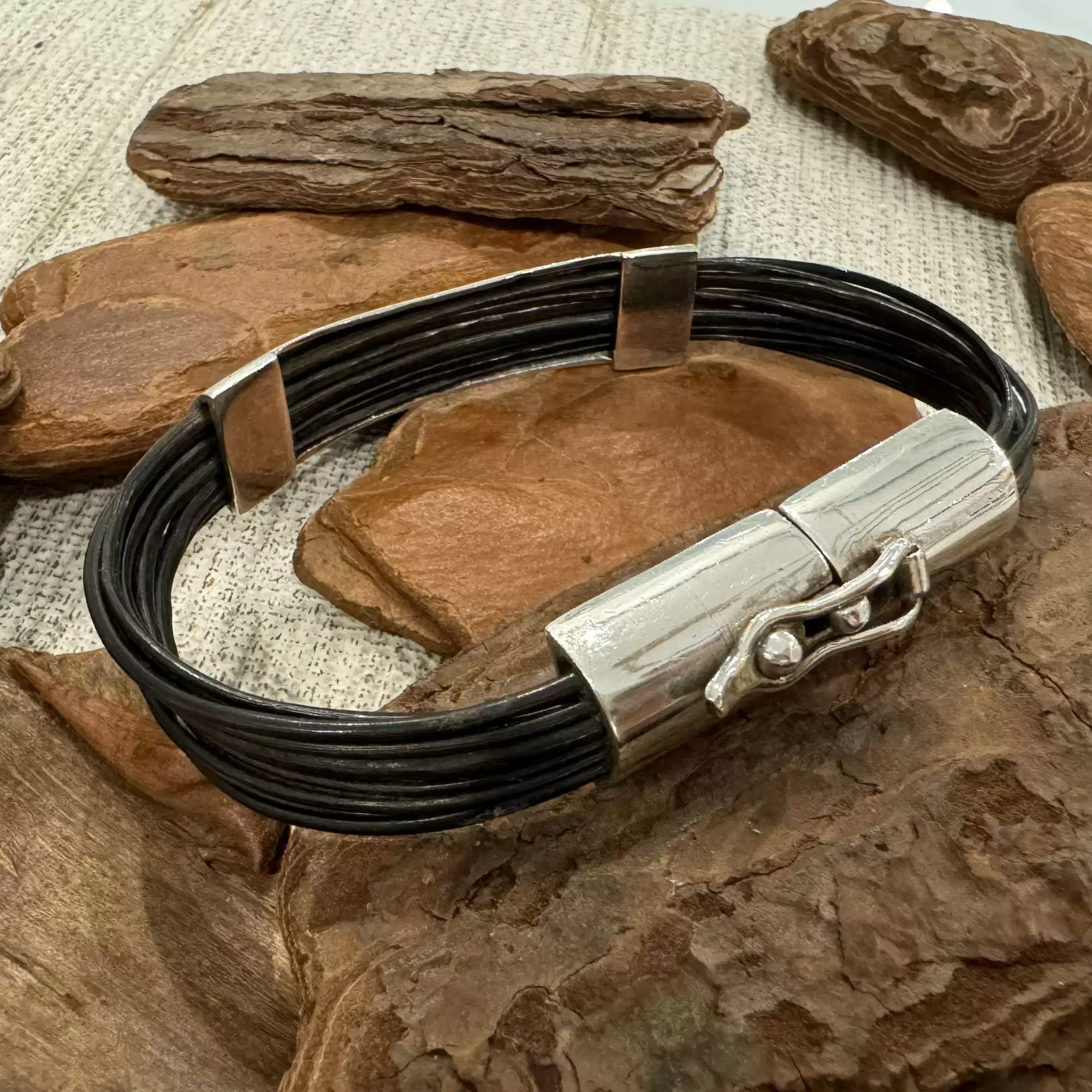 Pulseira com 11 pelos do Rabo de Elefante Vazada com fecho gaveta e trava em Prata 925.